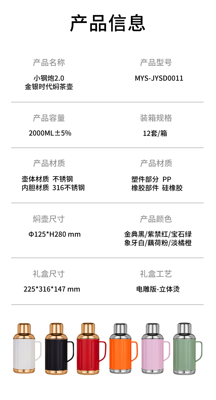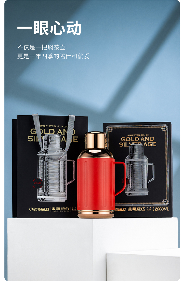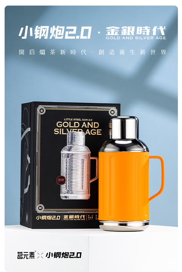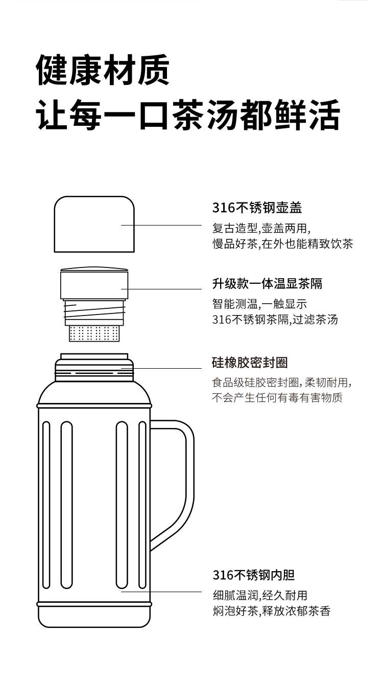 茗元素 金银时代系列2000ml大容量复古焖茶壶户外旅游316不锈钢