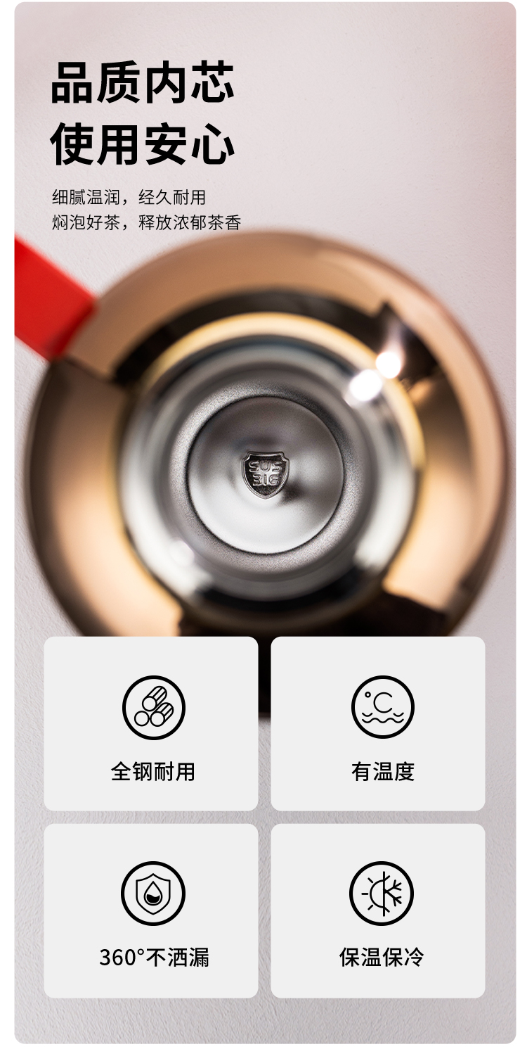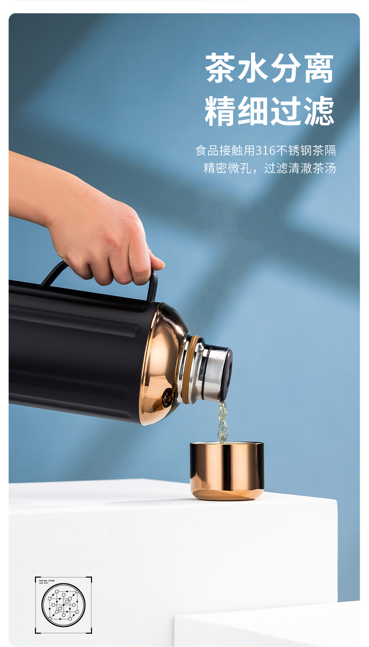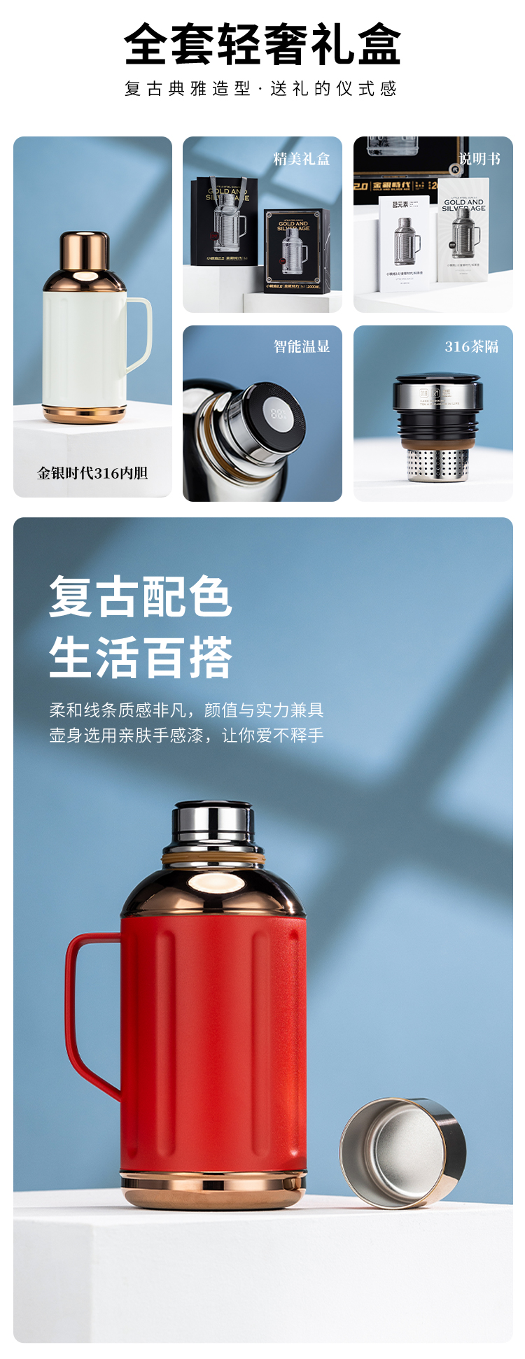 茗元素 金银时代系列2000ml大容量复古焖茶壶户外旅游316不锈钢