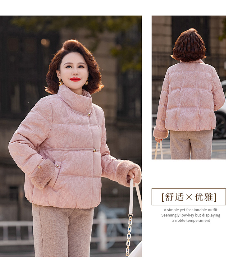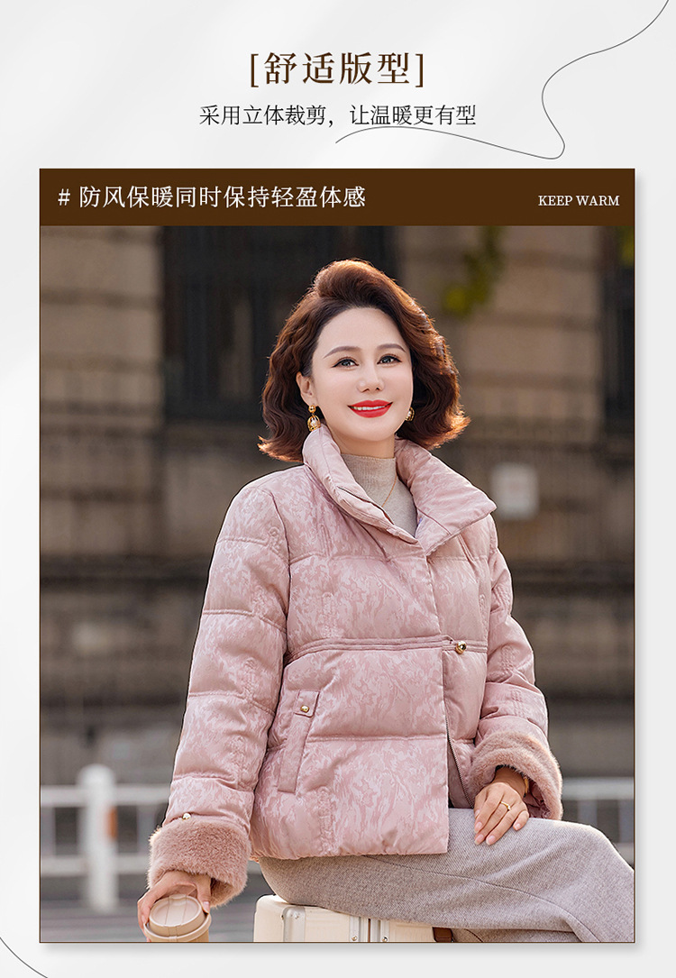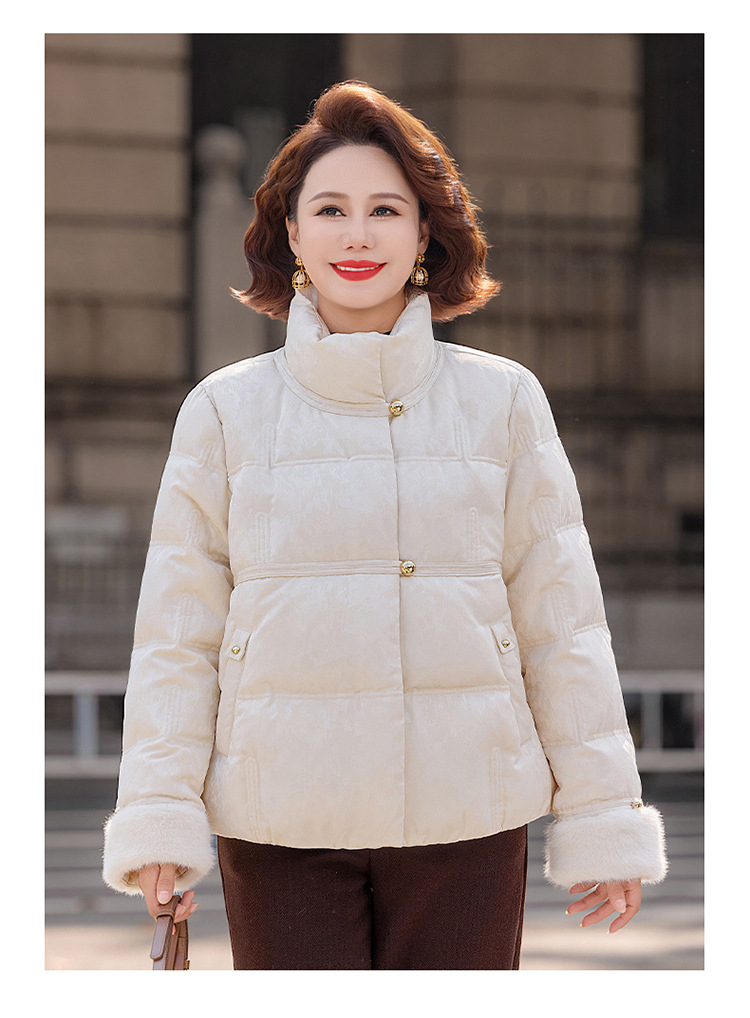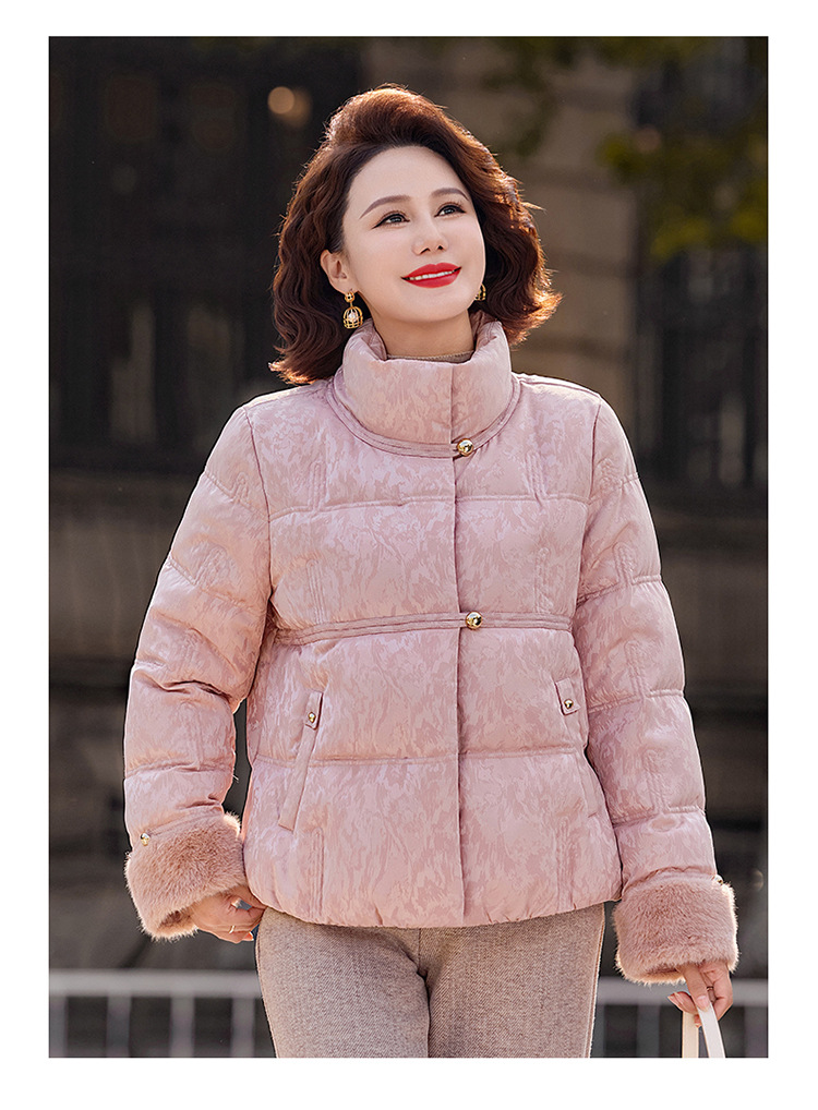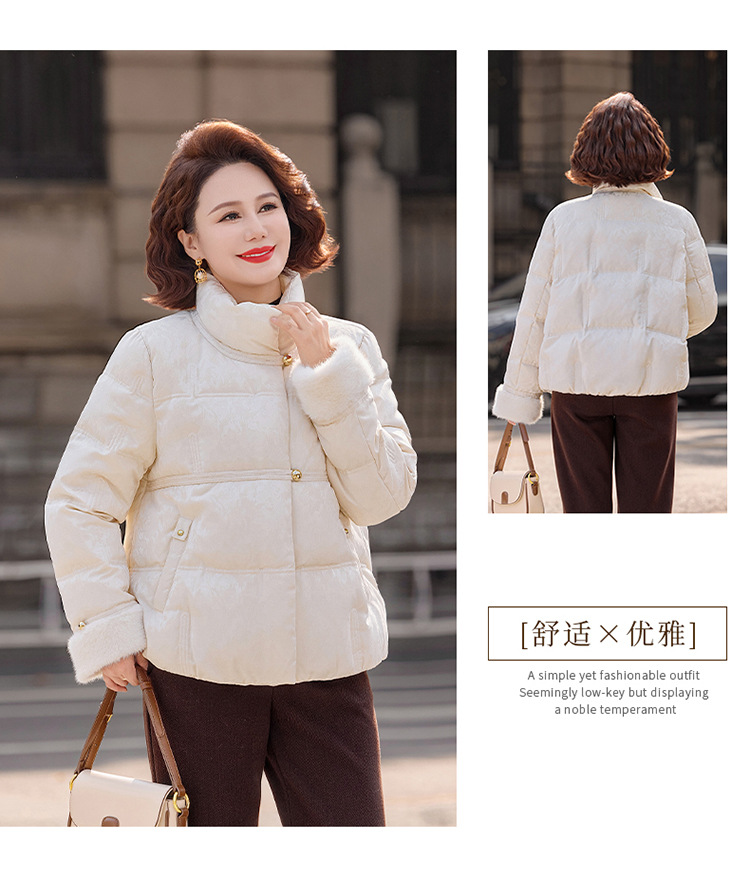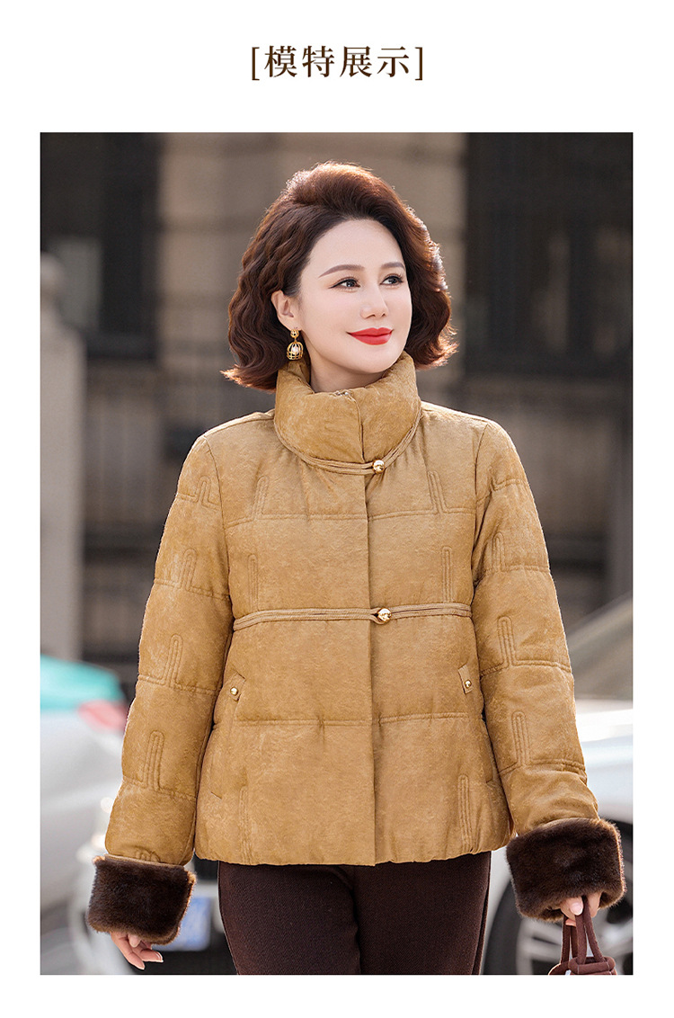 丁摩女装新款冬季立领新中式上衣洋气大码妈妈装短款大码羽绒服ALW8813