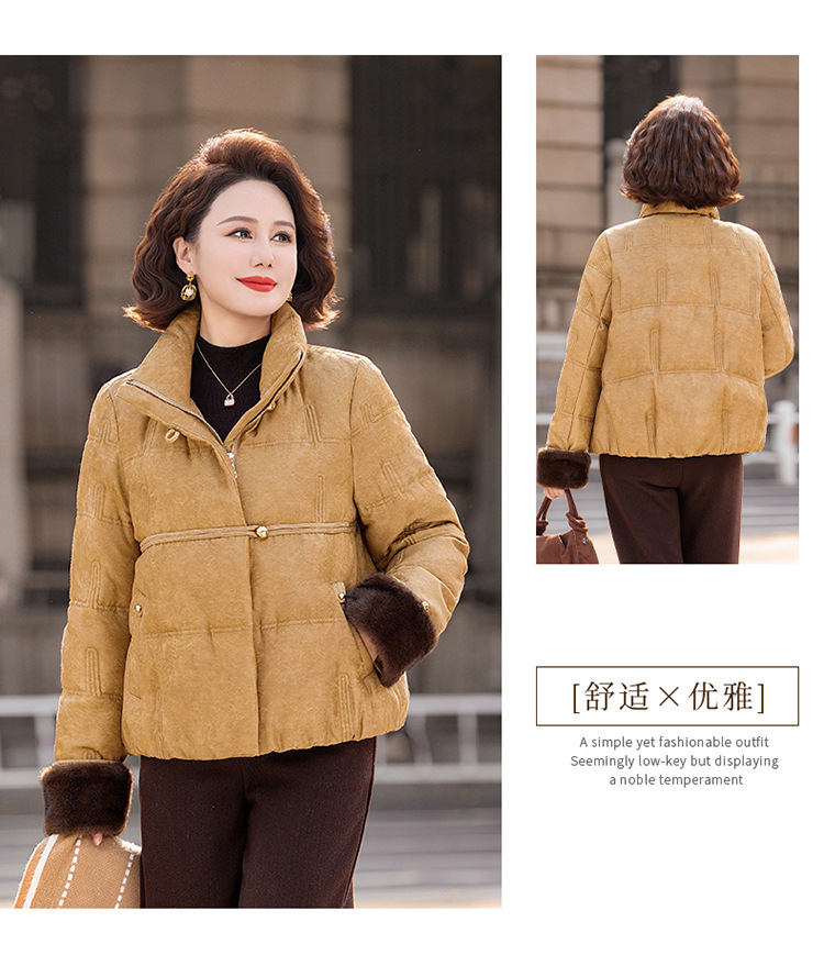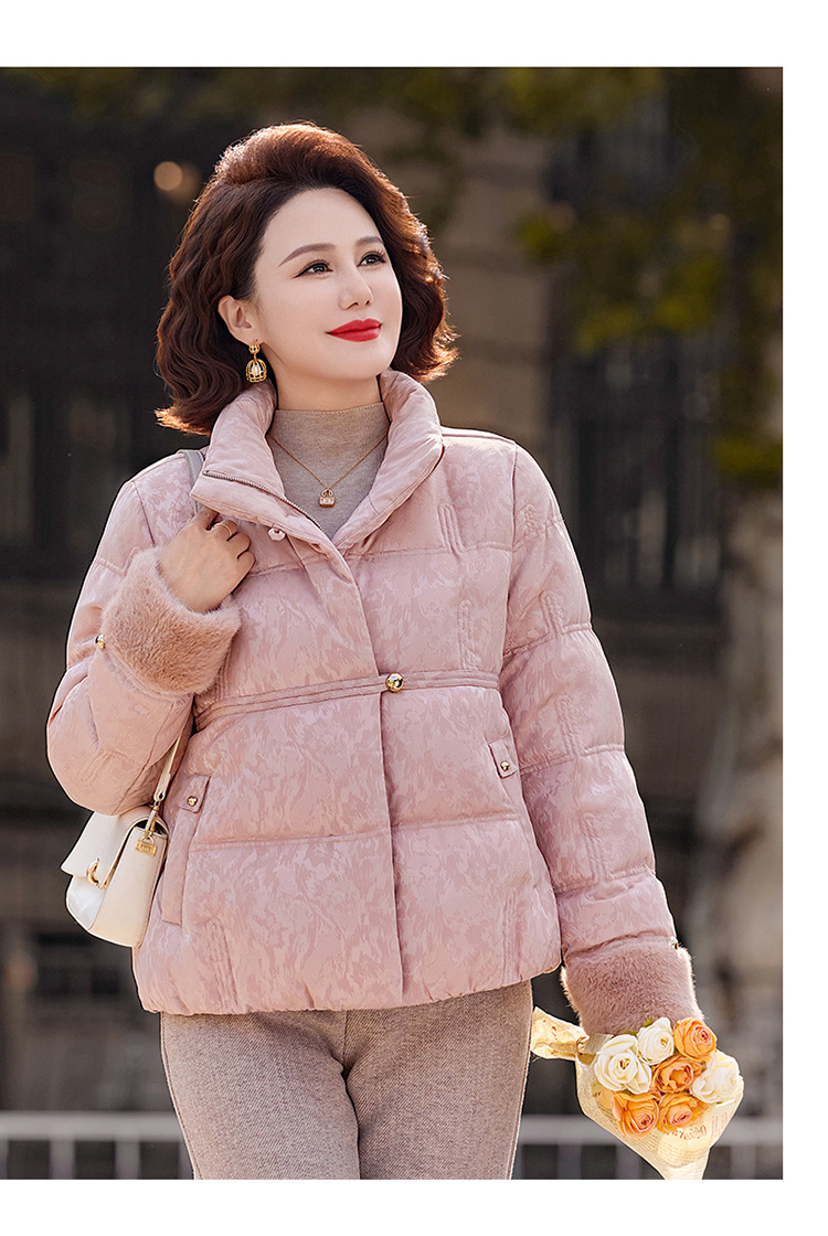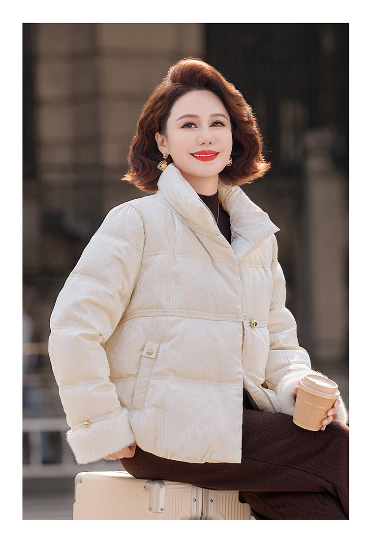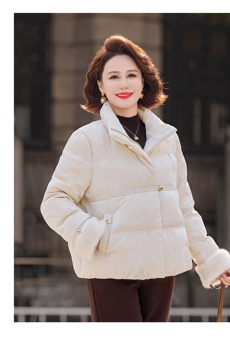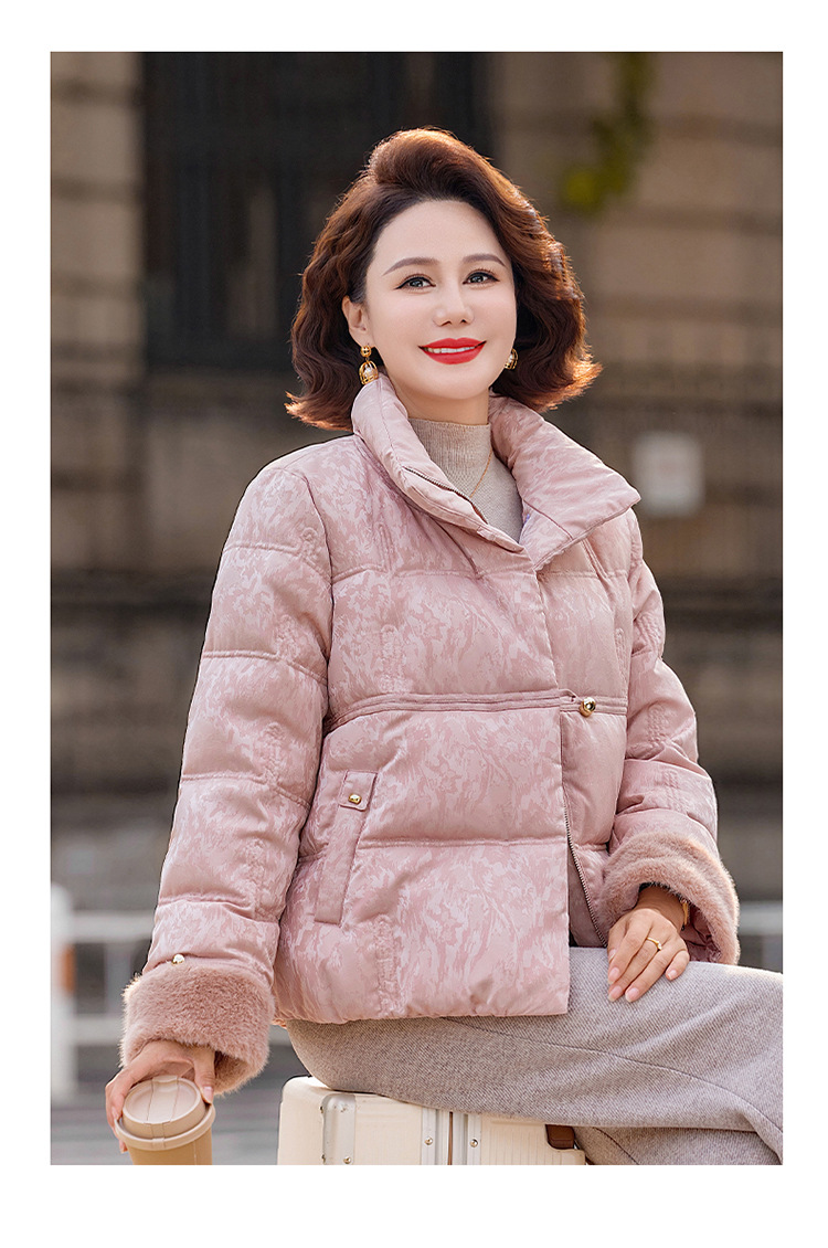 丁摩女装新款冬季立领新中式上衣洋气大码妈妈装短款大码羽绒服ALW8813