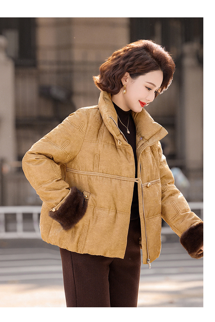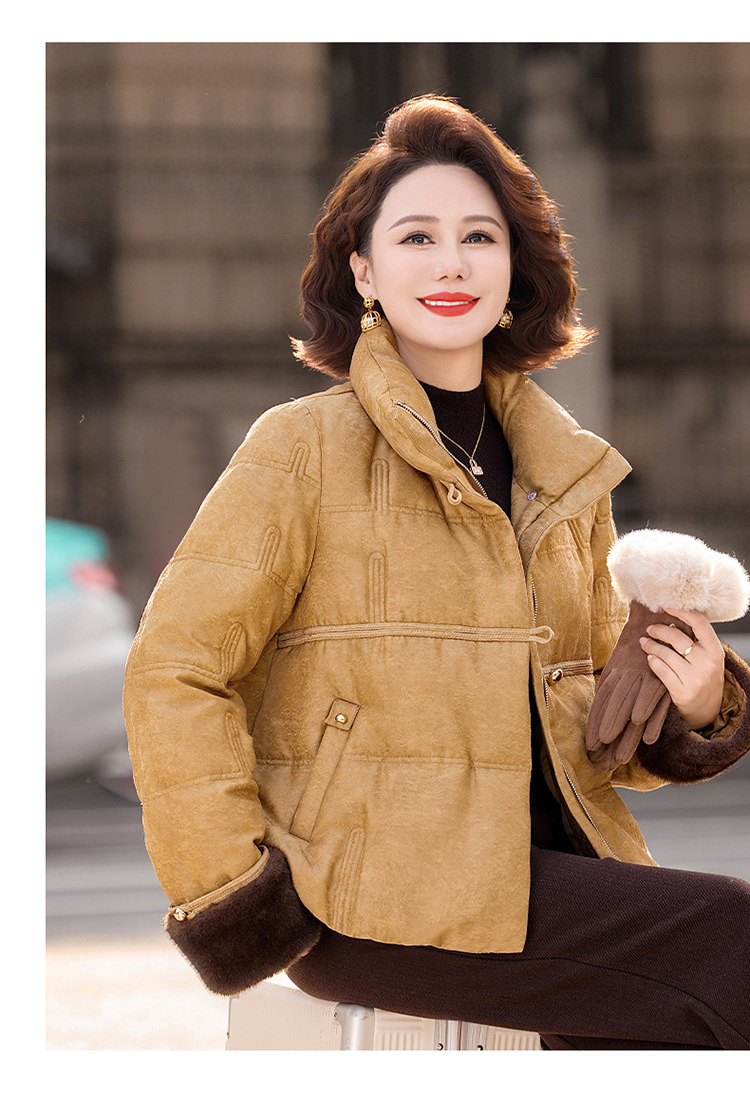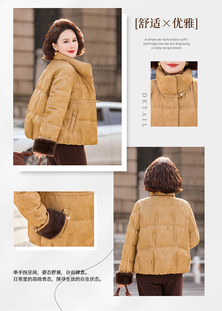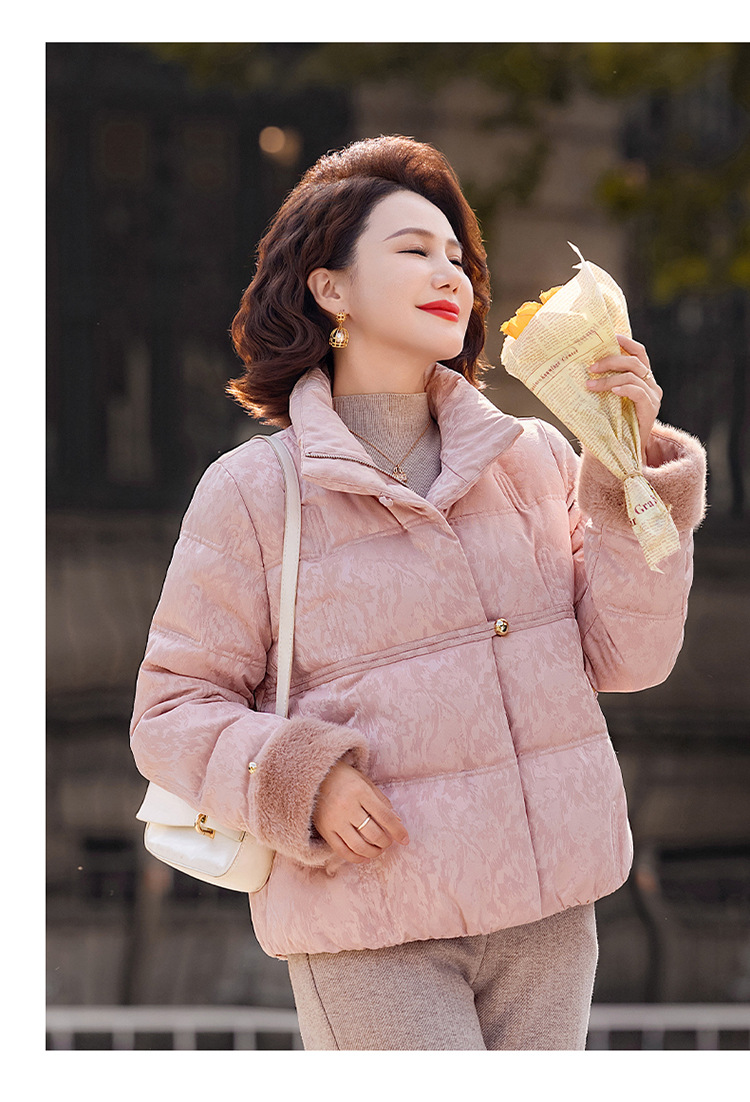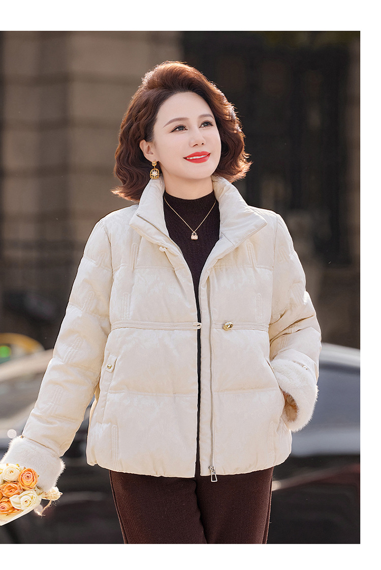 丁摩女装新款冬季立领新中式上衣洋气大码妈妈装短款大码羽绒服ALW8813