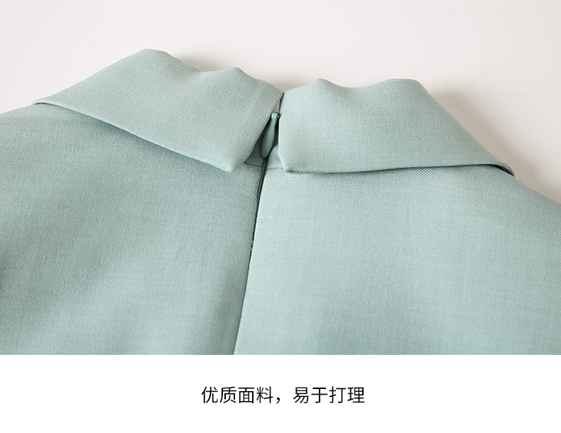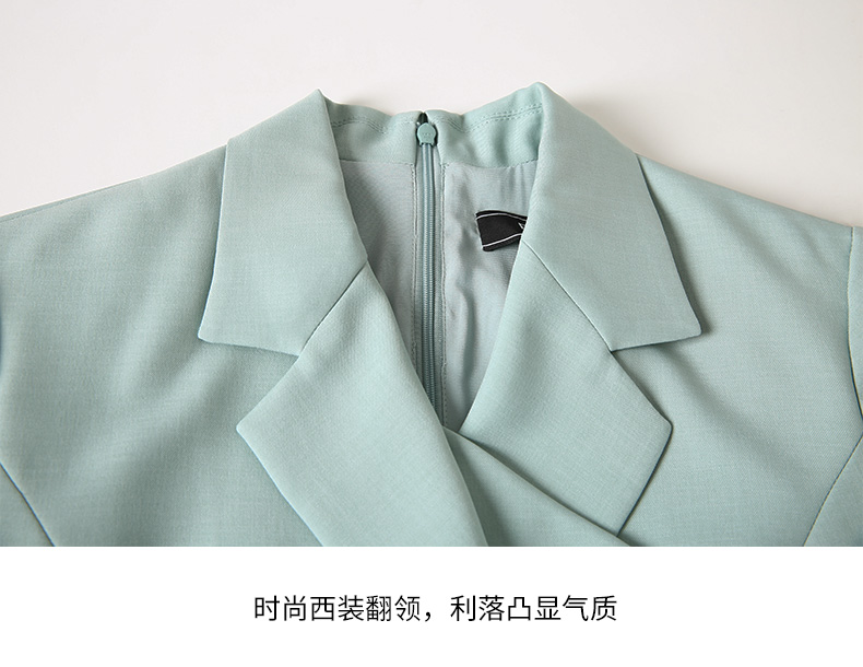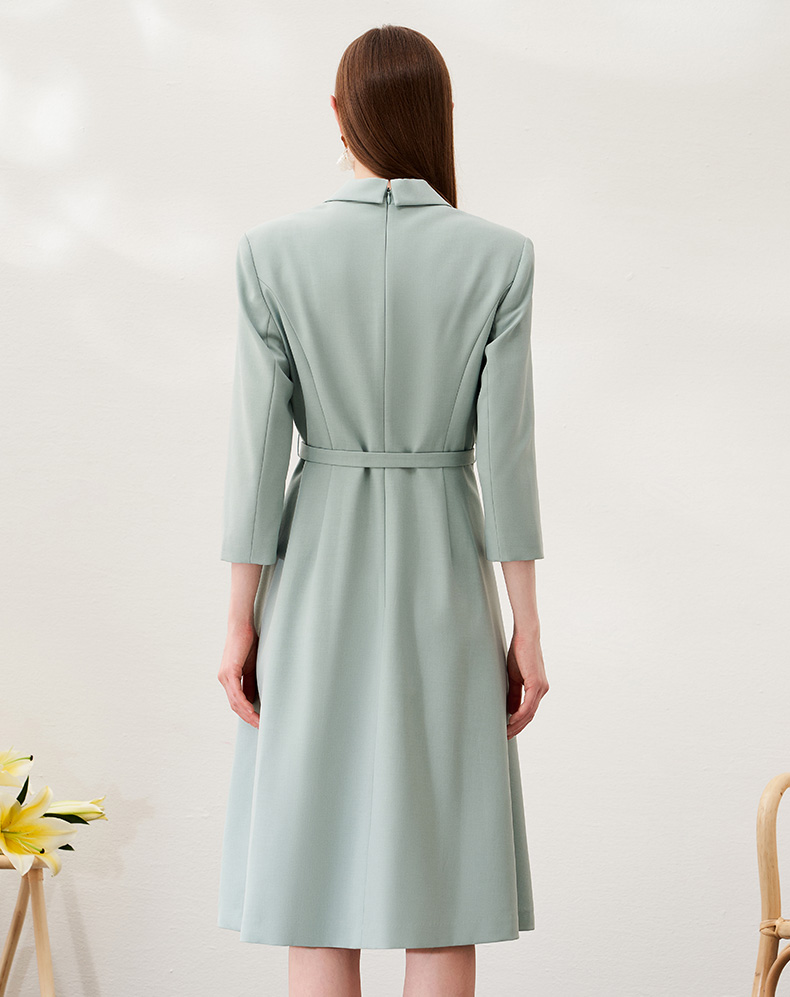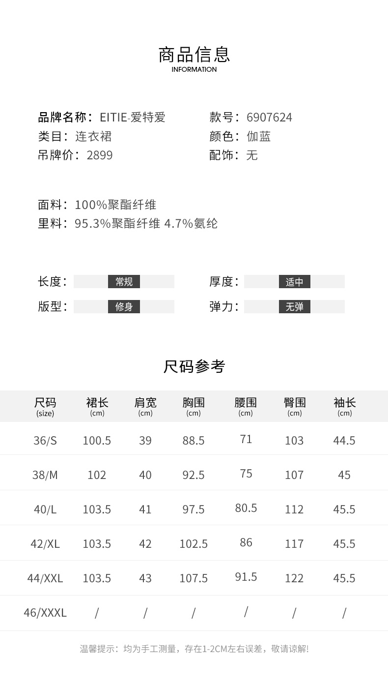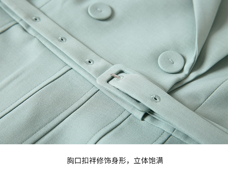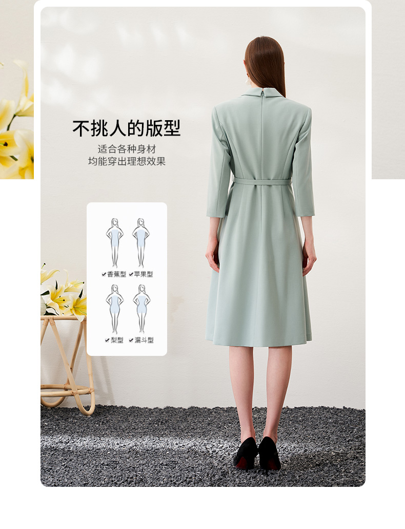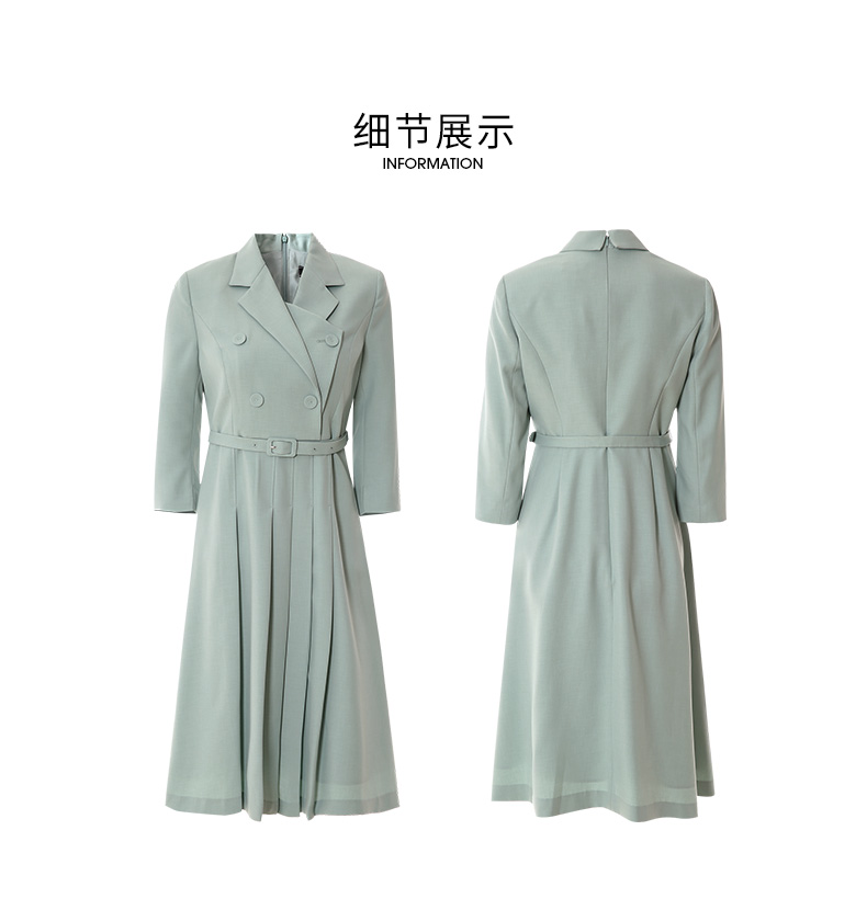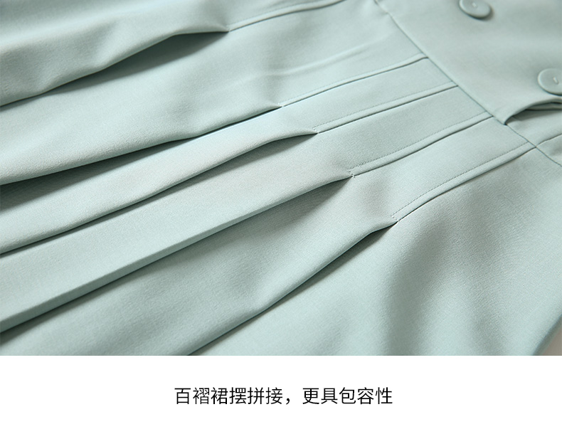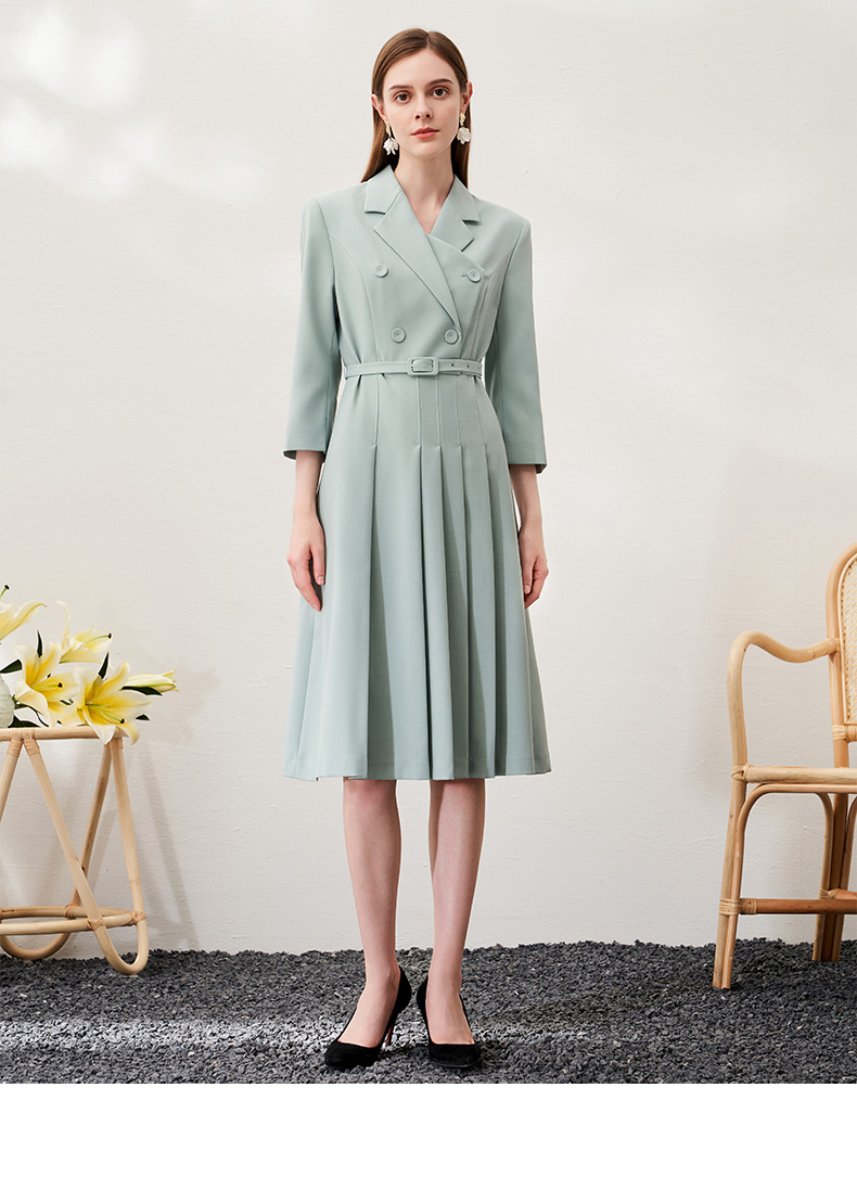 EITIE爱特爱春季新品西装V领优雅束腰显瘦百褶连衣裙6907624