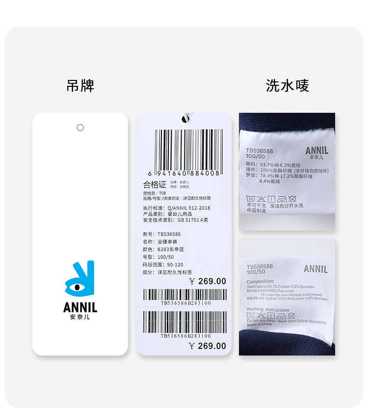 【实体店同款】男童全腰单裤秋季新款安奈儿童装TB536586