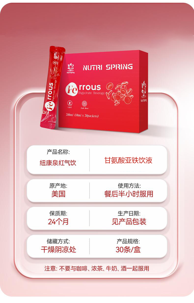 纽康泉甘氨酸亚铁饮液10ML*30袋 WH