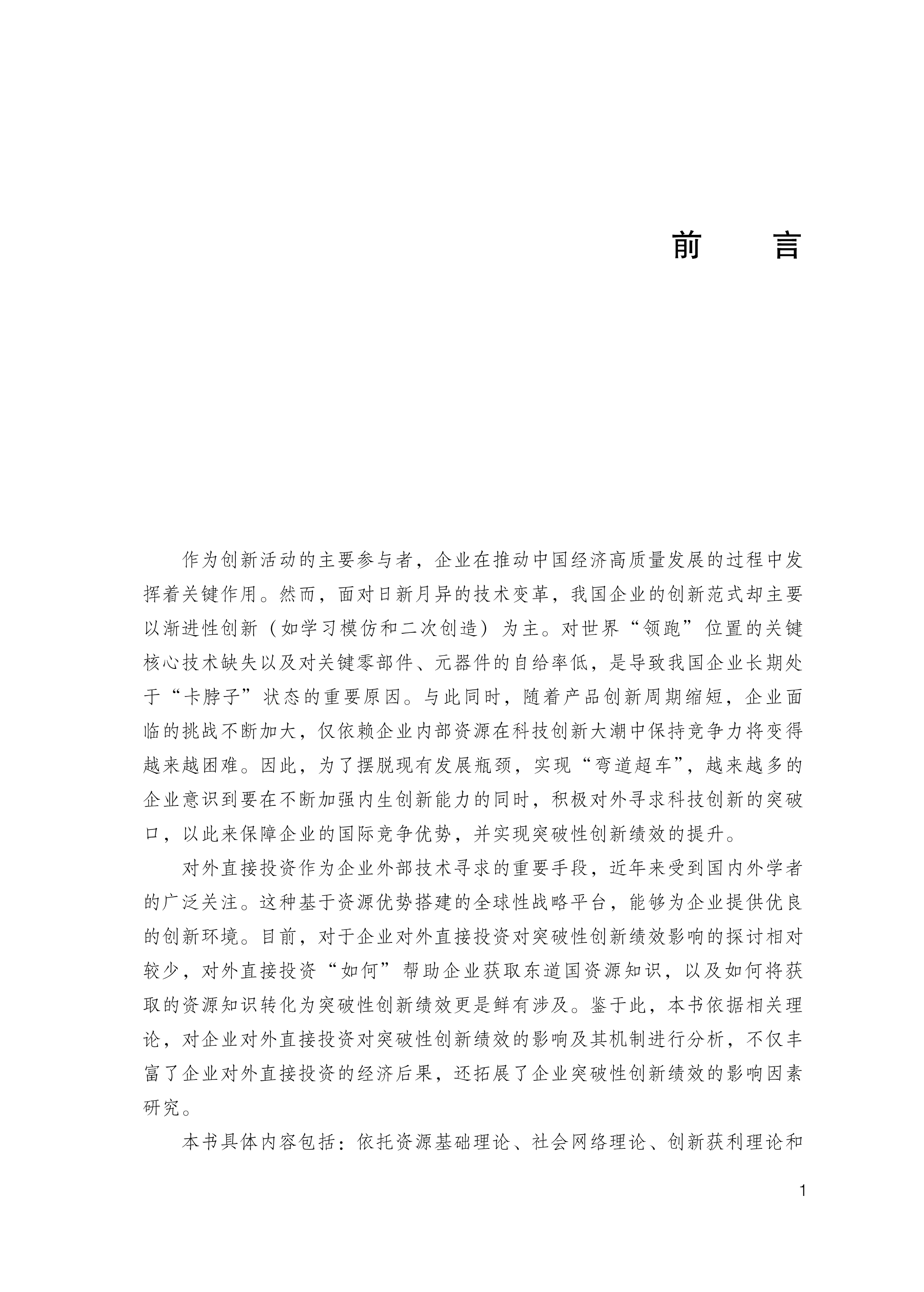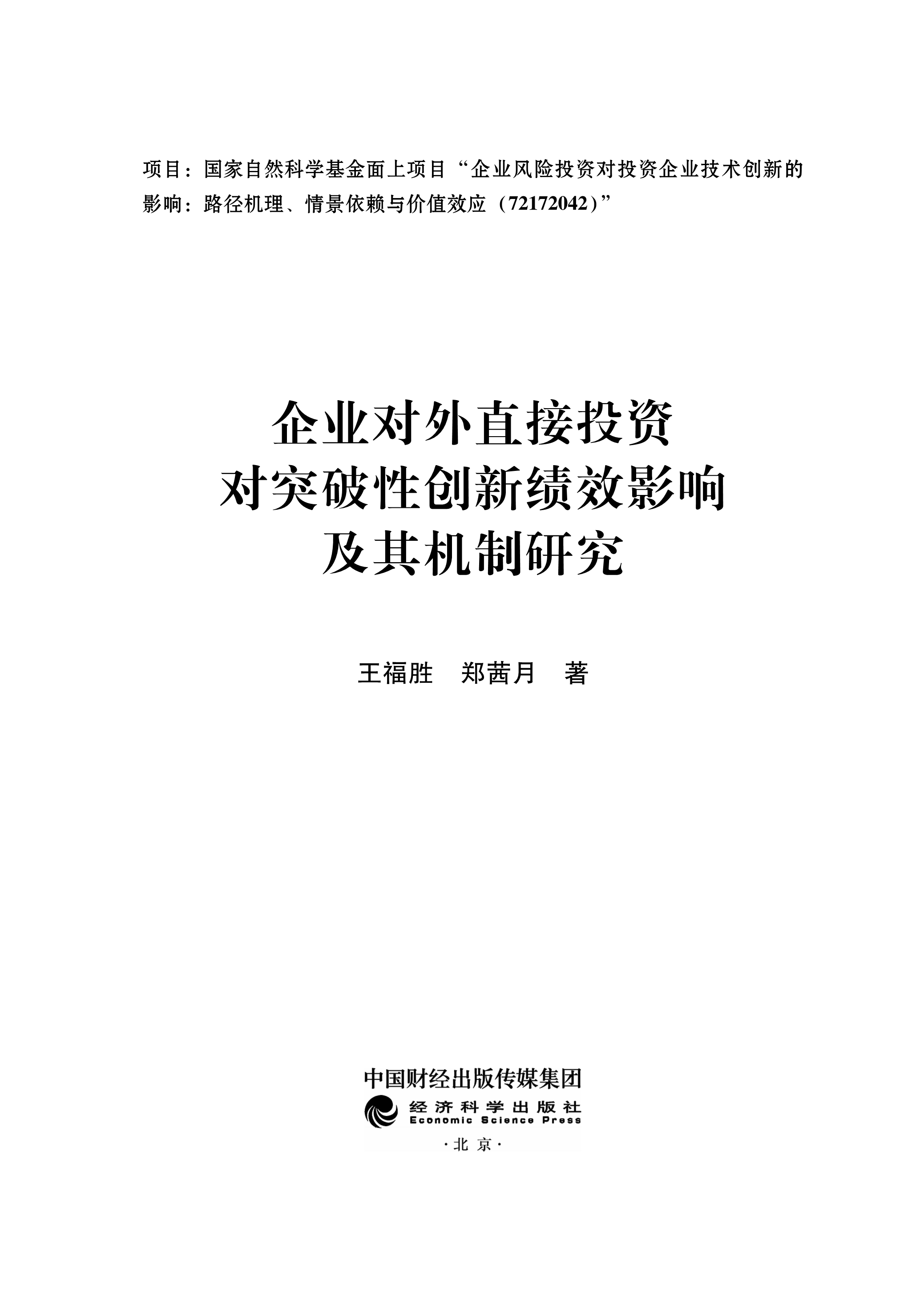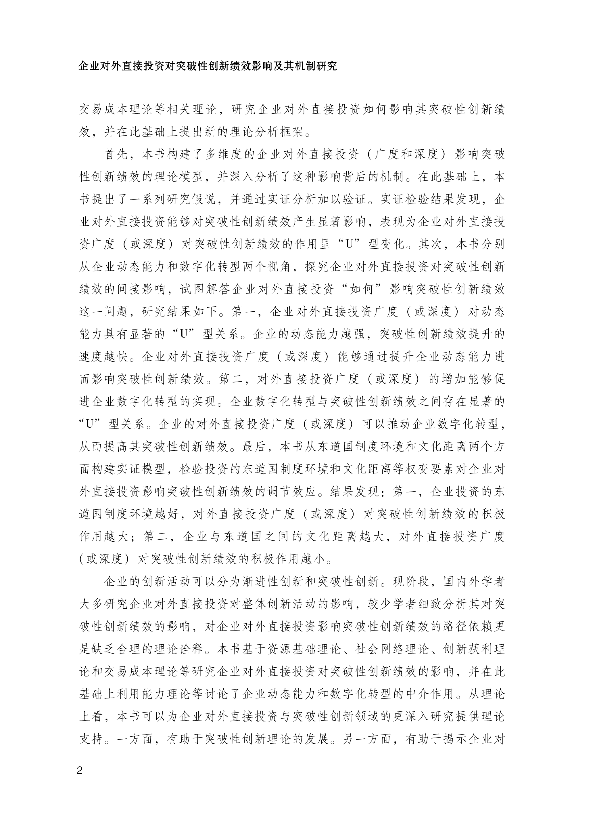企业对外直接投资对突破性创新绩效影响及其机制研究