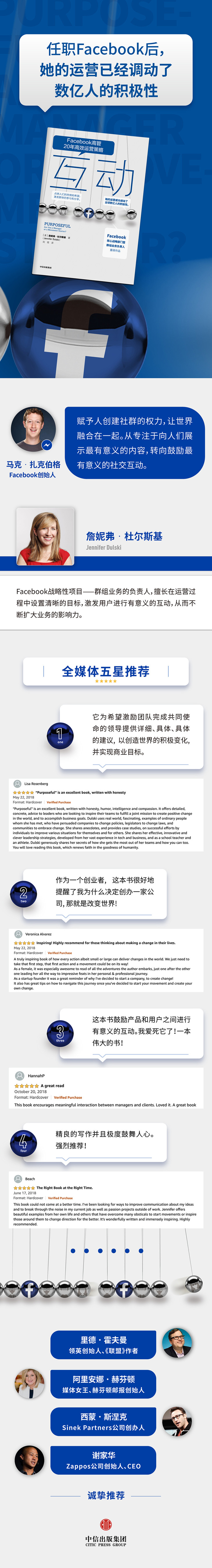 作为Facebook群组业务的具体负责人,詹妮弗·杜尔斯基总结了一套行之的,可以极大调动群体积极性,激发他们参与和共享的运营方法。首先,确立一个有意义的目标,然后,通过具体的故事将目标清晰化,吸引你的批支持者,之后,让所有团队成员不断进行高品质的互动,甚至自发地协助进行宣传和分享,终实现整个业务的高速发展。