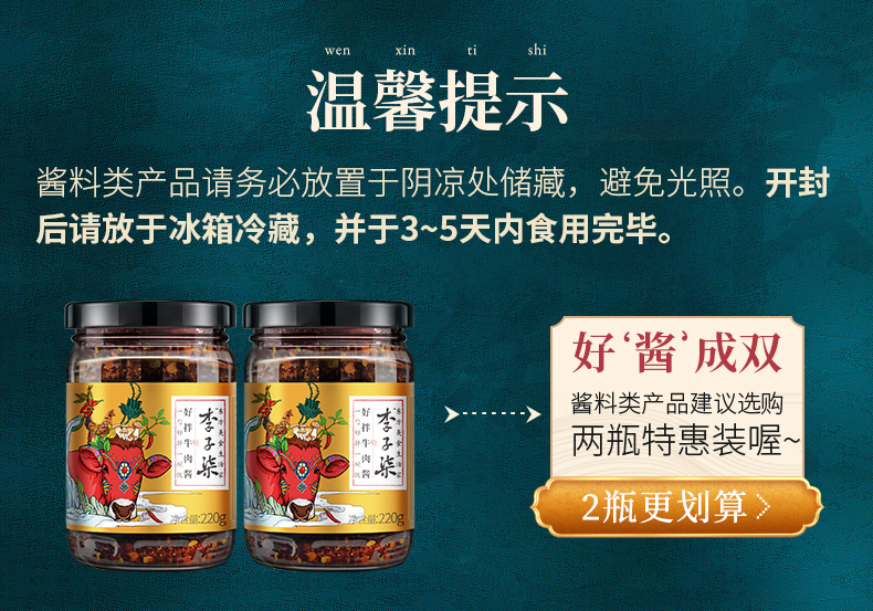 李子柒好拌牛肉酱拌饭酱下饭拌面辣椒酱酱拌饭下面调味酱料220g
