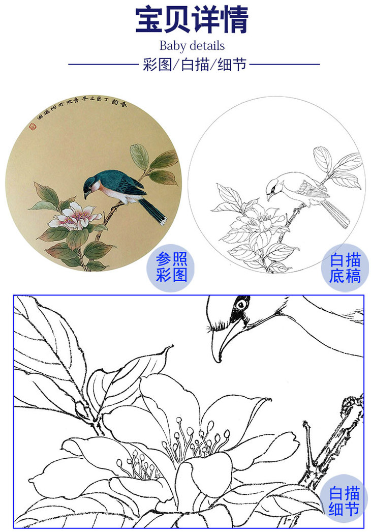 戴青池工笔花鸟小品白描底稿-多种白描尺寸可选-DQ05