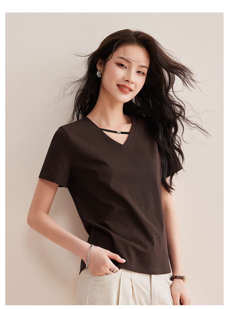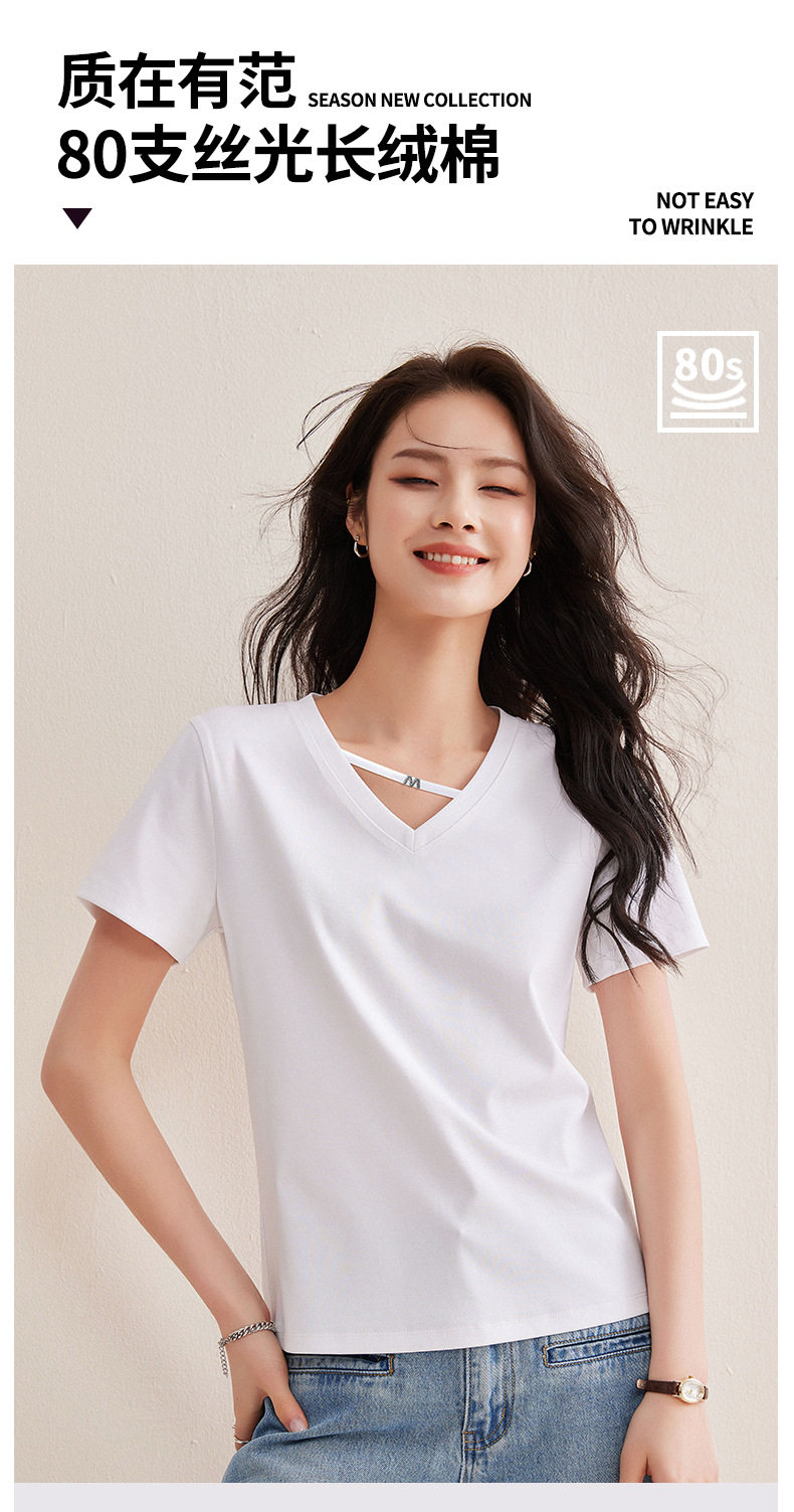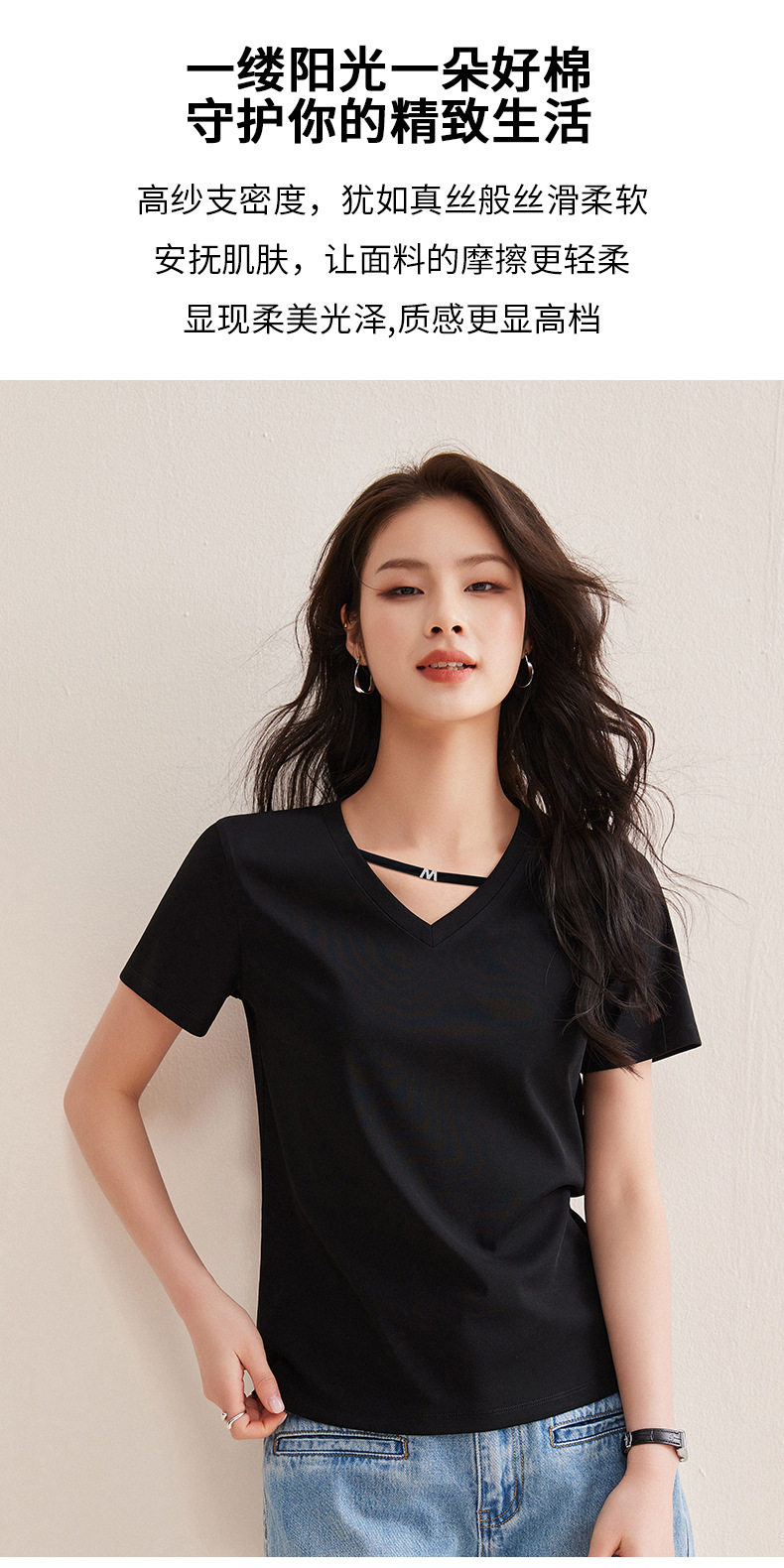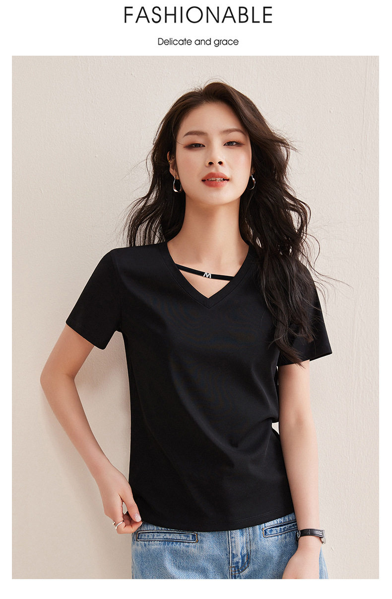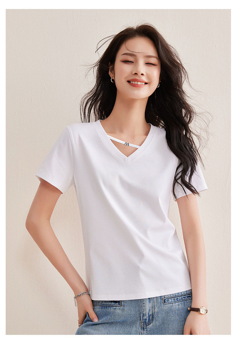 「自j」全新升级【铂金会员128/天猫169/差价41】(72818)洛诗琳气质V领短袖上衣女2026夏季新款短款收腰正肩T恤女