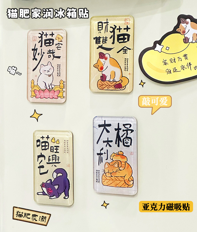 【家有猫咪】亚克力冰箱贴猫肥家润可爱磁吸贴厨房装饰软磁留言创意冰箱贴