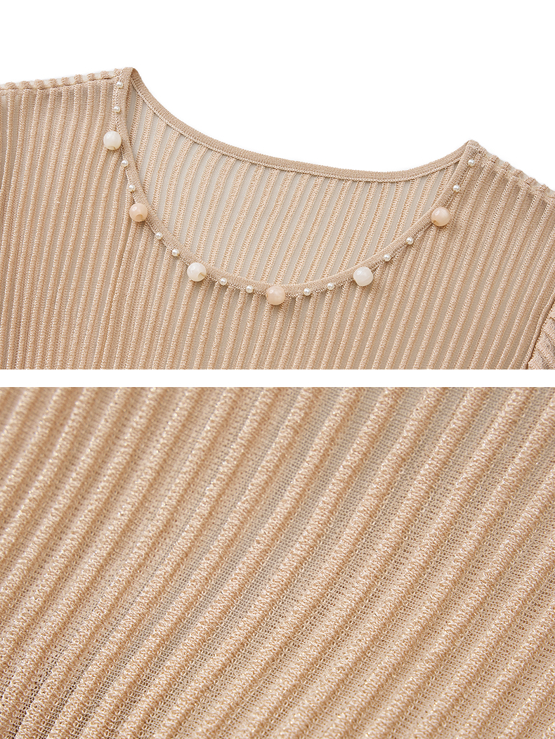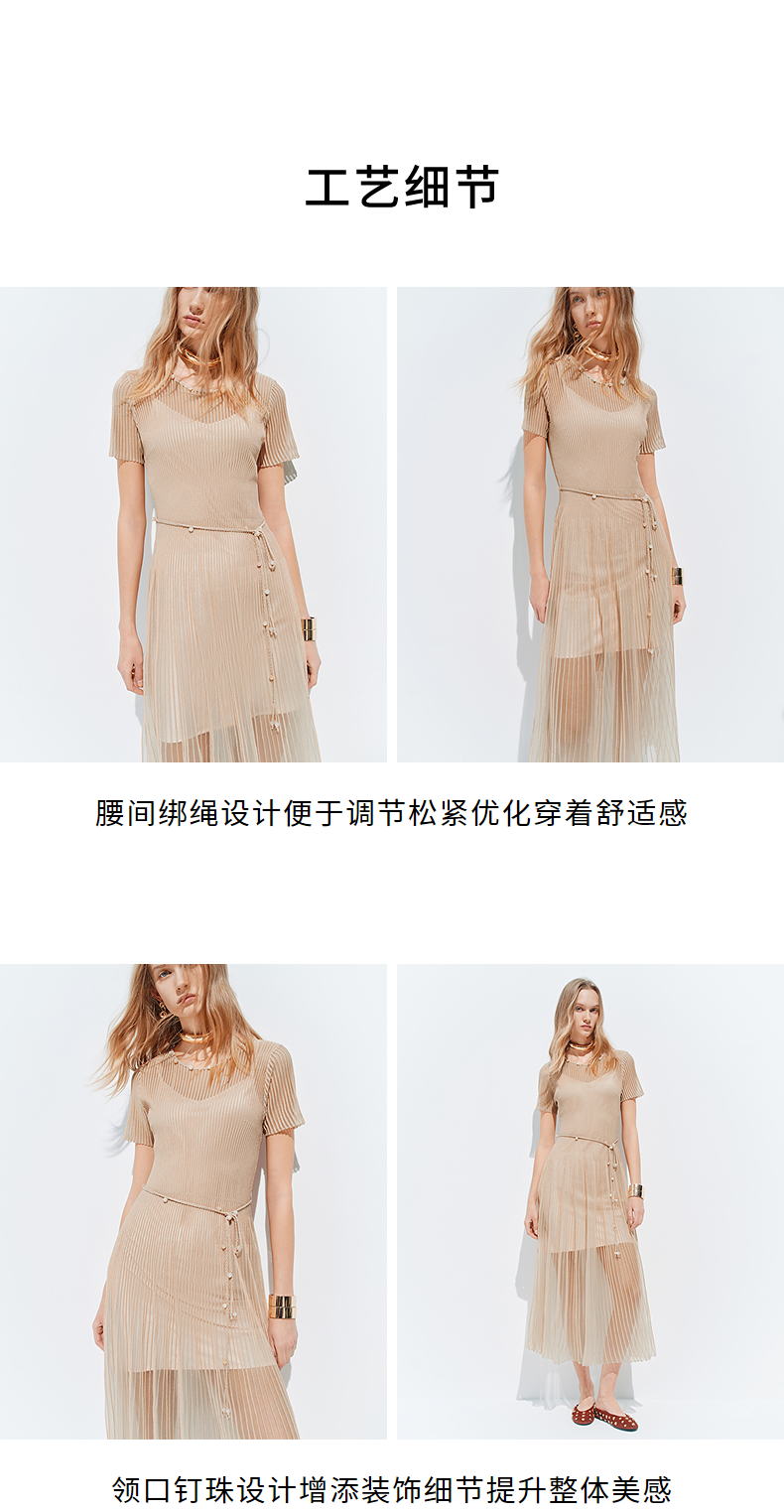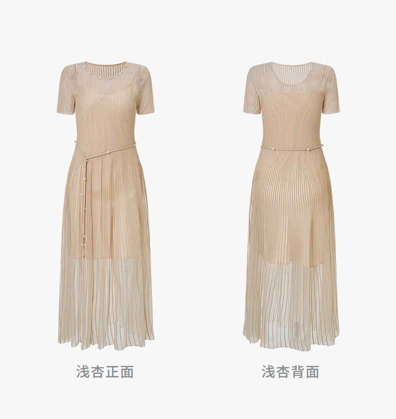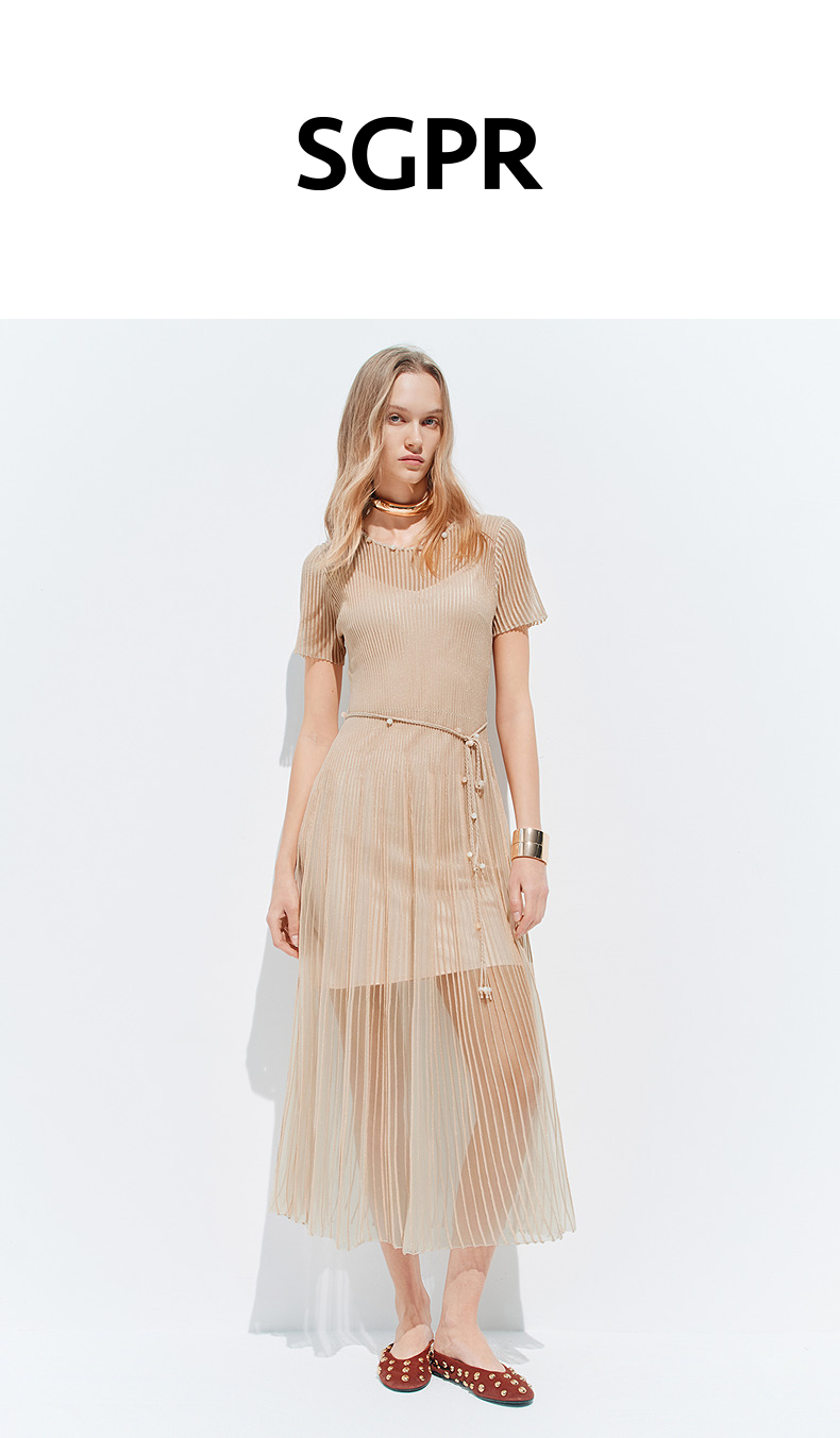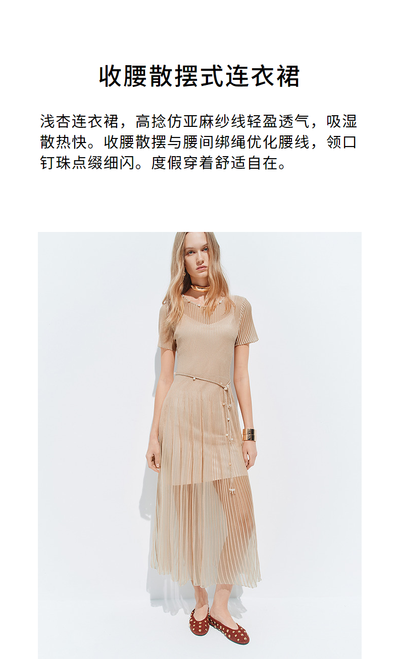 【SGPR】浅杏色散摆式连衣裙2026年夏季新款中长款钉珠收腰裙子(货号:MU80DR030)
