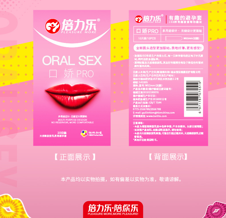 倍力乐第二代口交套 口娇套避孕套 口嗨·内颗粒套