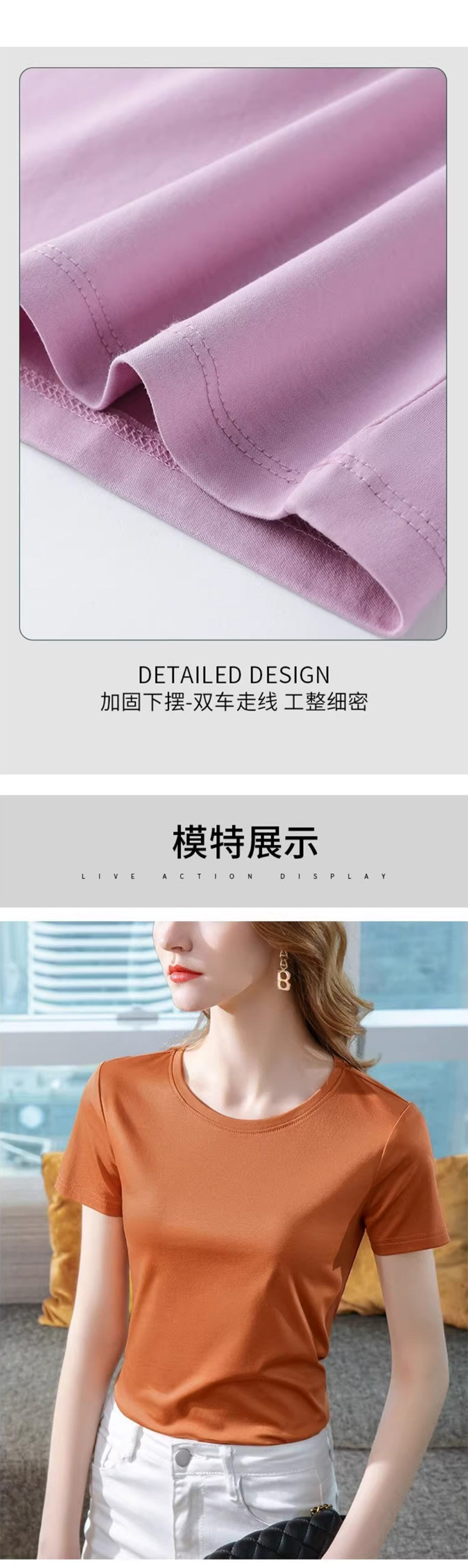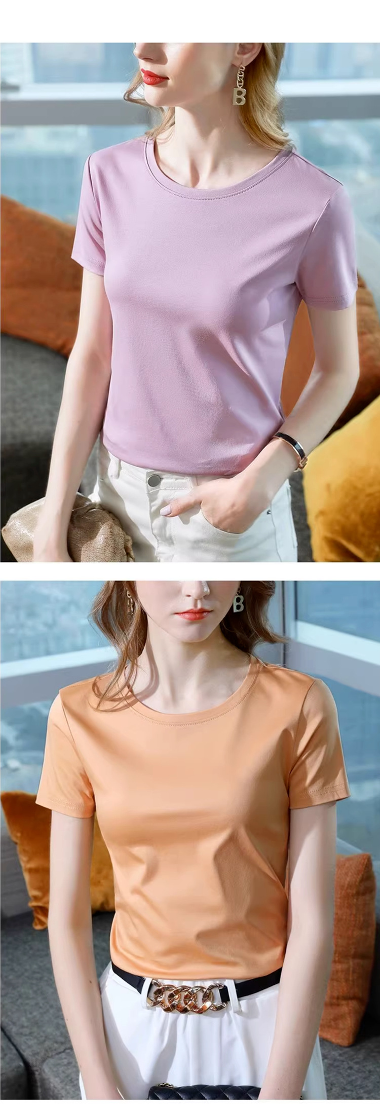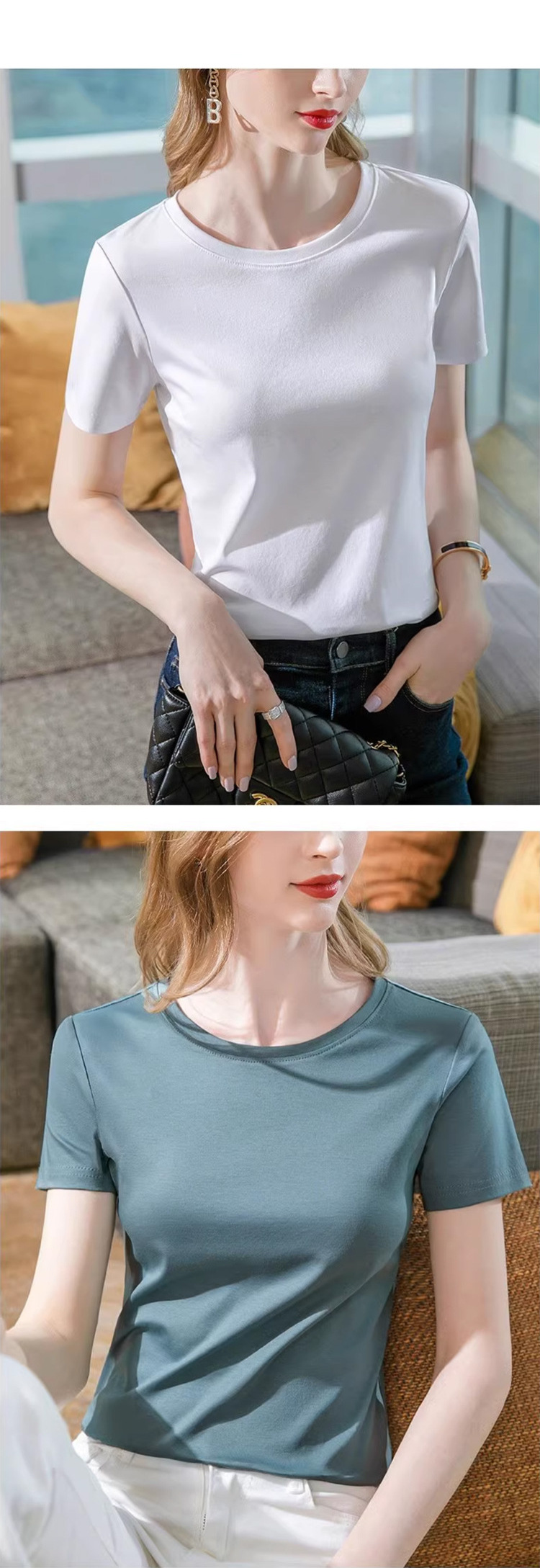DY330307-3075180支丝光棉正肩t恤女2025新款女装基础圆领纯棉体恤收腰短袖上衣