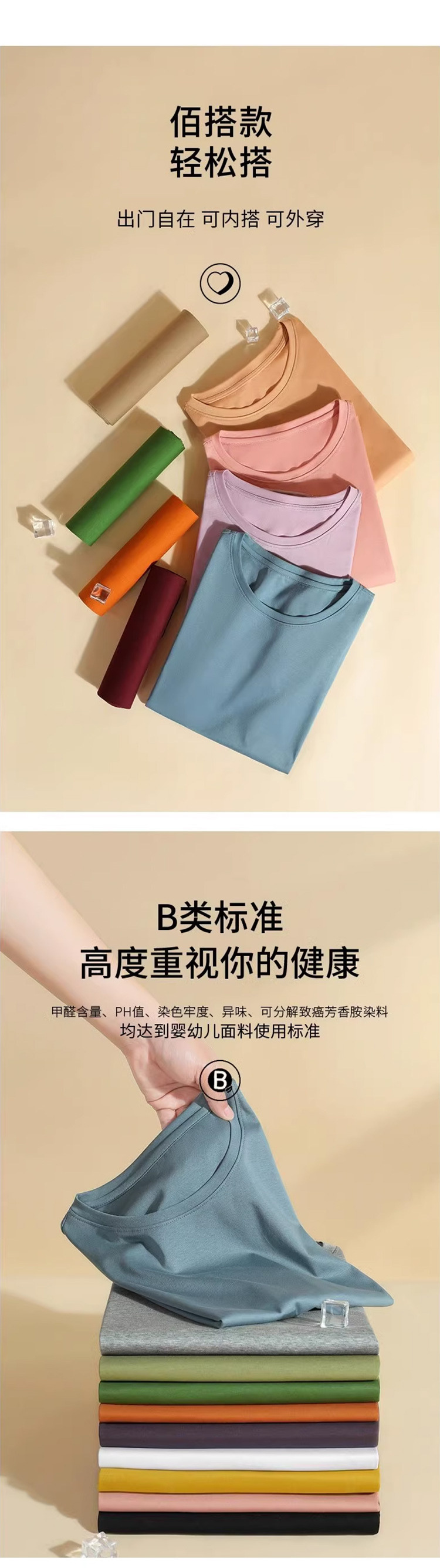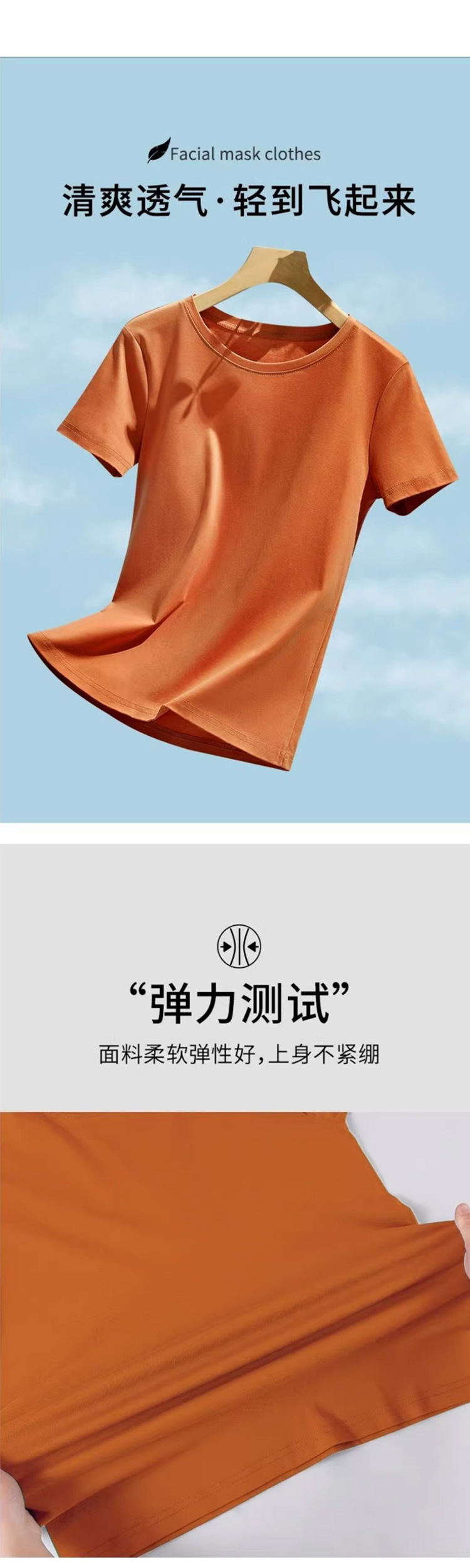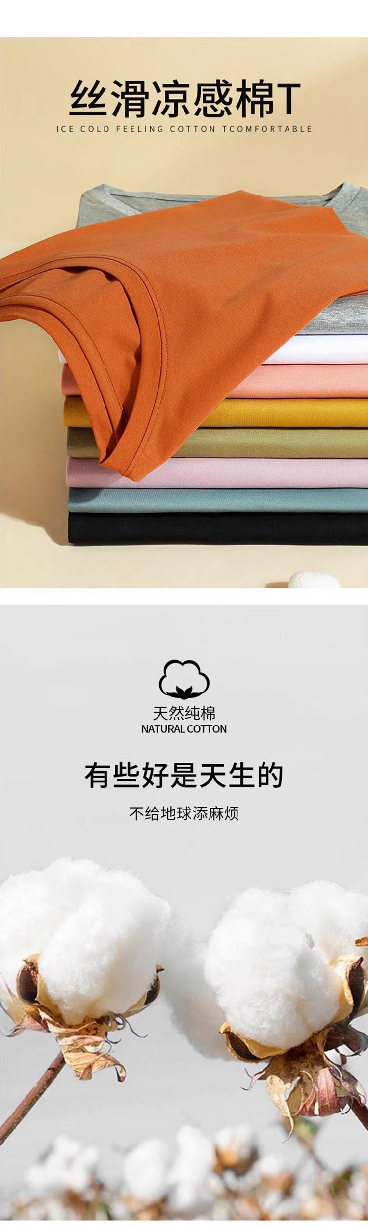 DY330307-3075180支丝光棉正肩t恤女2025新款女装基础圆领纯棉体恤收腰短袖上衣
