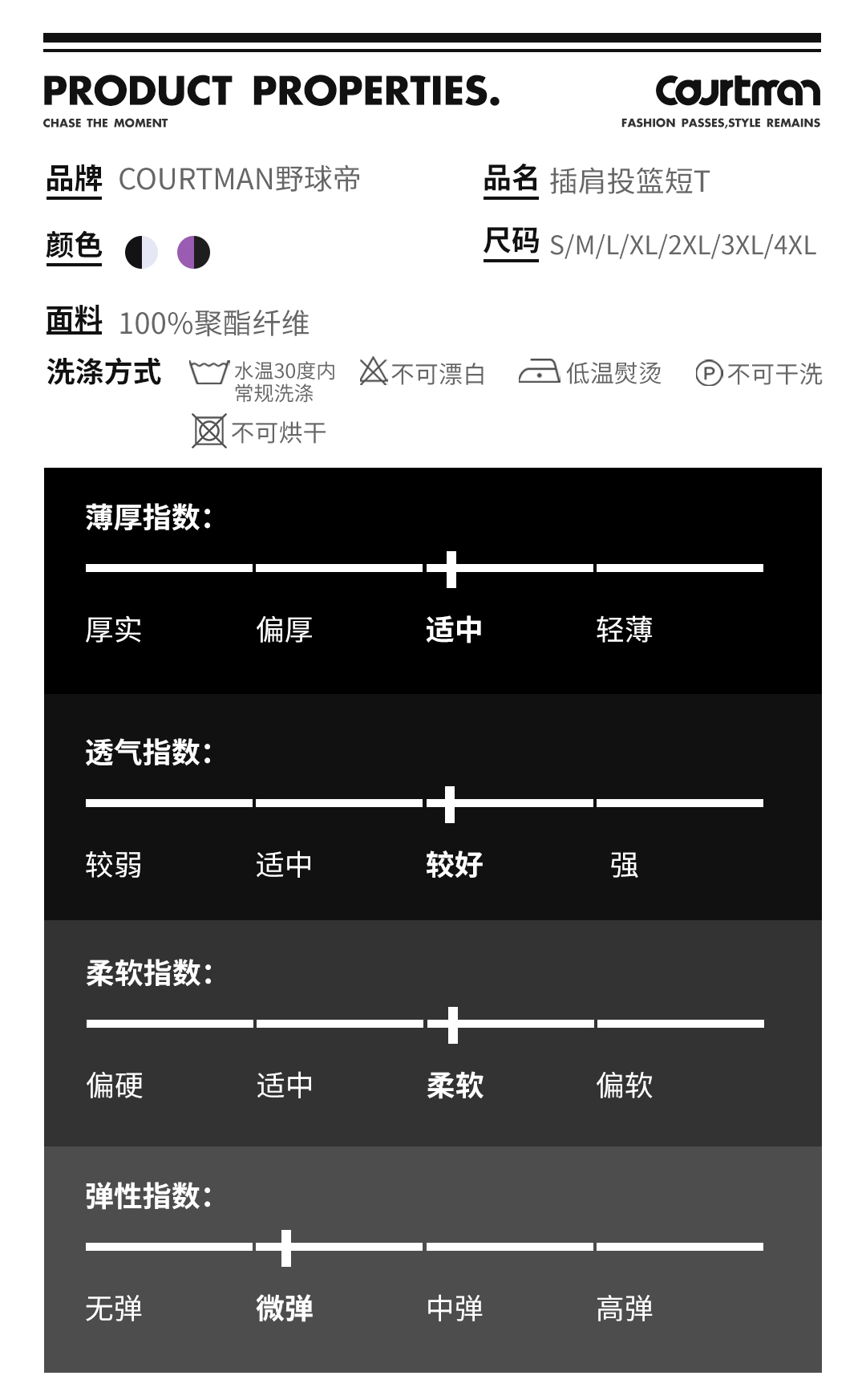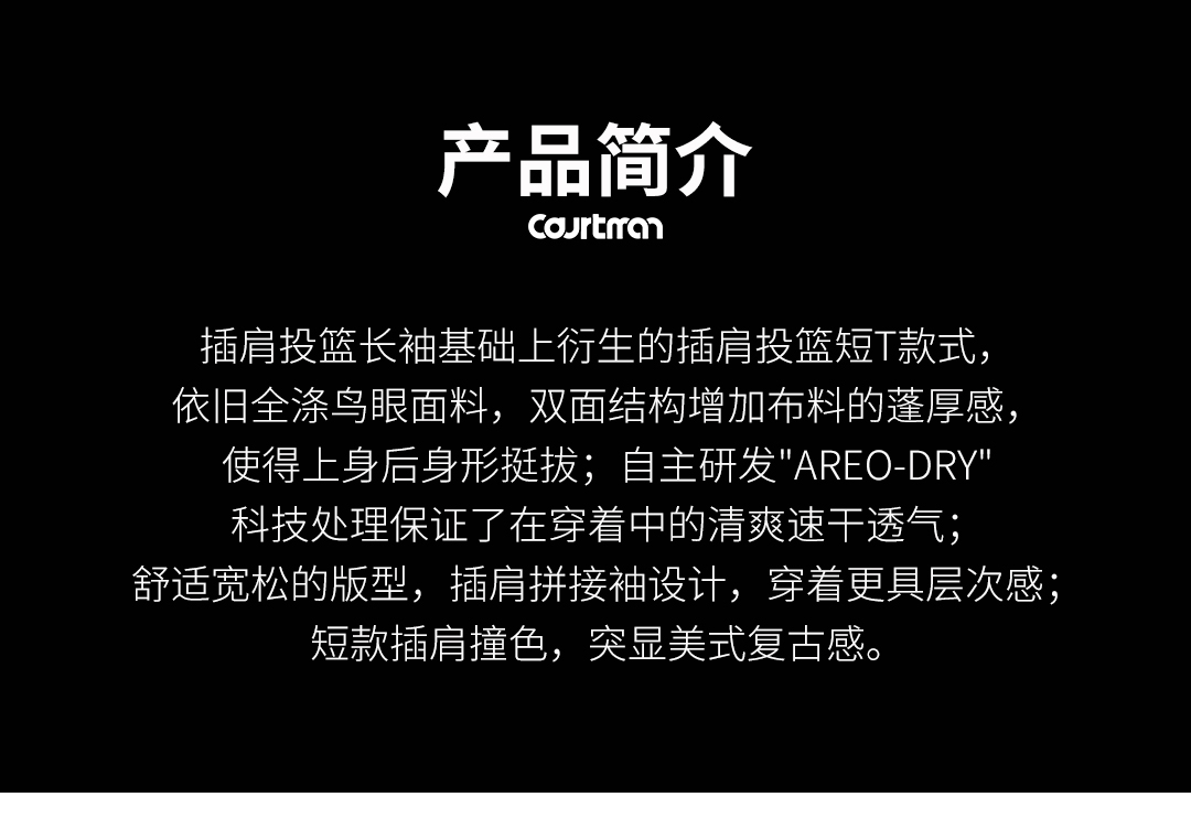 COURTMAN插肩投篮服T恤2023夏宽松休闲美式运动训练速干潮ins短袖