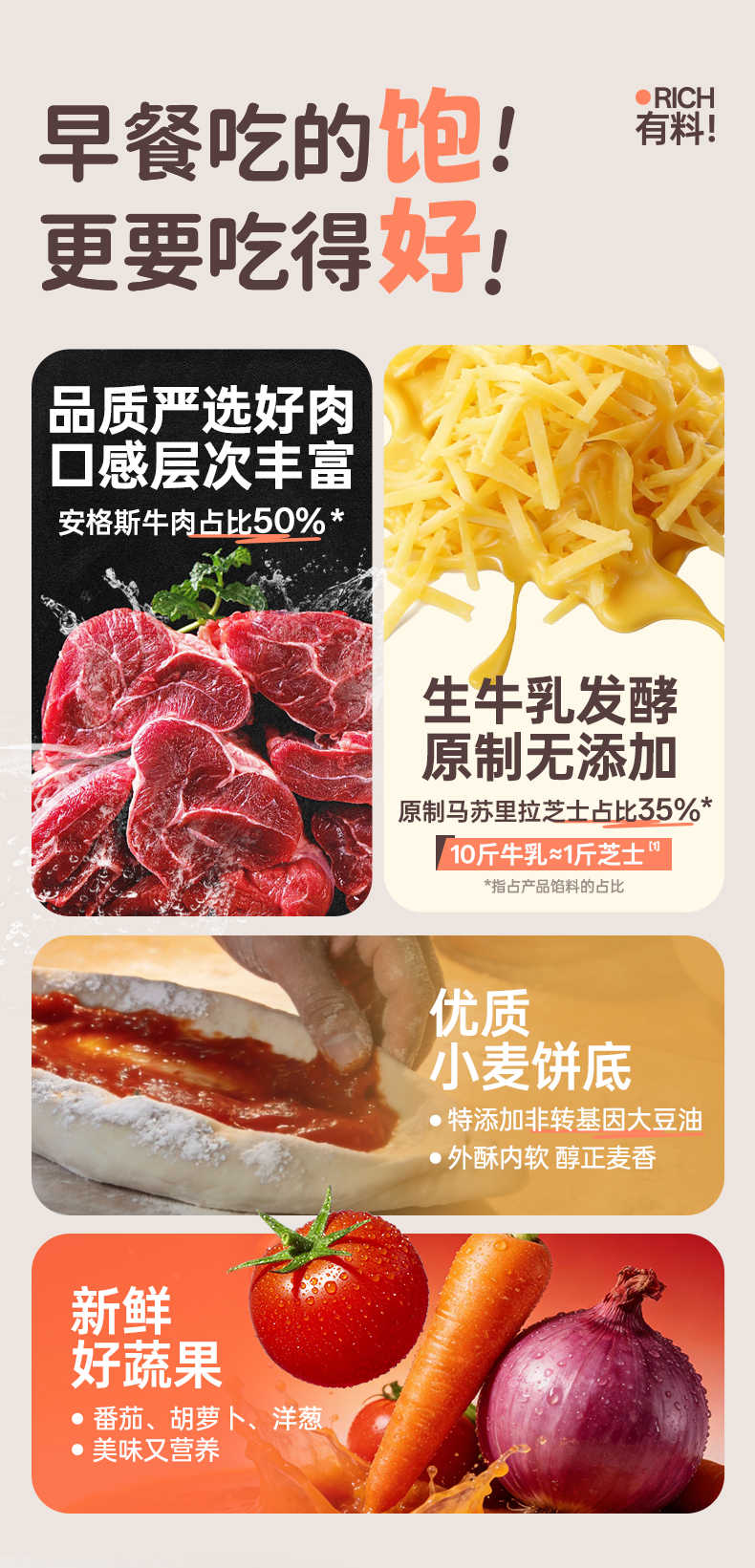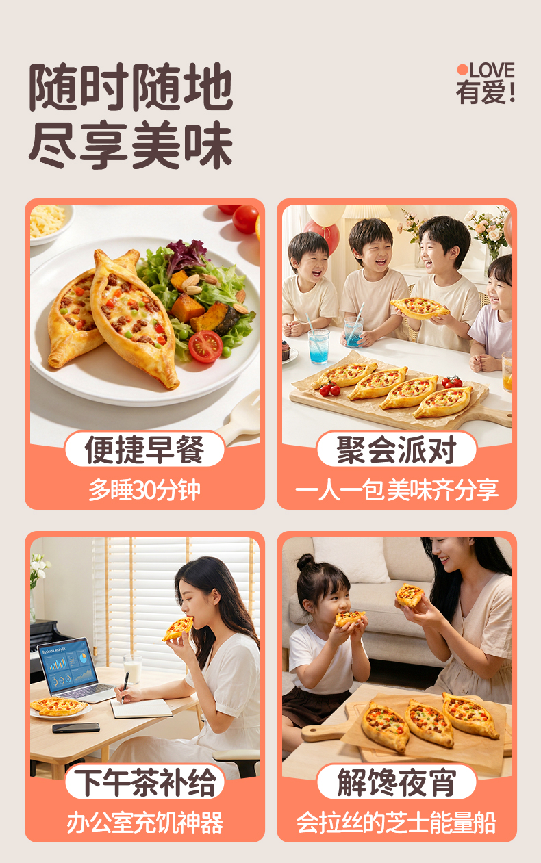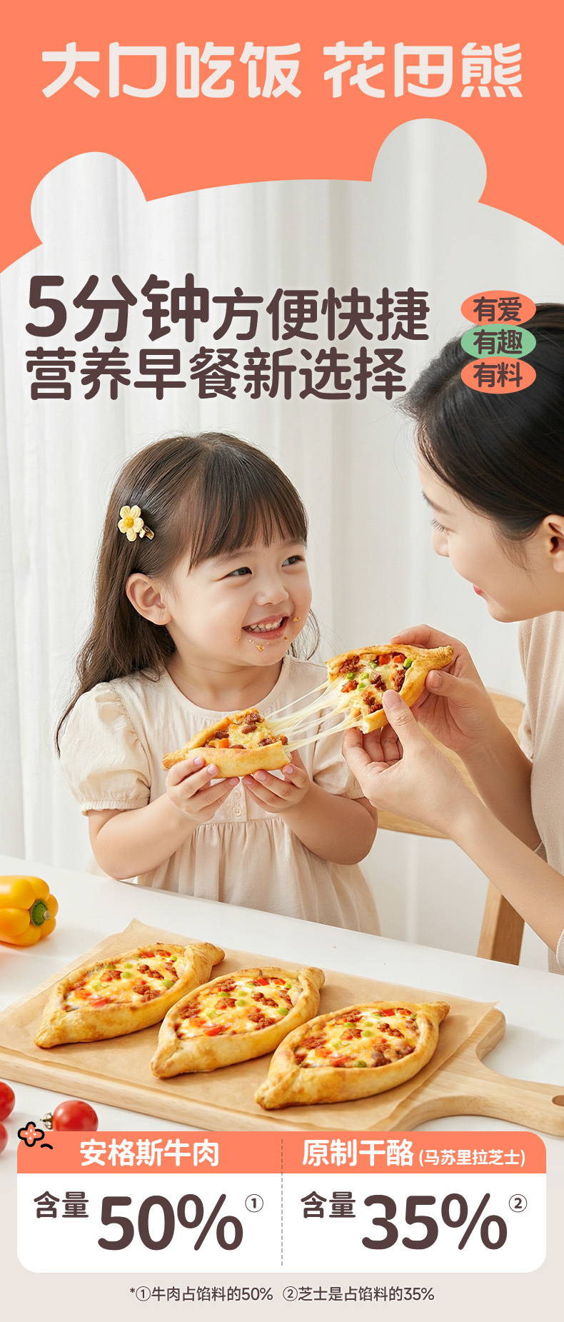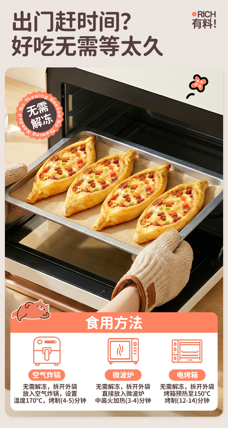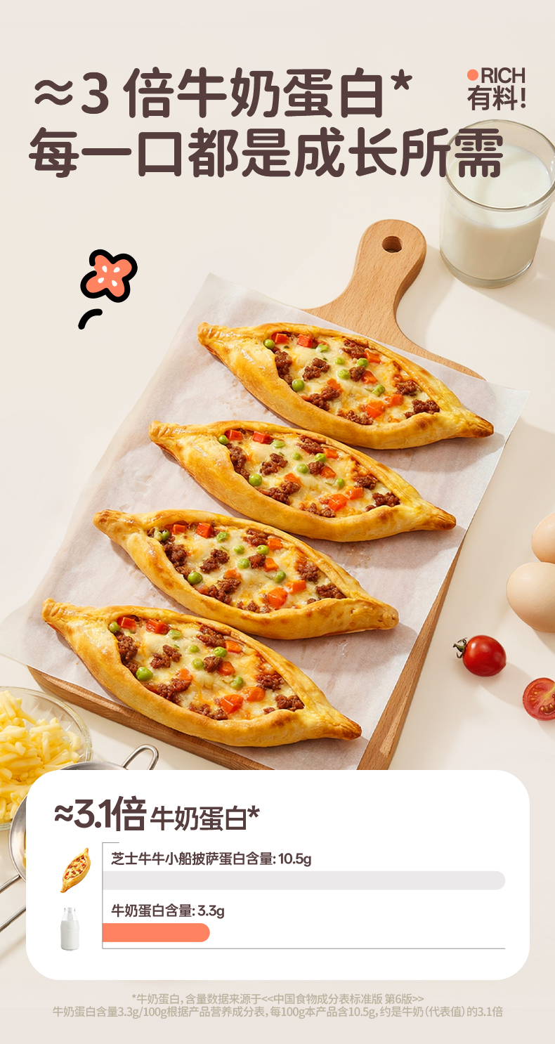 花田熊芝士牛牛小船披萨儿童早餐半成品加热即食牛肉烘焙披萨饼胚fs