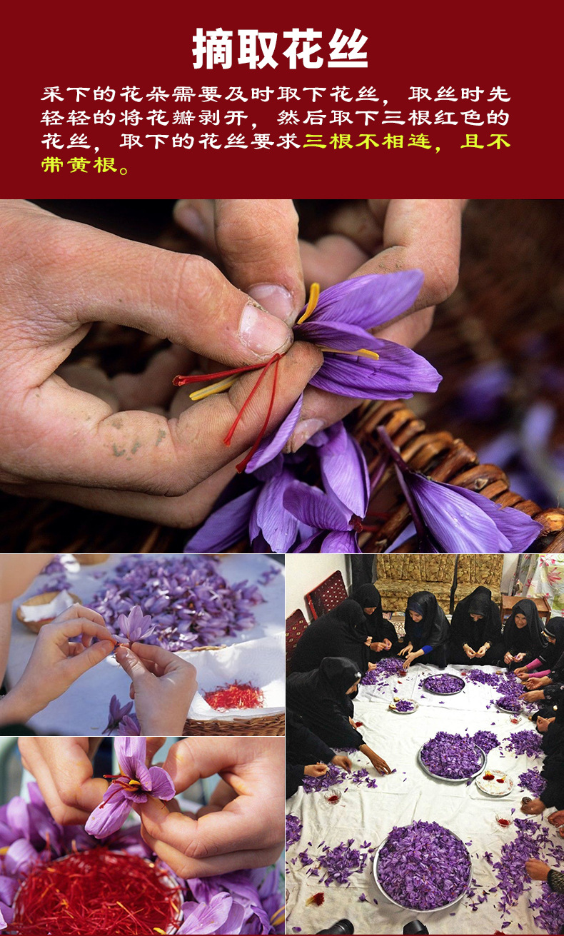 | 藏红花,原名番红花,又称西红花,原产地在西班牙,希腊、小亚细亚、波斯等地,《本草纲目》记载:“藏红花即番红花,译名泊夫兰或撒法郎,产于天方国。”“天方国”即指波斯等国家。番红花是经印度传入西藏,由西藏再传入中国内地。所以,人们把由西藏运往内地的番红花,误认为西藏所产,称做“藏红花”。番红花的花语和象征意义:快乐、喜悦。 |