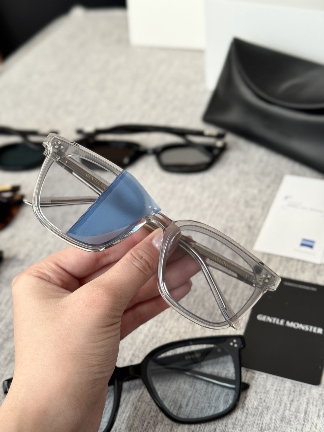 镜片都带着保护膜!
