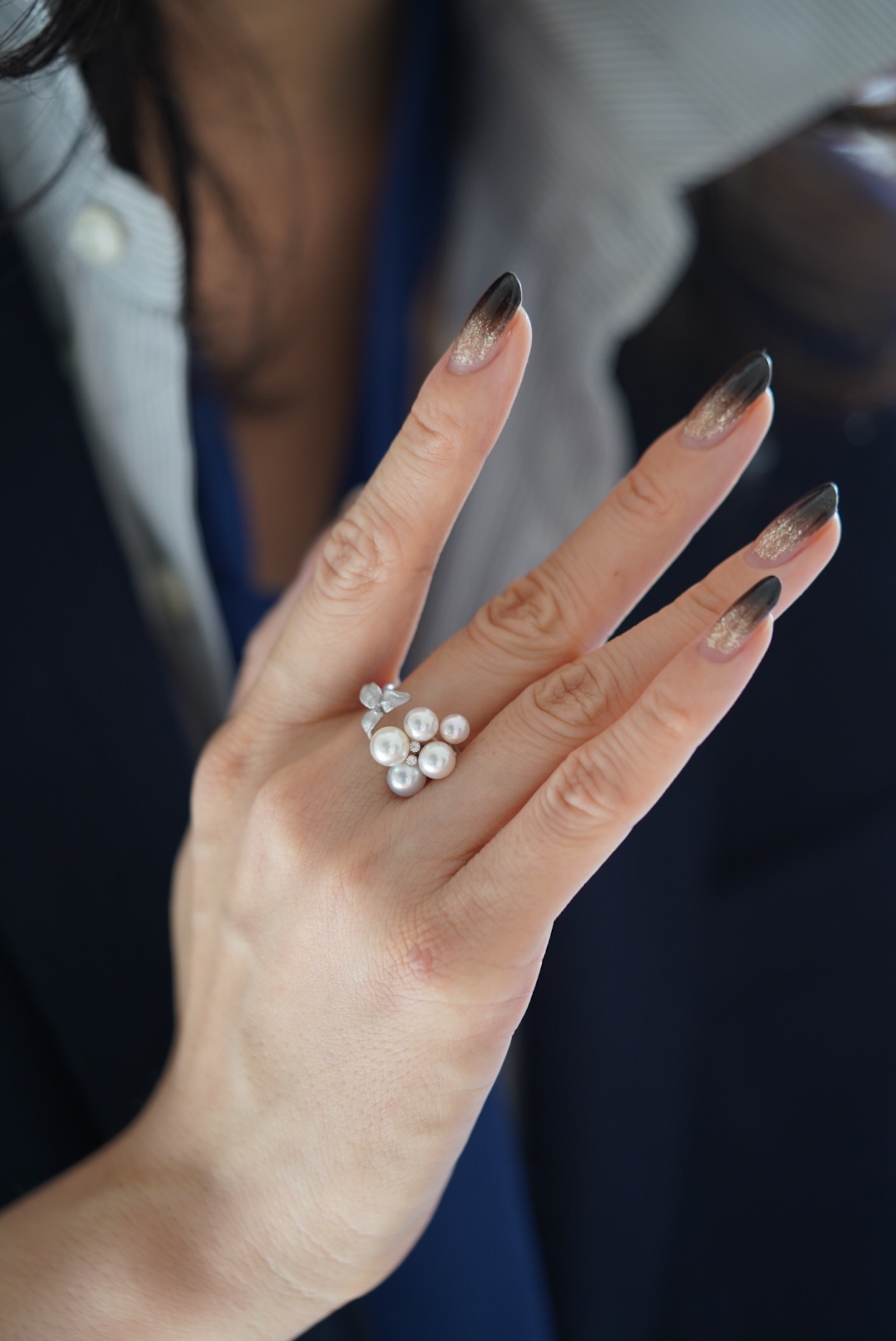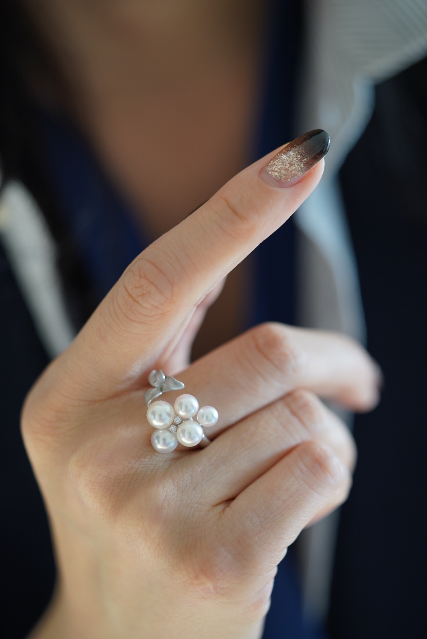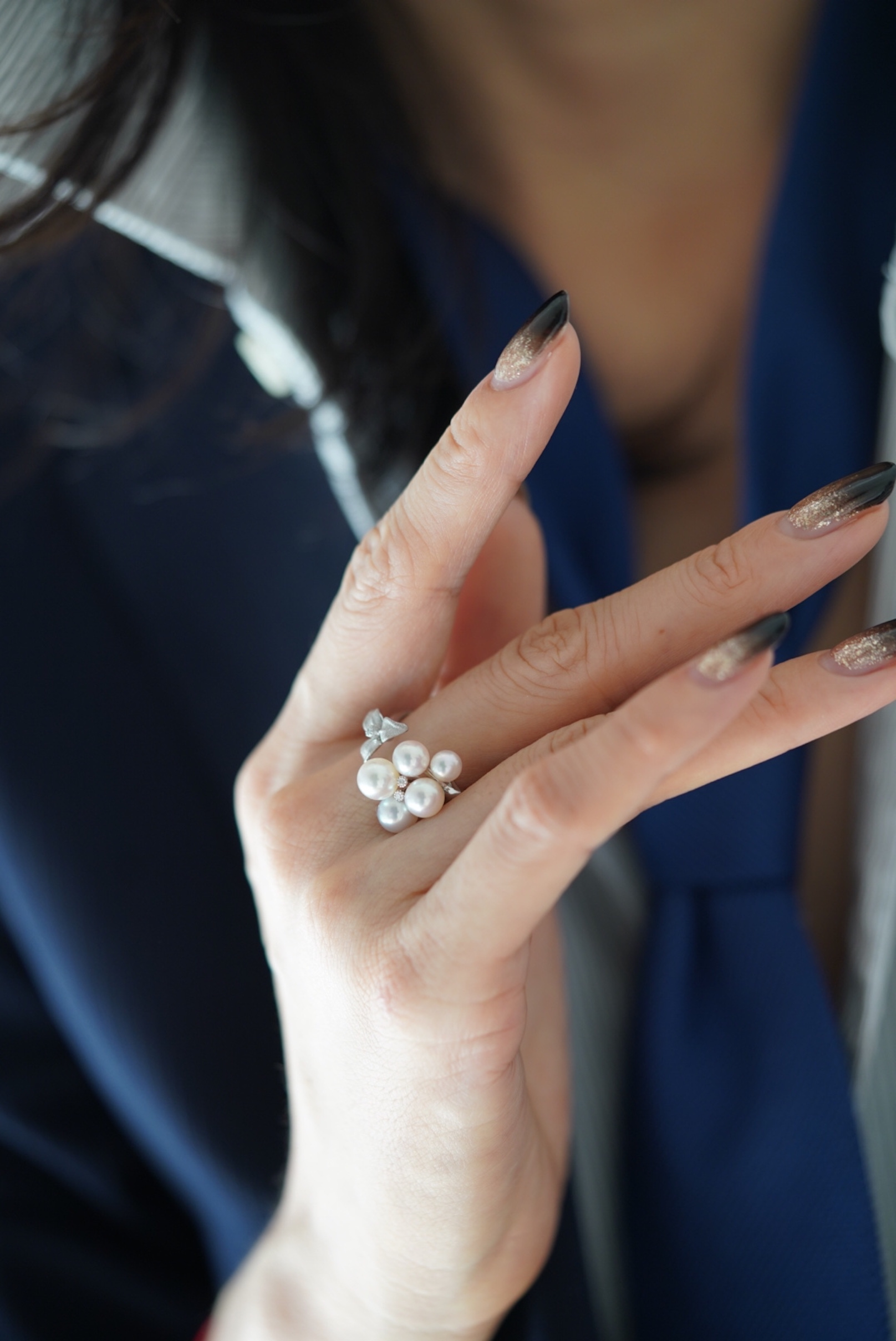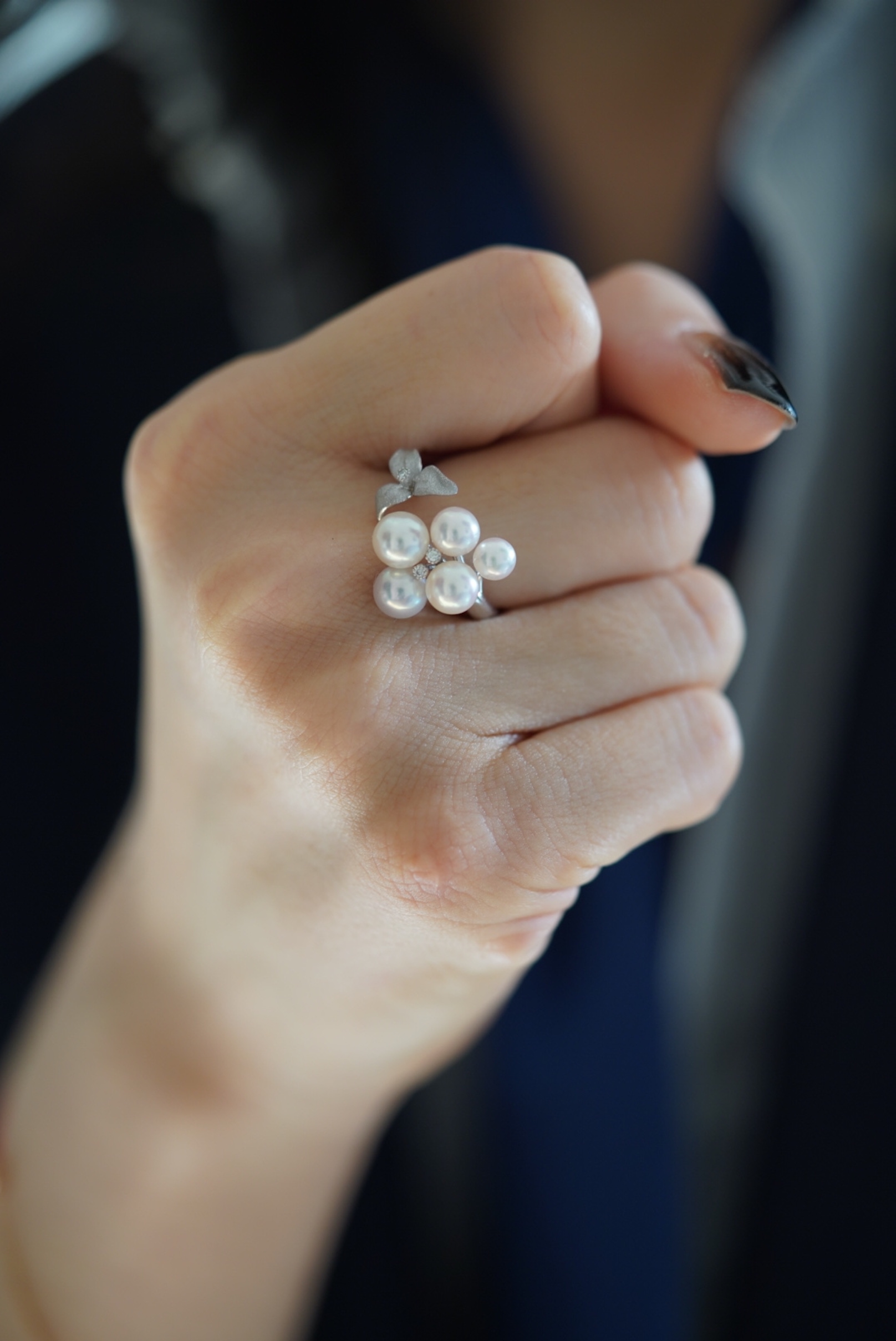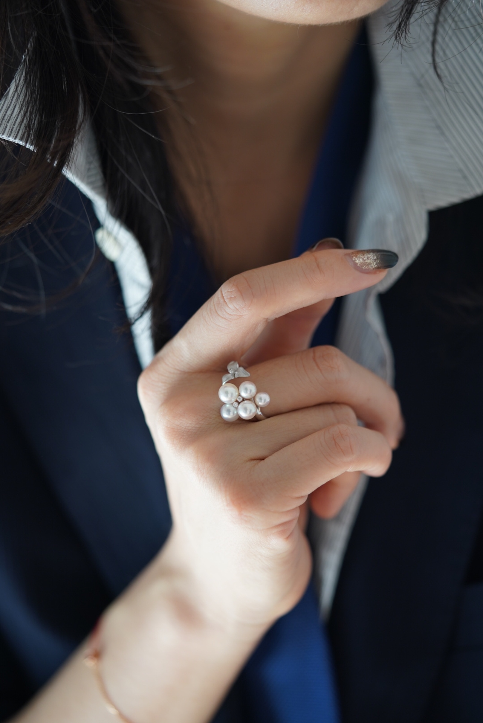 Akoya浅浅灰大葡萄🍇主打一个刚柔并济akoya灰 18k钻石 白还有珍珠的柔美三叶草☘️的仙气珍珠4.5-6.5mm戒指4999🉐