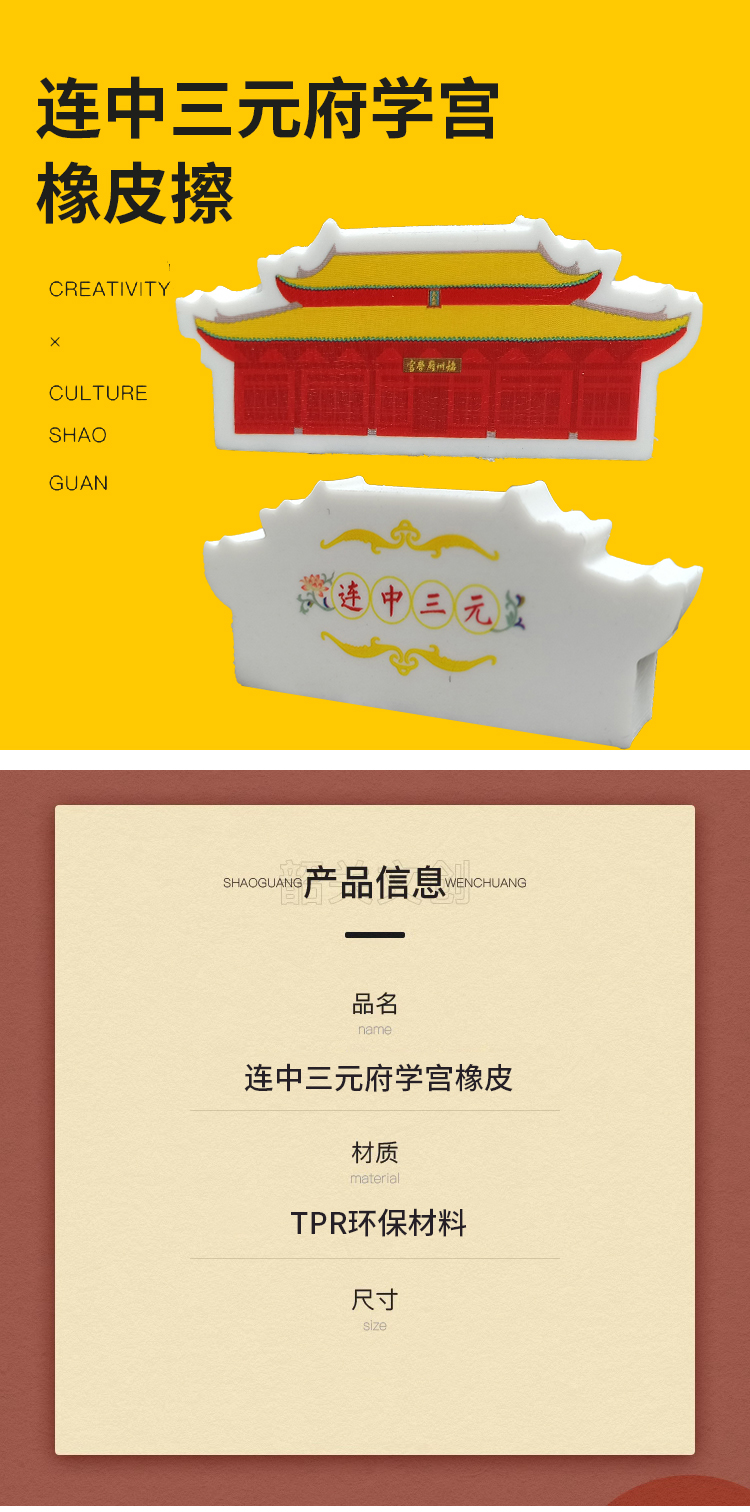 【韶关市博物馆文创】连中三元府学宫橡皮 小学生考试专用不留痕橡皮擦文创