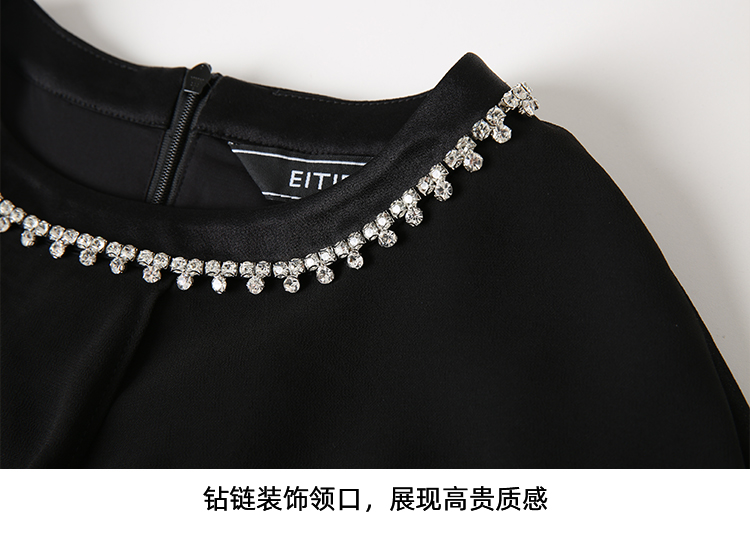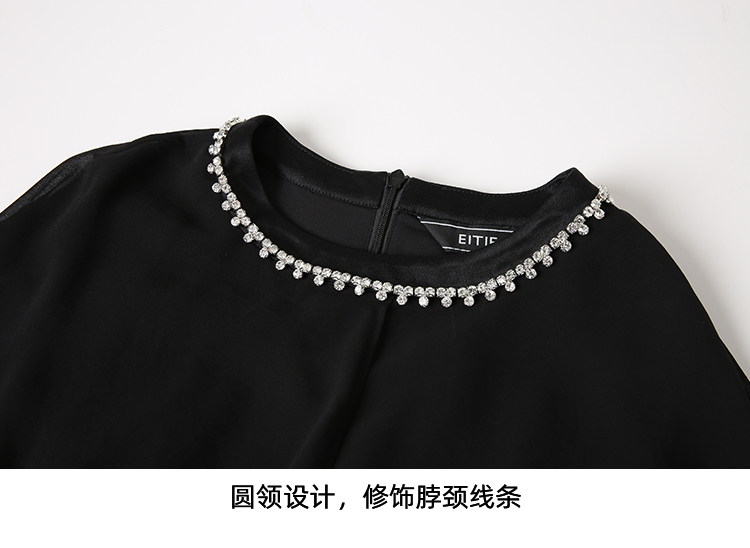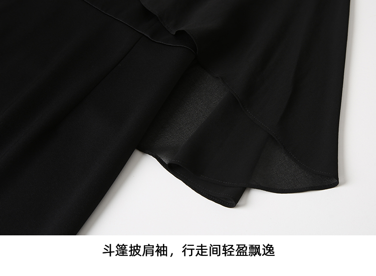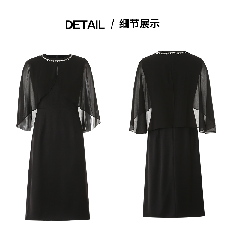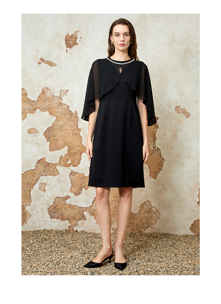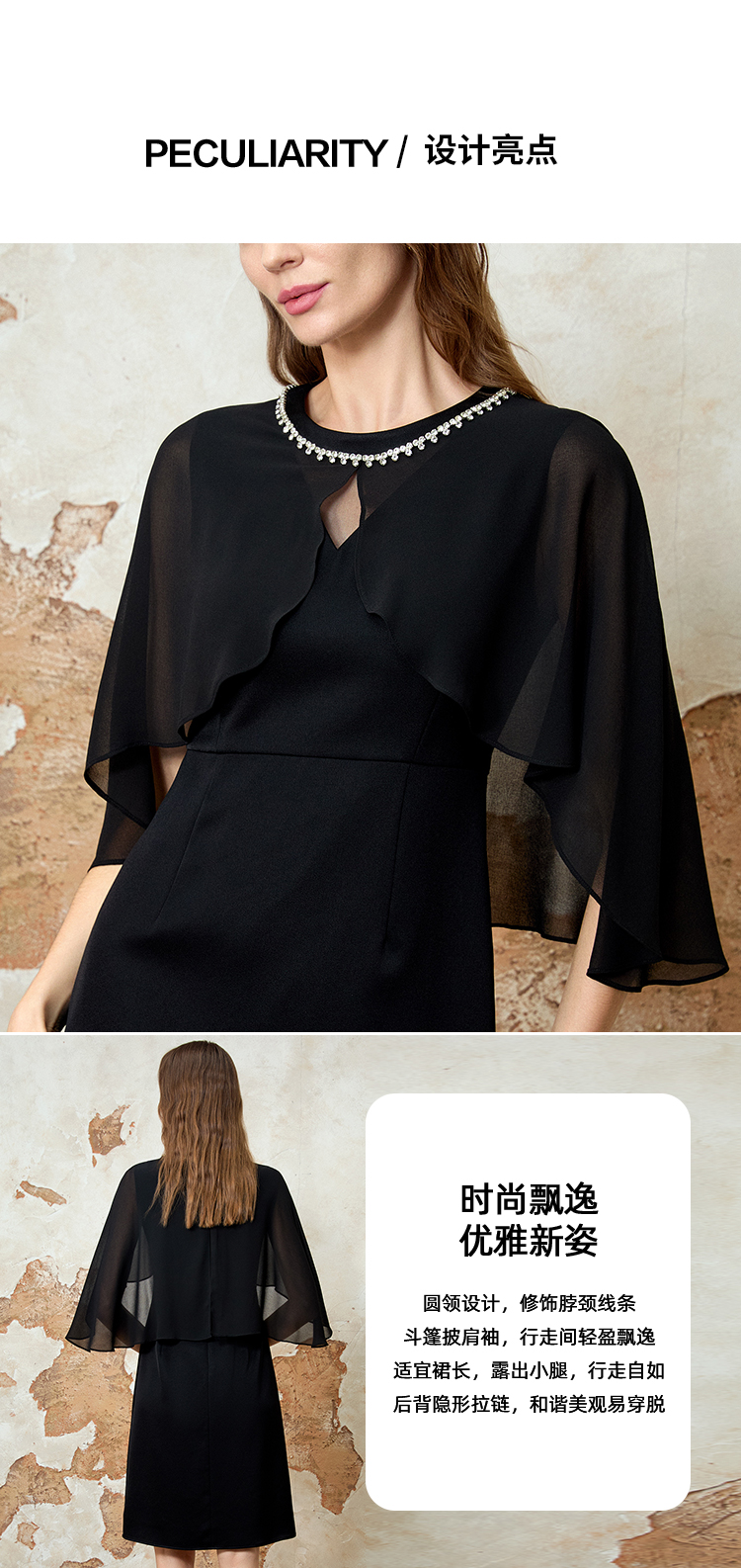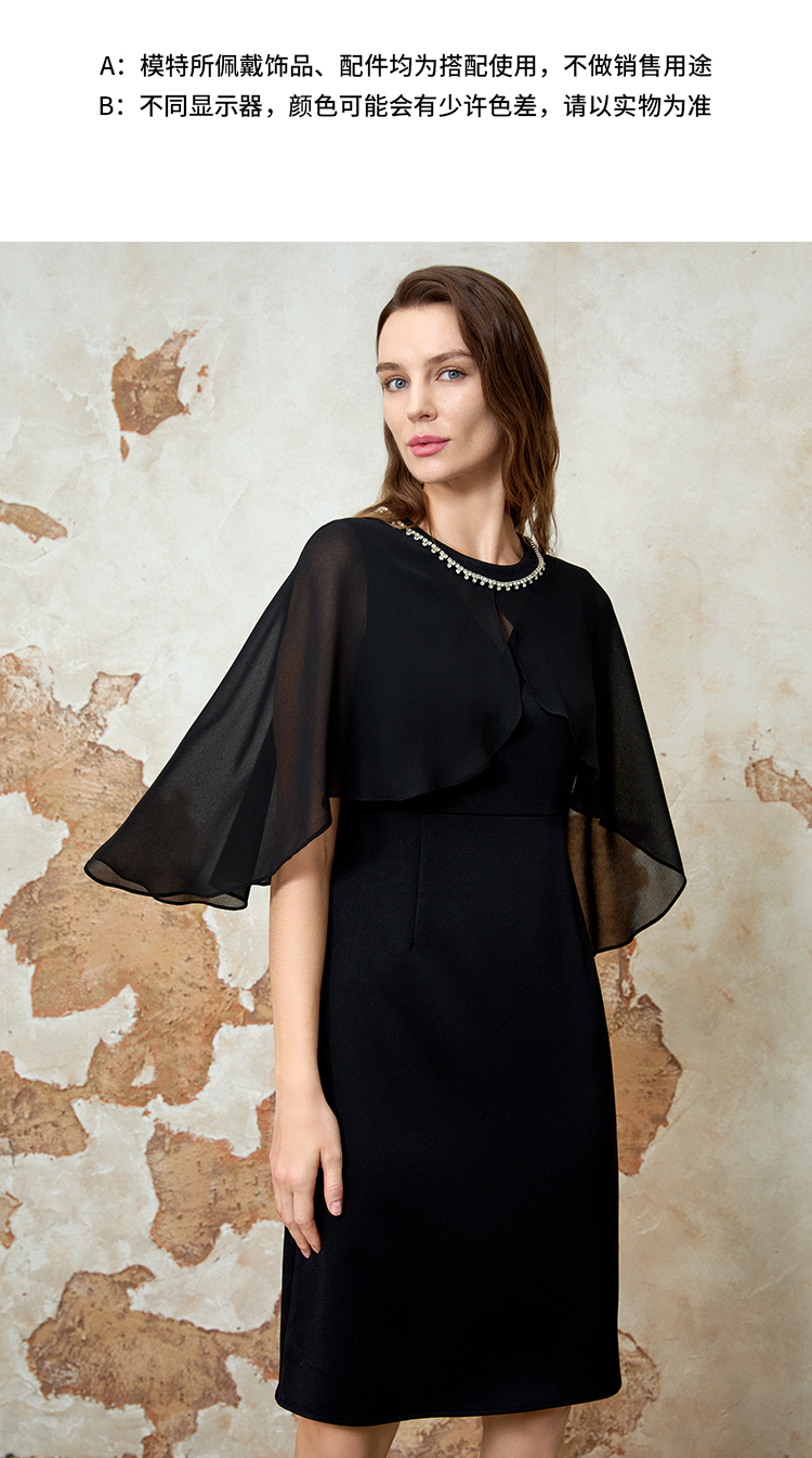 EITIE爱特爱春季新款时尚斗篷网纱显瘦气质黑色连衣裙8107831