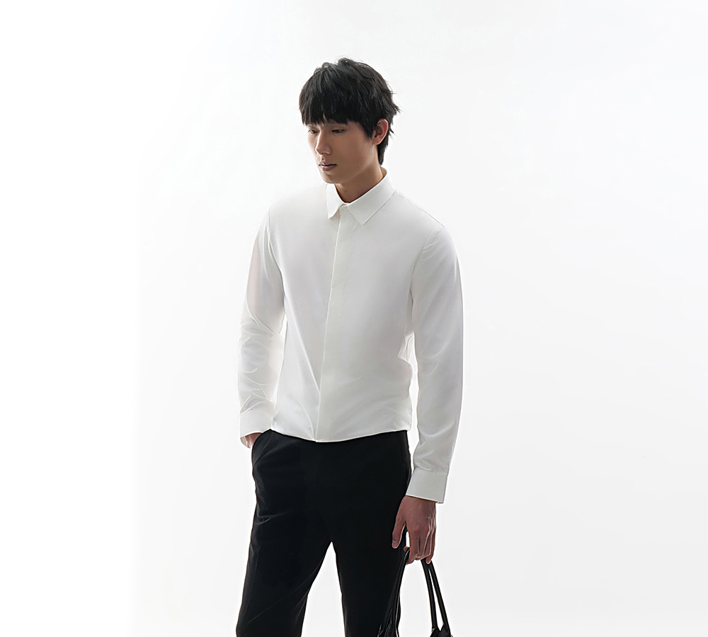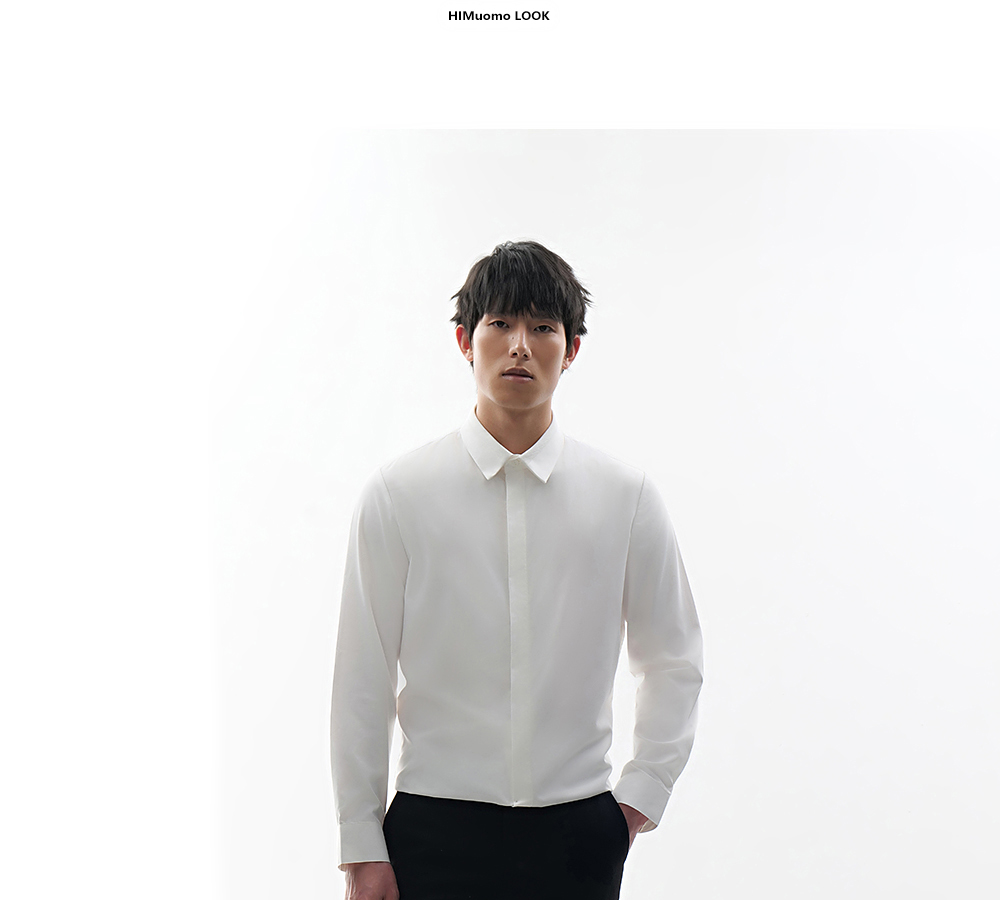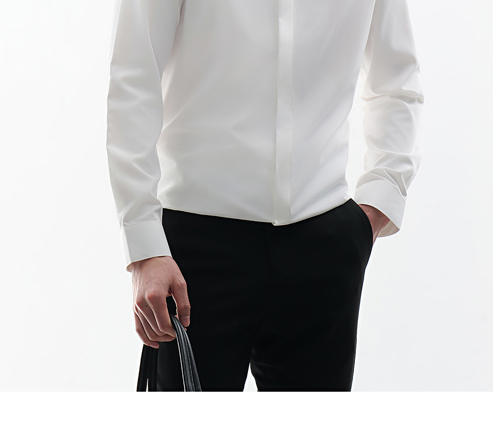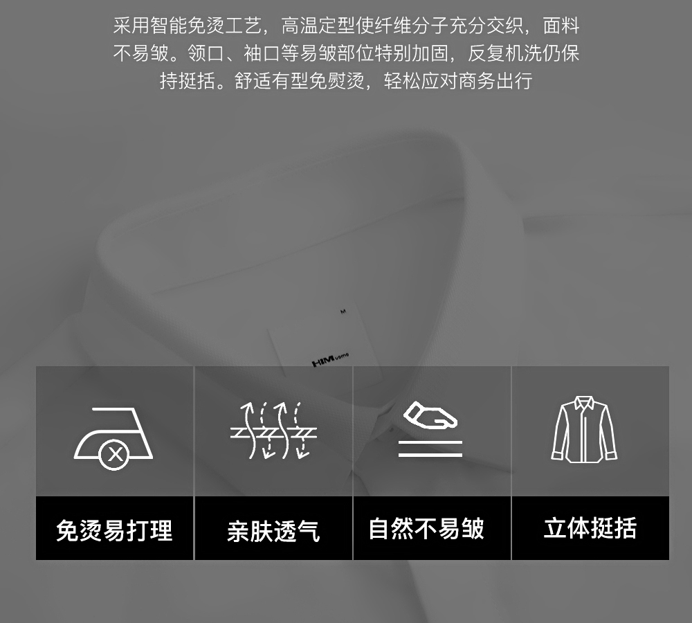 HIM漢崇 时尚男士修身长袖衬衫舒适透气方领商务正装 2025春季