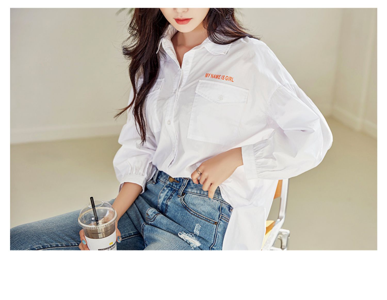 韩都衣舍2019春装新款女装打底宽松灯笼袖时尚白色衬衫GD01134聖