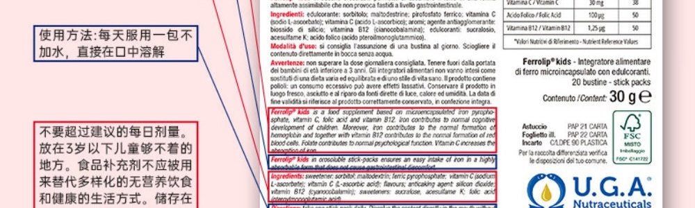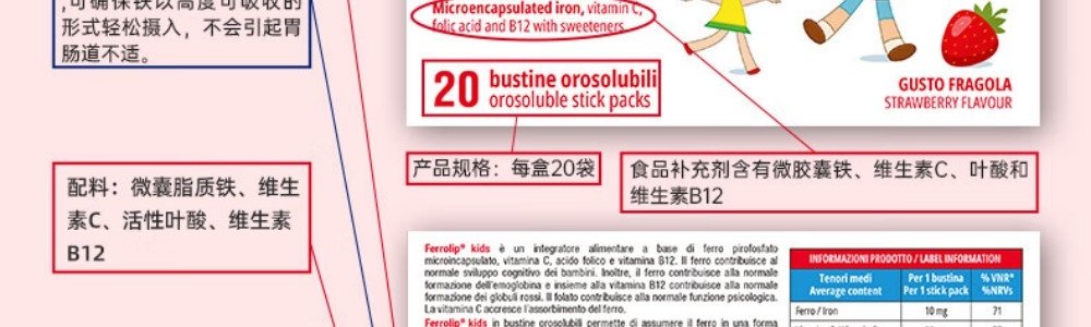 【保税】意大利 意之宝(Ferrolip)红精灵儿童补铁 1.5g*20条/盒