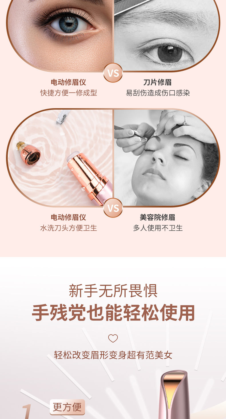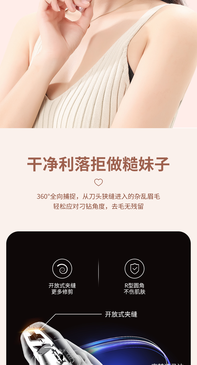 【新手也不怕刮伤】meoko电动修眉器 快速修剪眉毛 可拆卸刀头水洗 唇毛腋毛都可以使用
