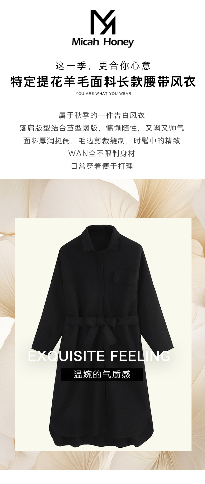 米加蜜 黑色花瓣羊毛风衣『款式宽松,建议大家买小一码』