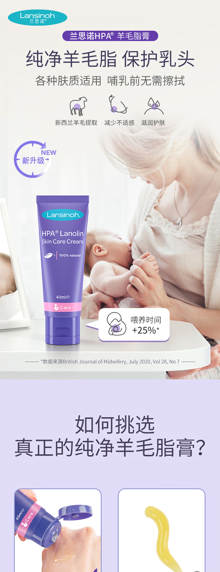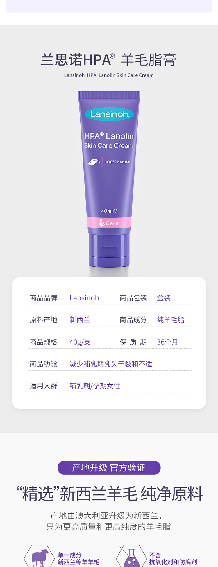 美国lansinho兰思诺 羊毛脂膏 乳头霜保护霜哺乳修复40g