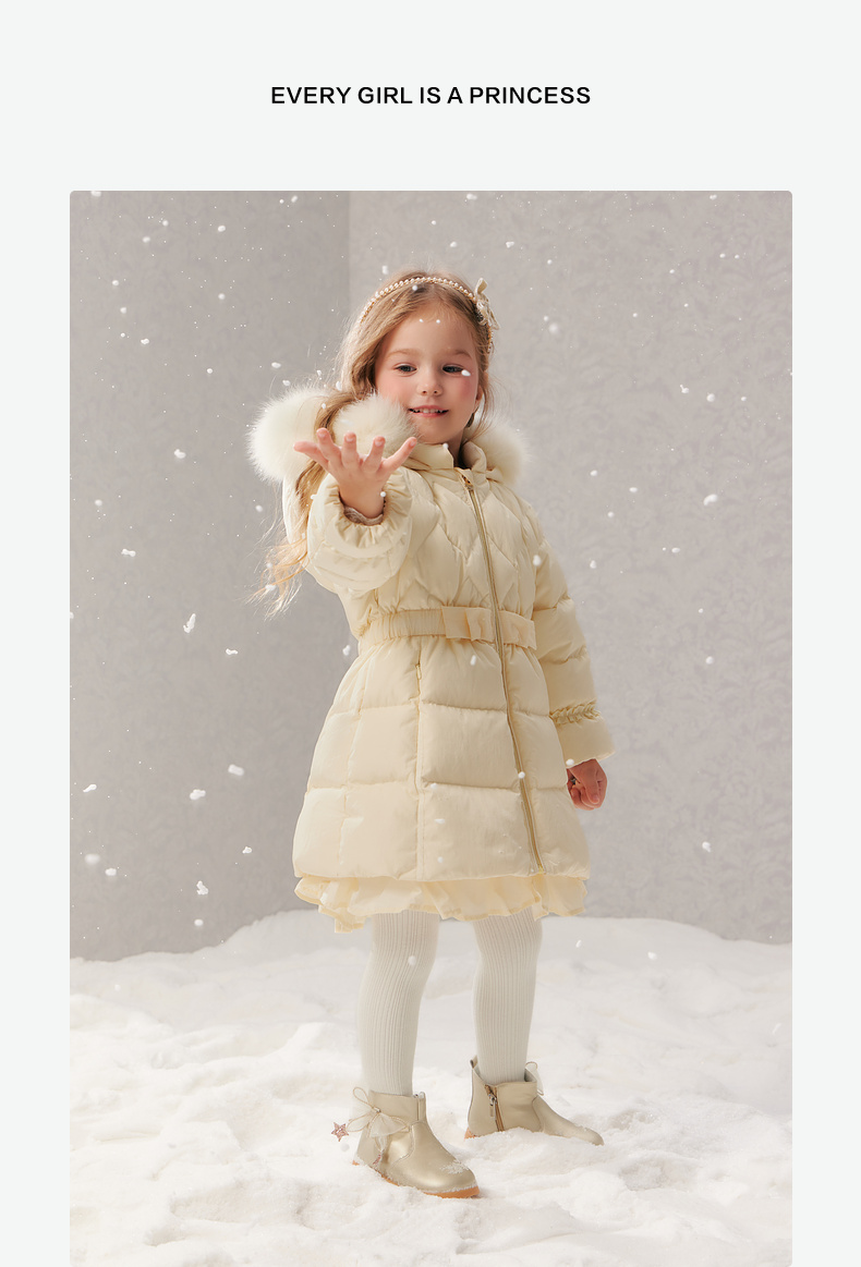 笛莎Deesha 童装女童羽绒服2025冬新款经典收腰甜美版型羽绒服
