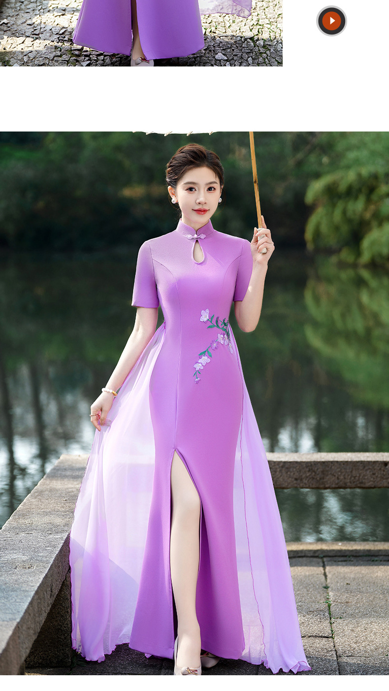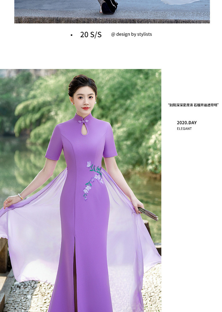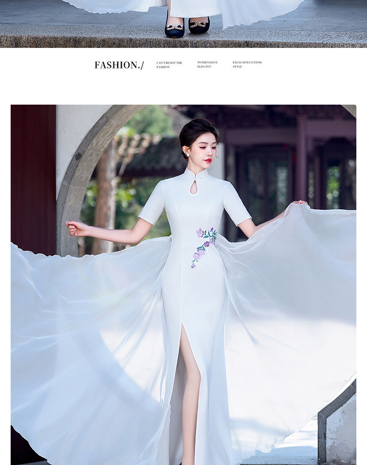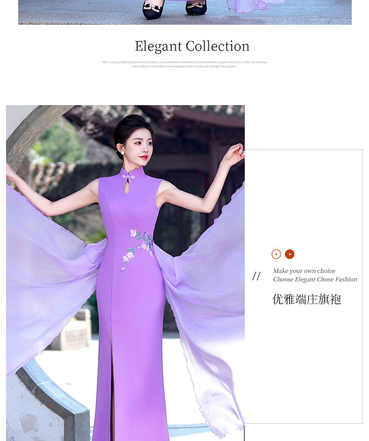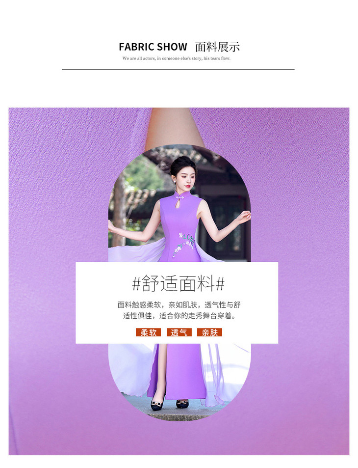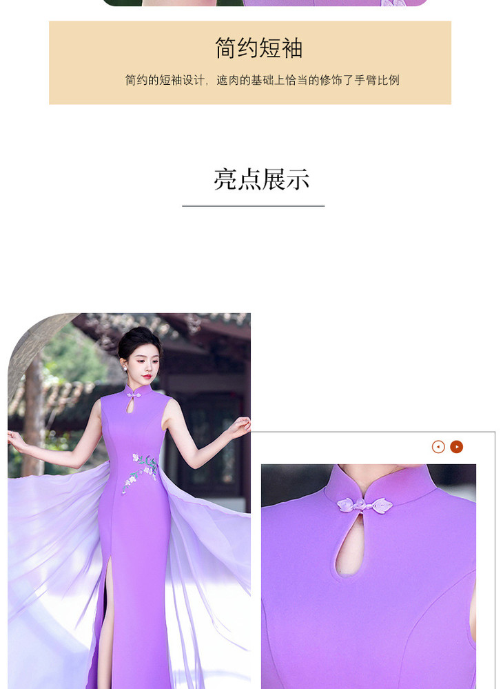 中国风高开叉燕尾纱修身改良走秀演出旗袍YD3/16-07