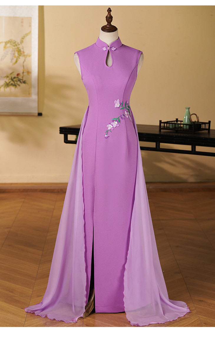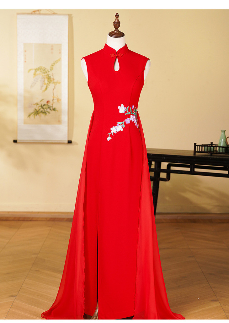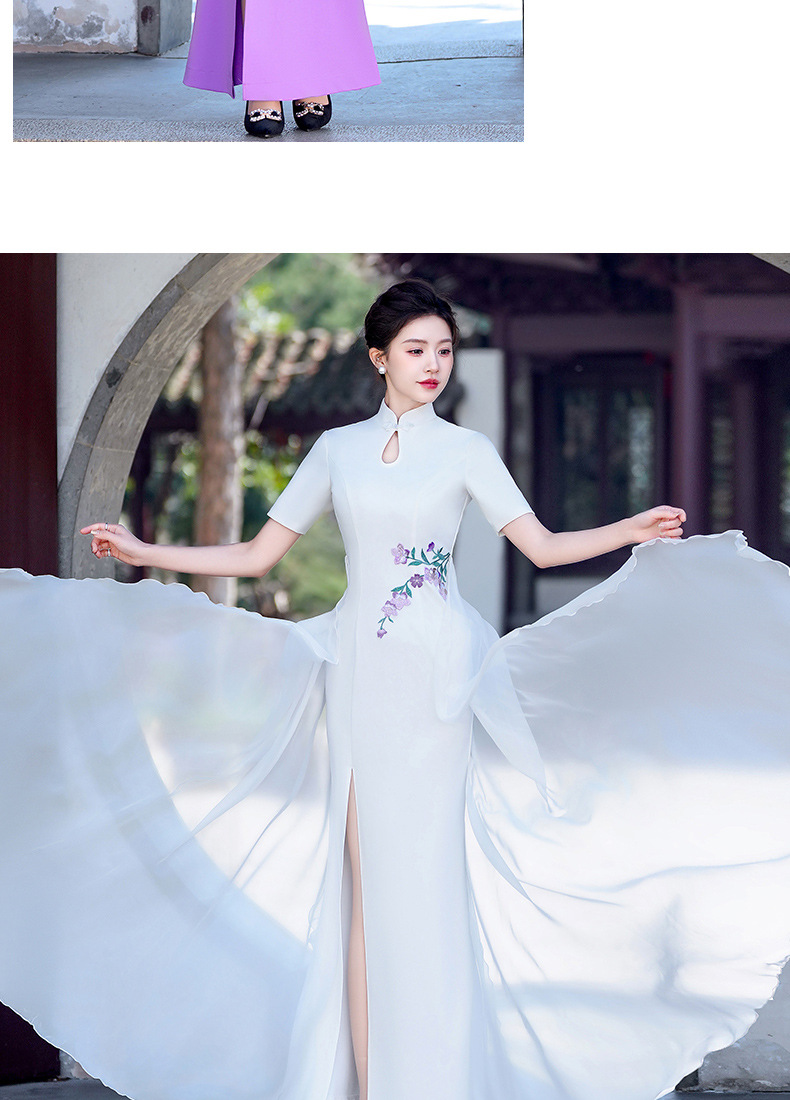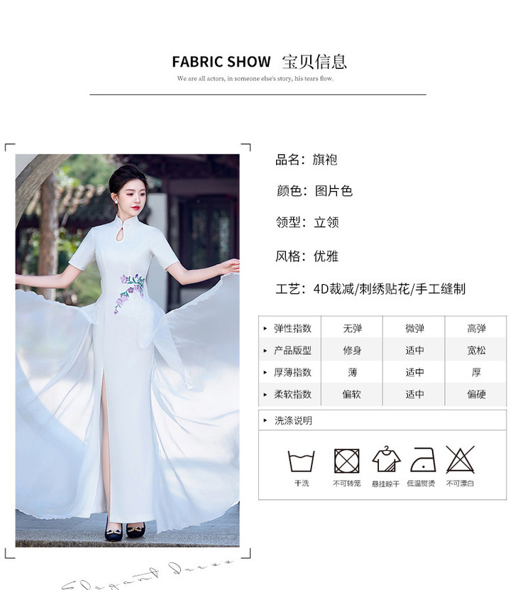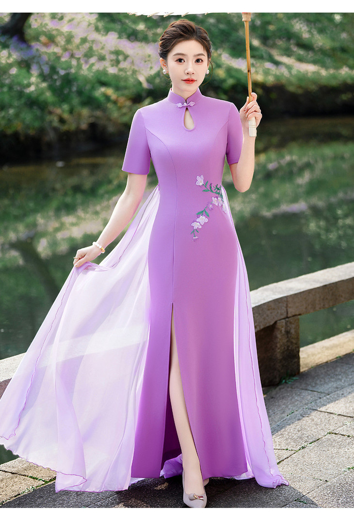 中国风高开叉燕尾纱修身改良走秀演出旗袍YD3/16-07