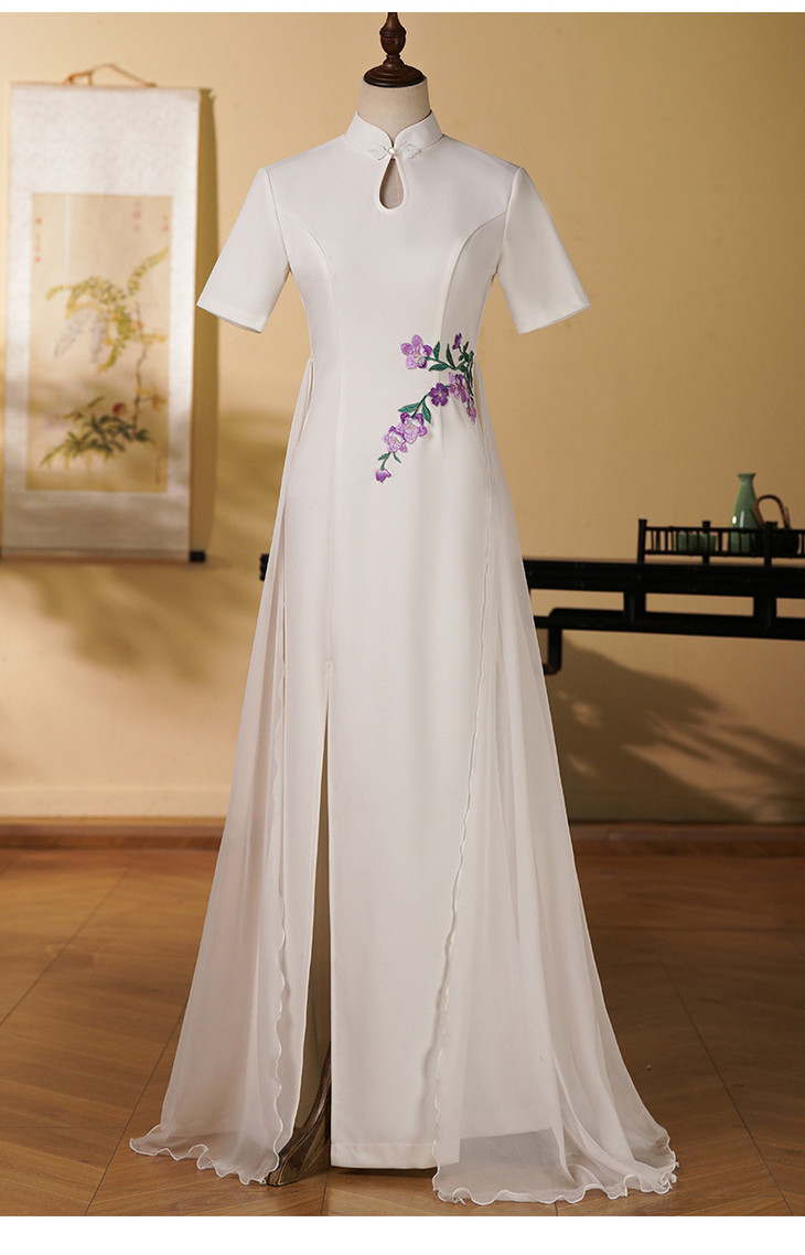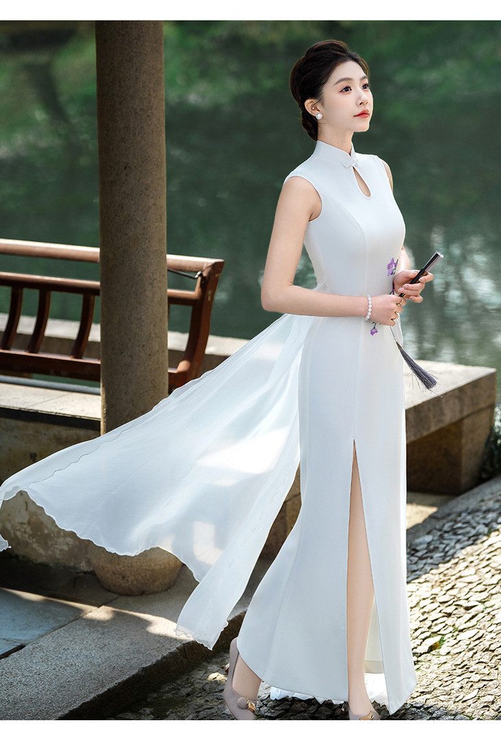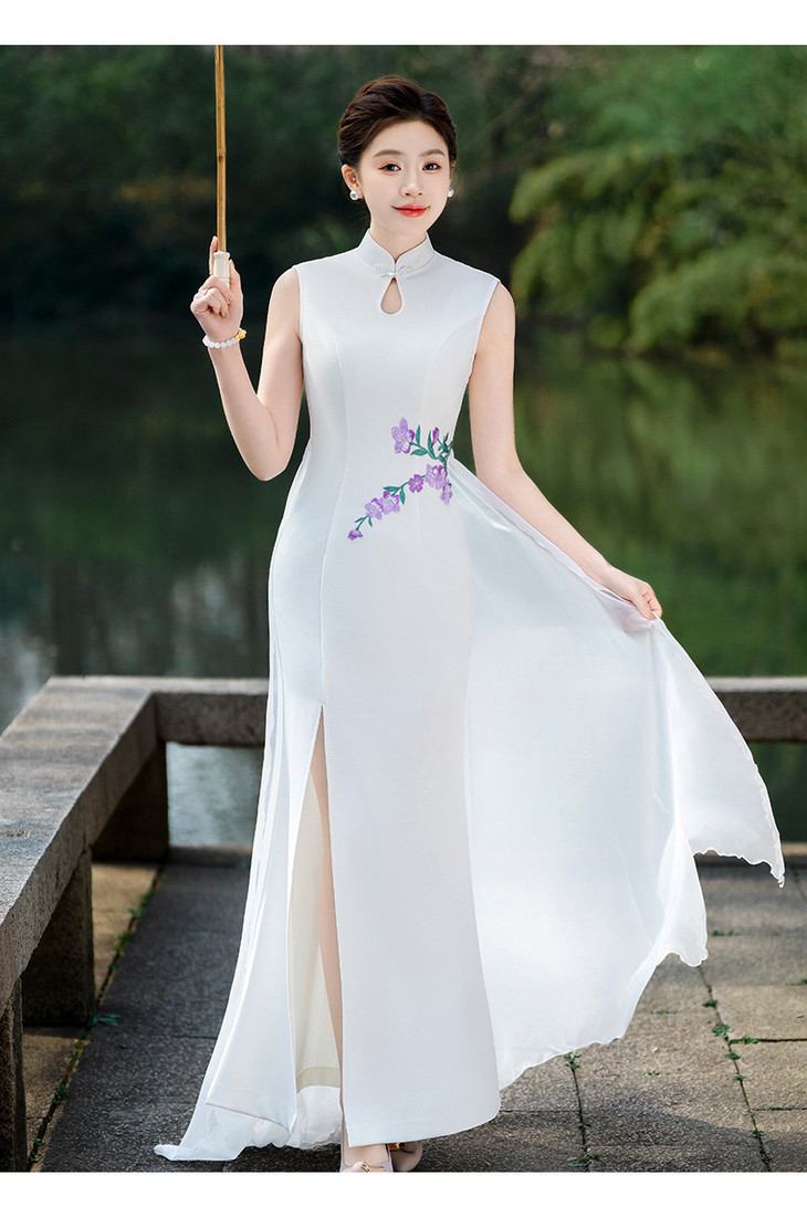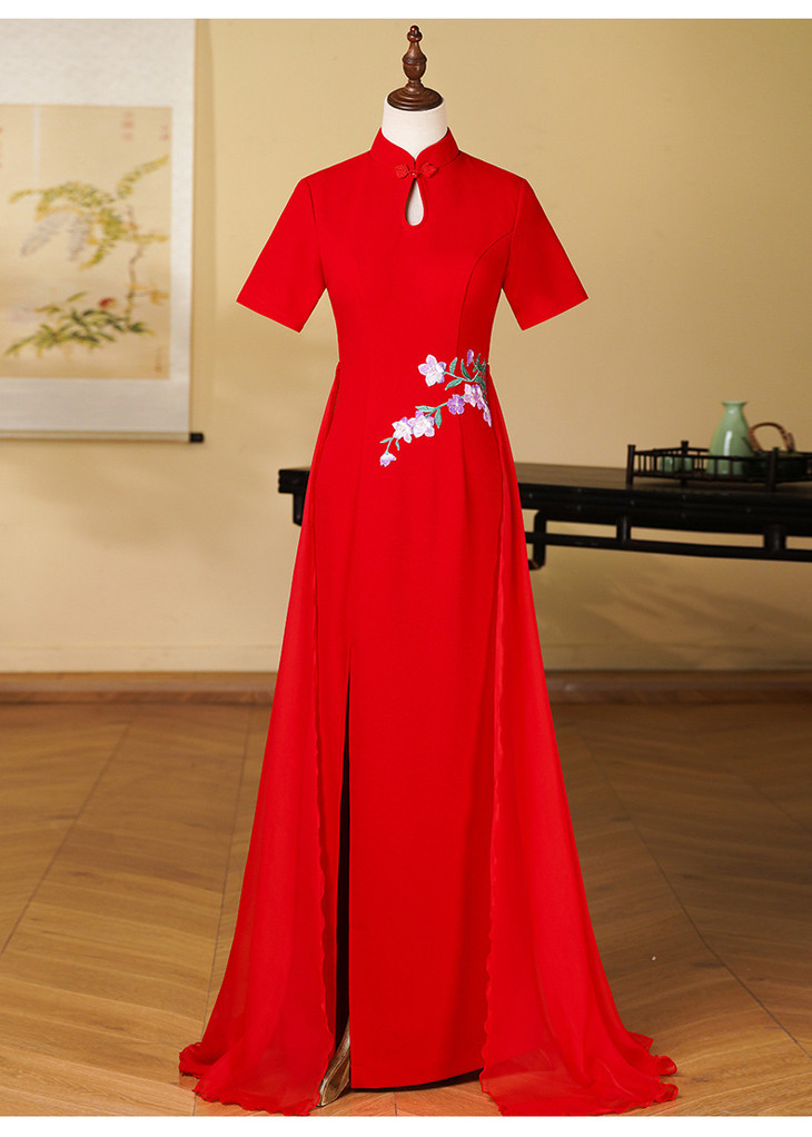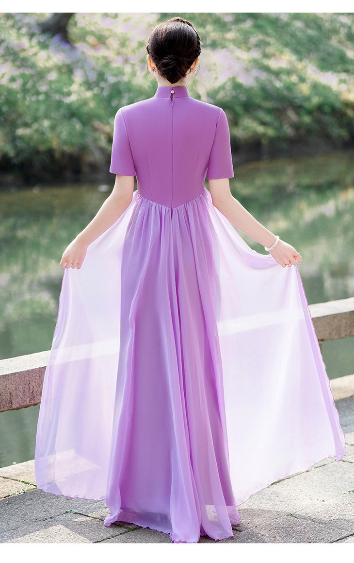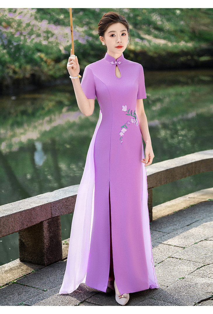 中国风高开叉燕尾纱修身改良走秀演出旗袍YD3/16-07