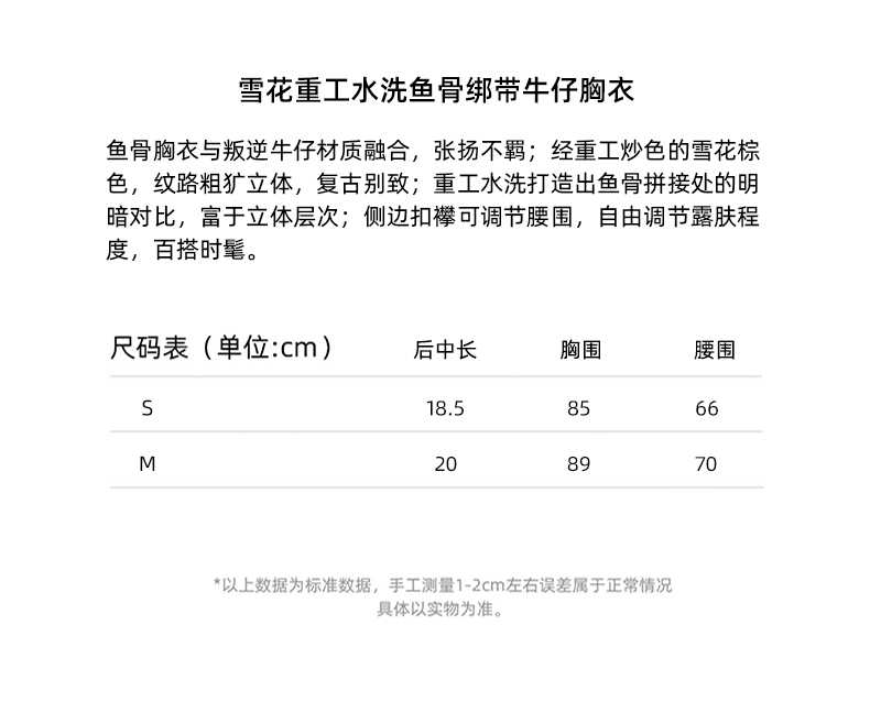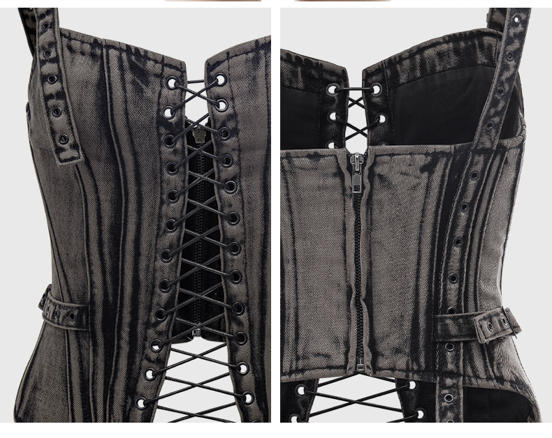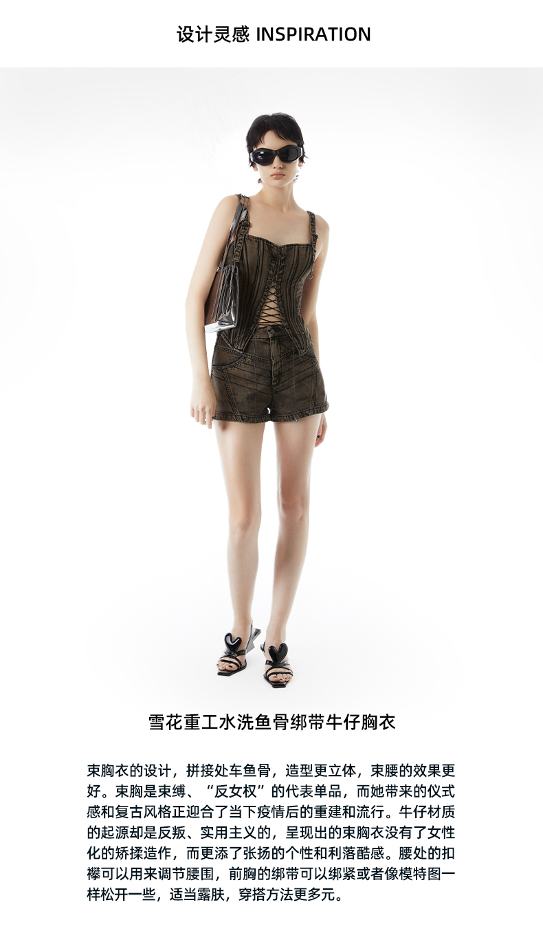 李孝利同款lost in echo雪花牛仔重工水洗鱼骨绑带胸衣吊带背心女