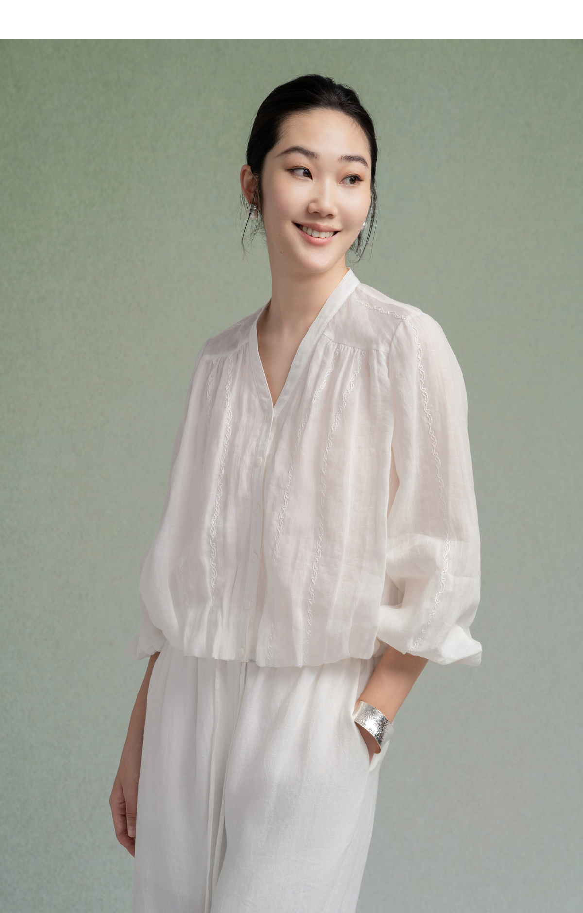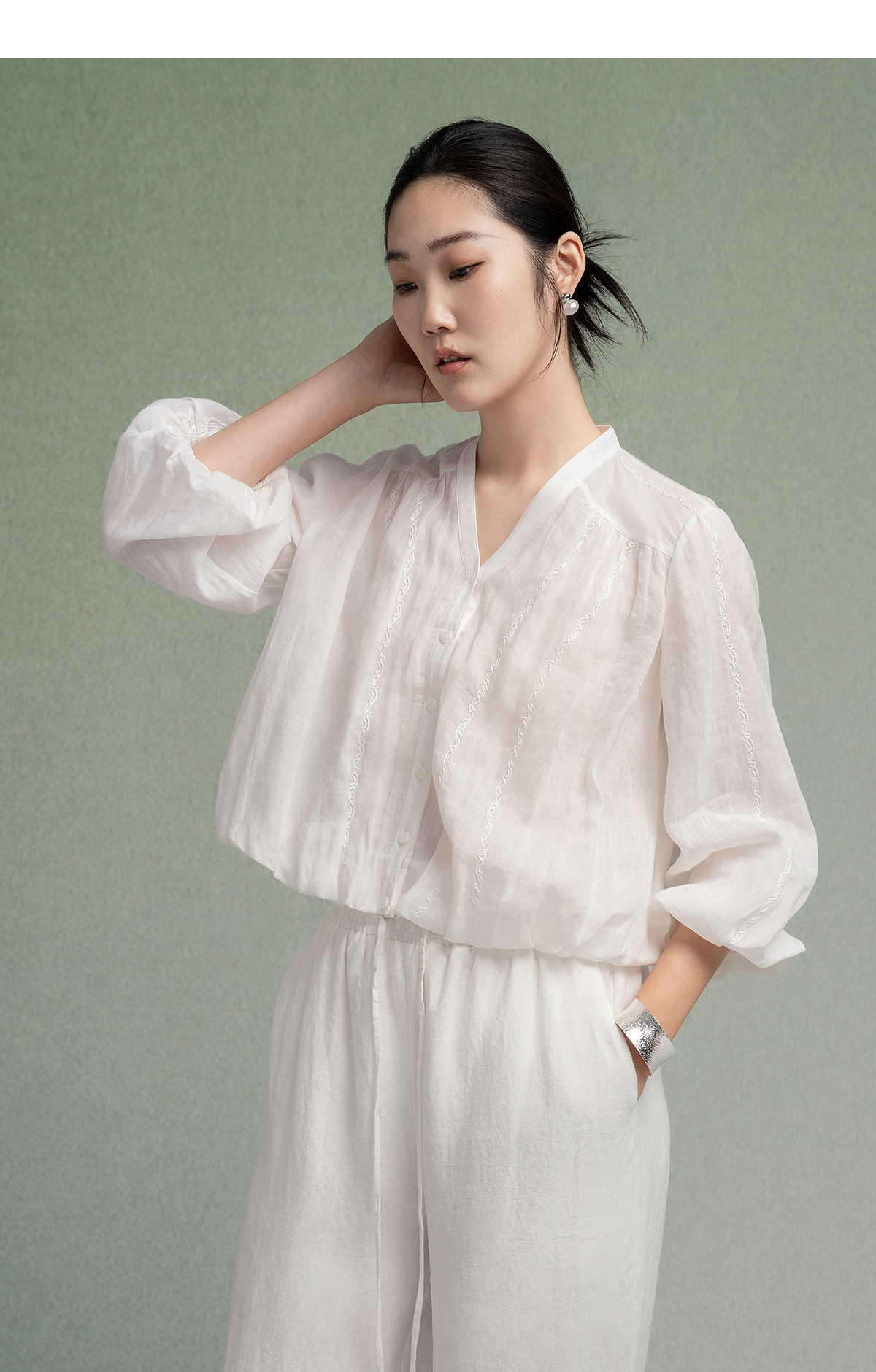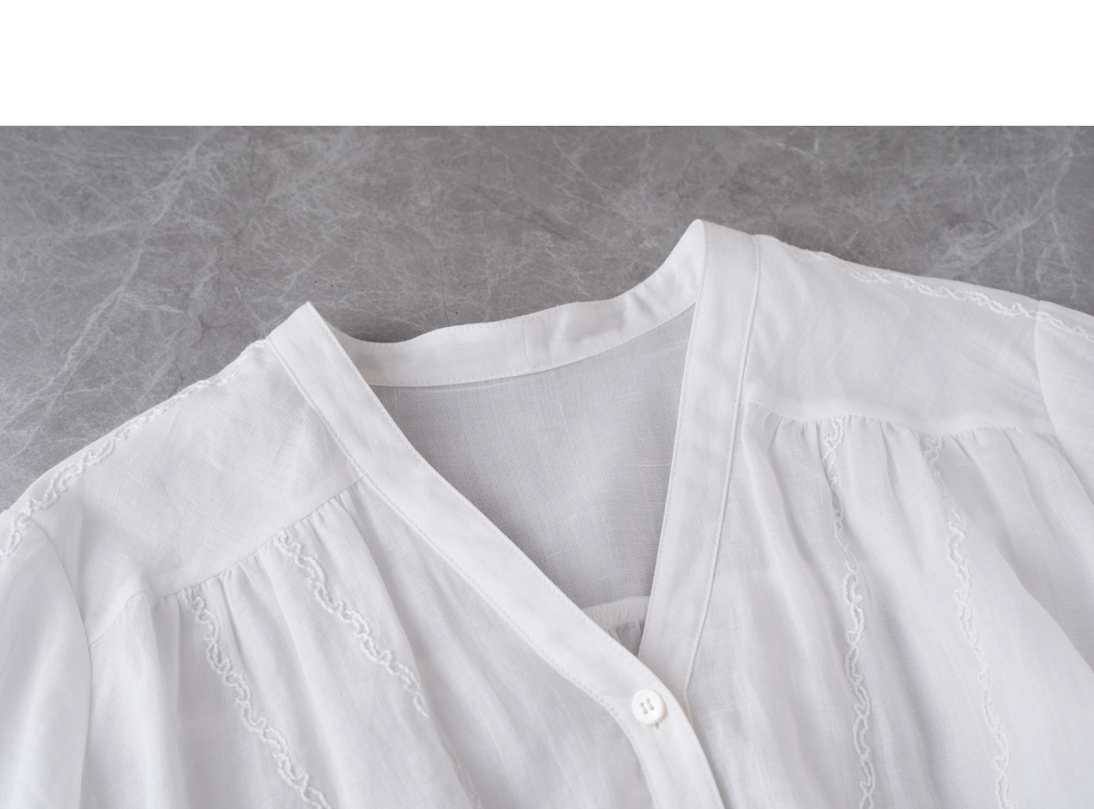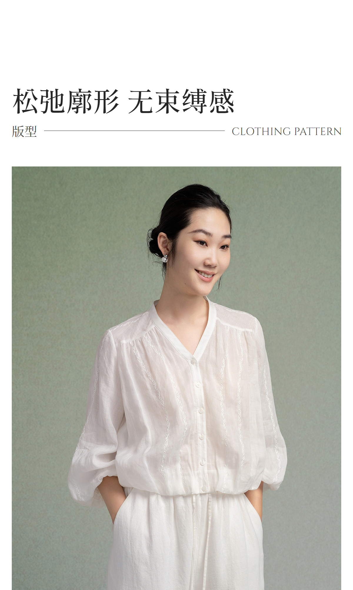 【林栖设计小店】(现货)苎麻衬衣绣花百搭气质宽松显瘦2025秋季新款V领上衣女F1953199