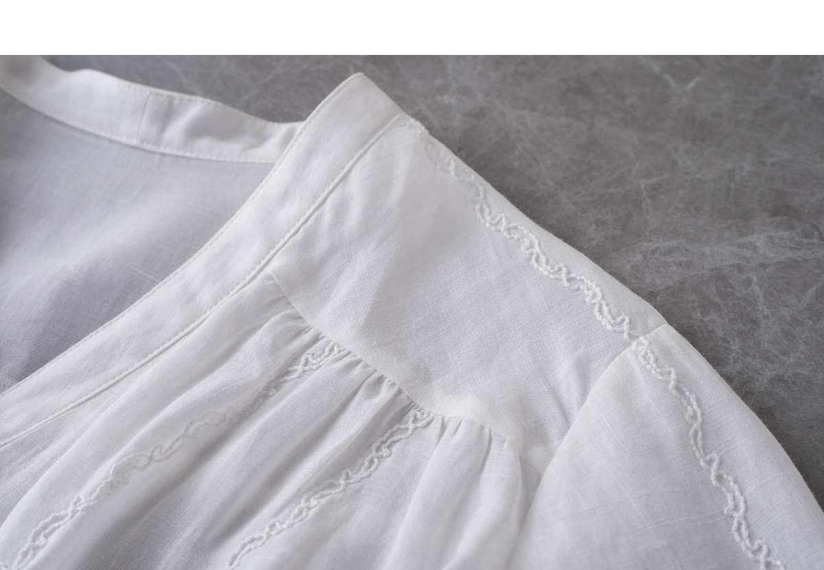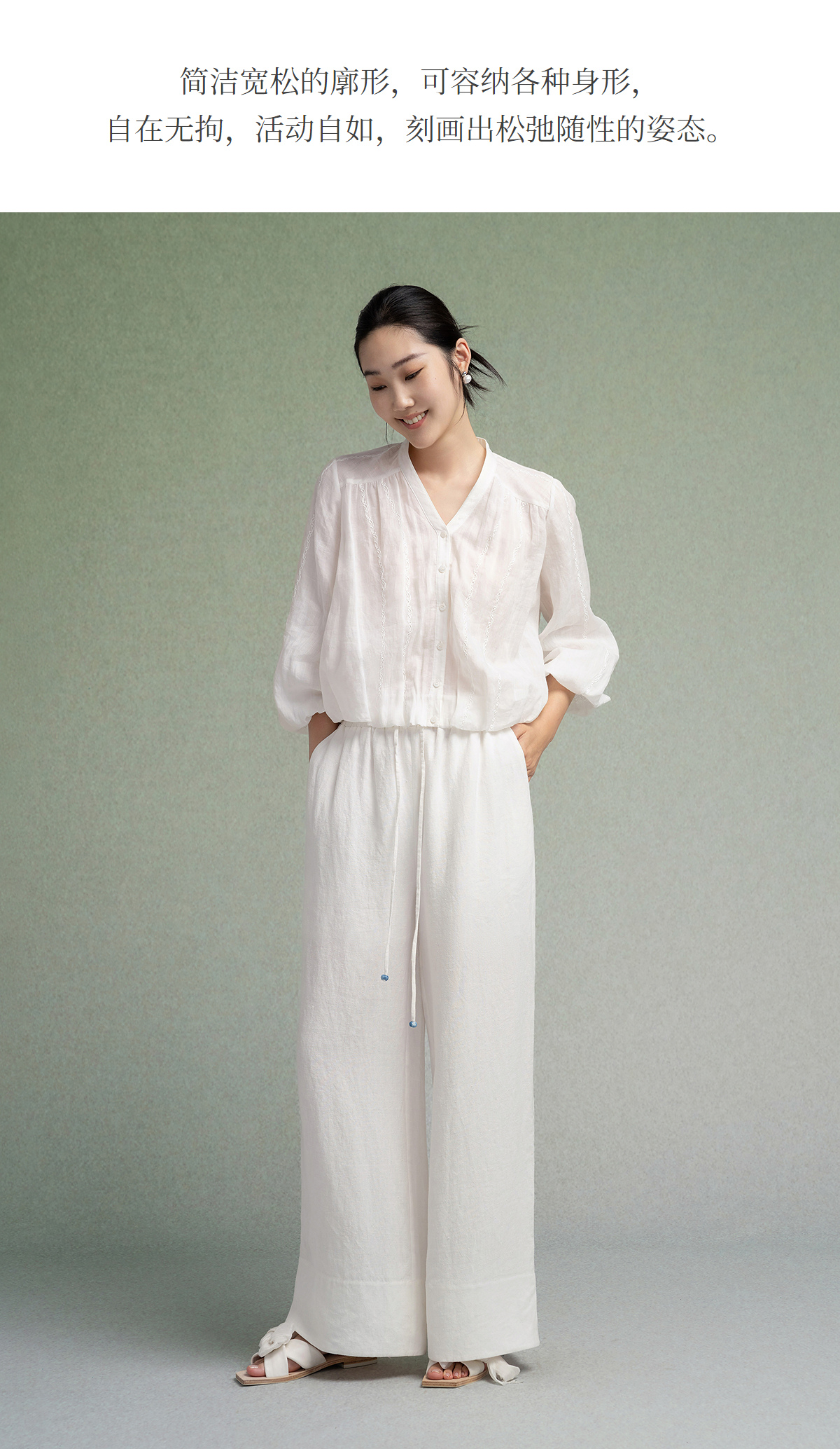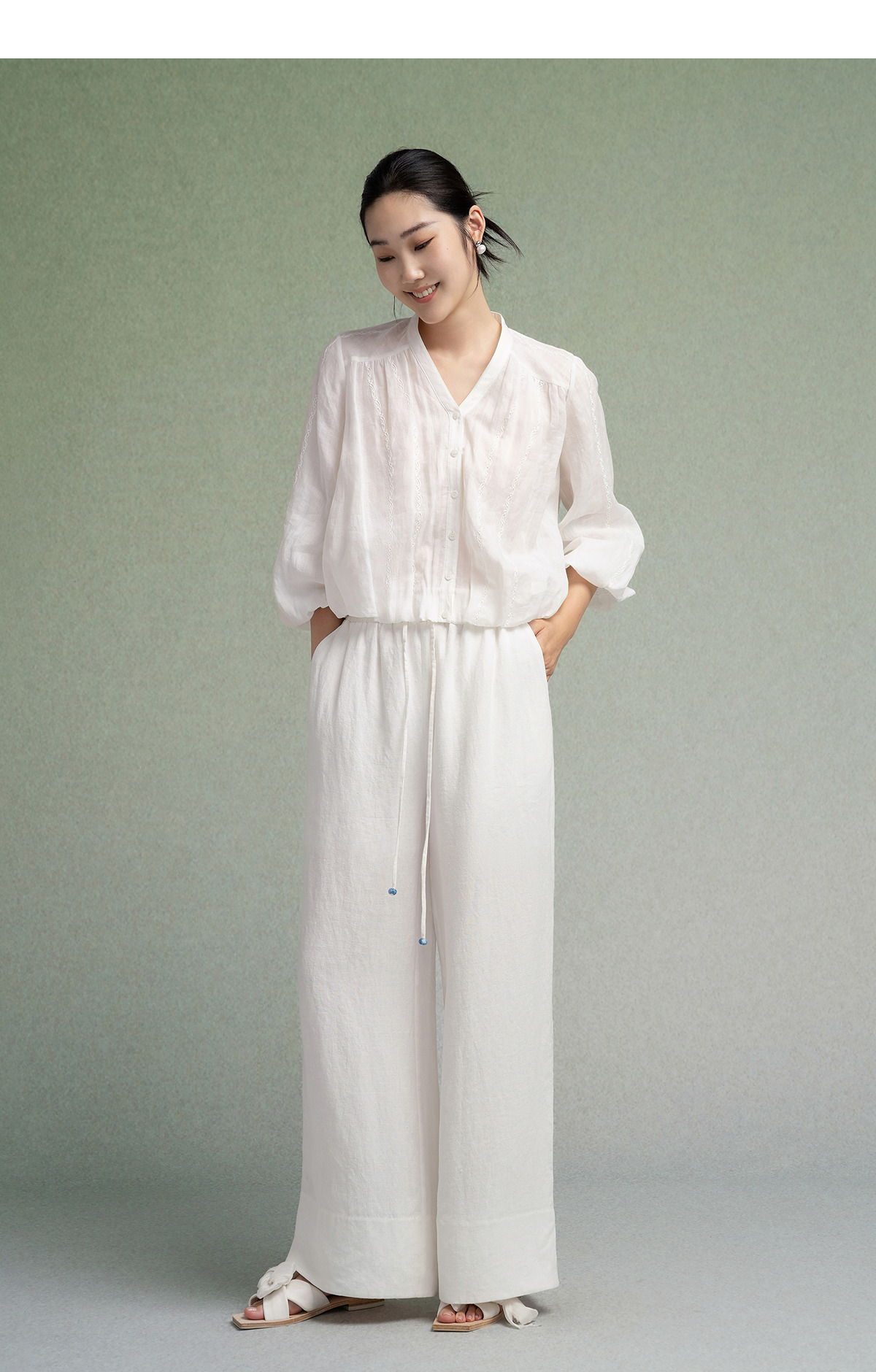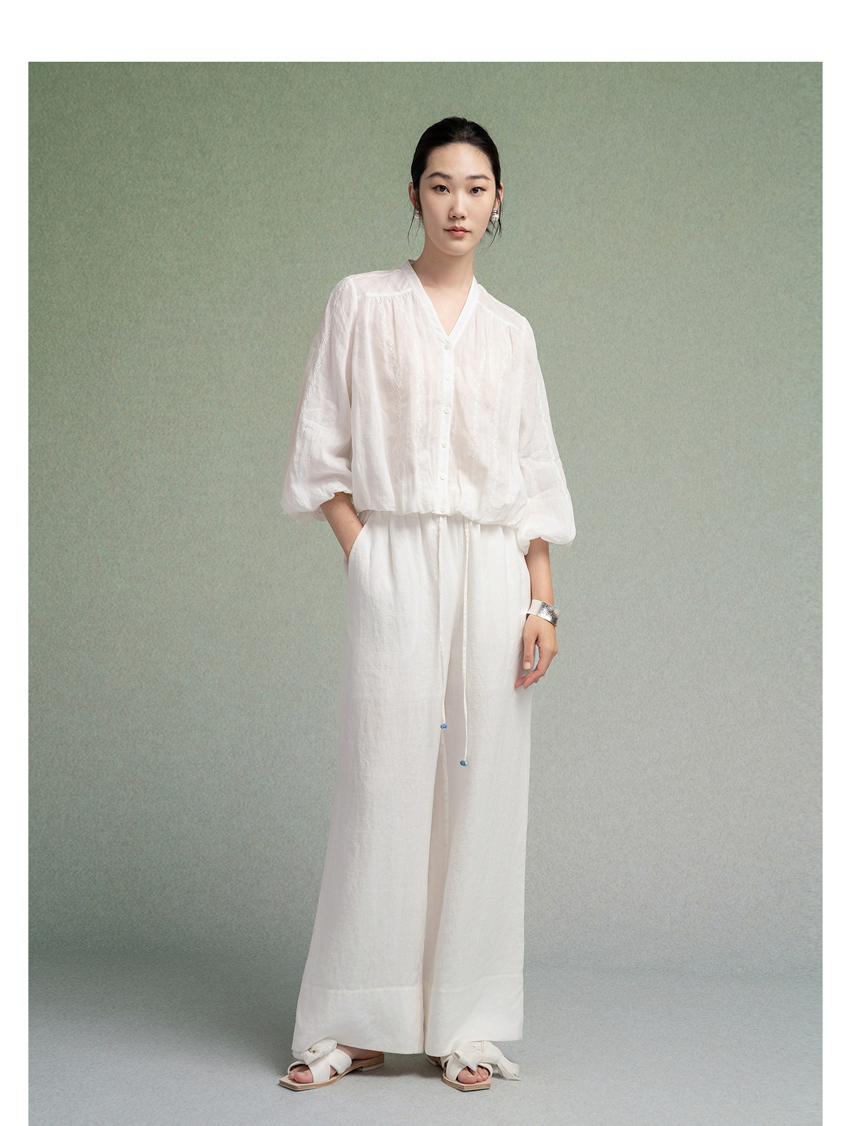 【林栖设计小店】(现货)苎麻衬衣绣花百搭气质宽松显瘦2025秋季新款V领上衣女F1953199