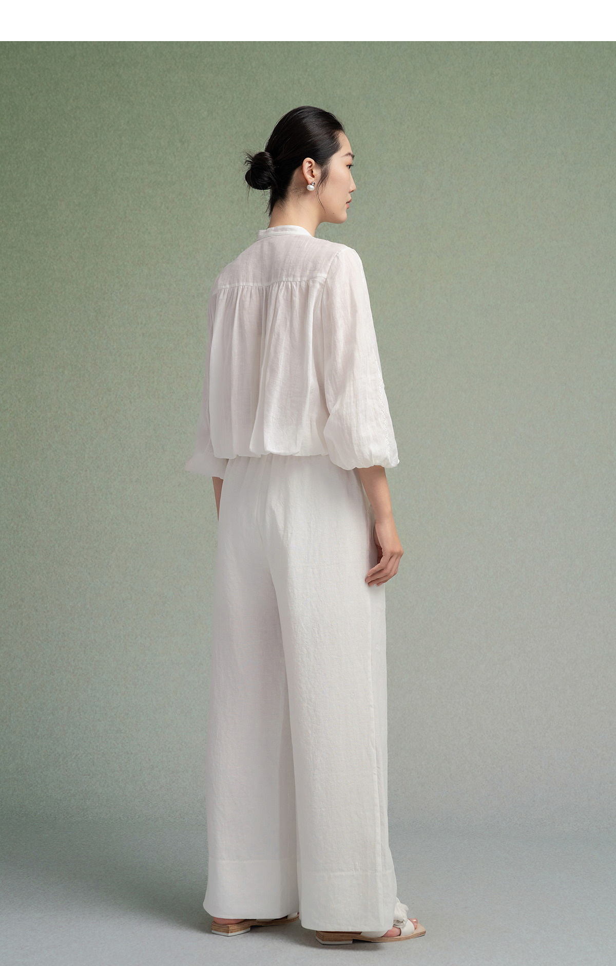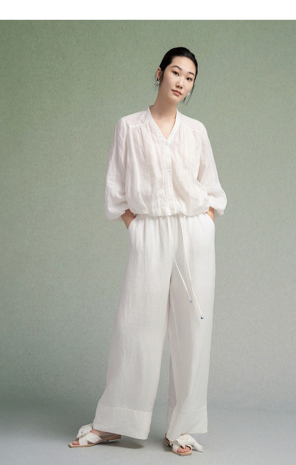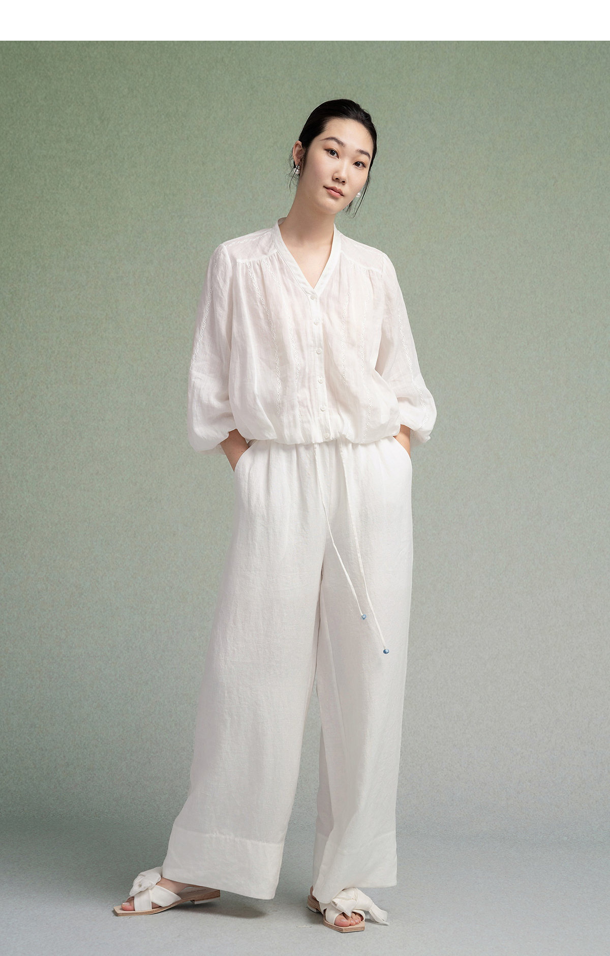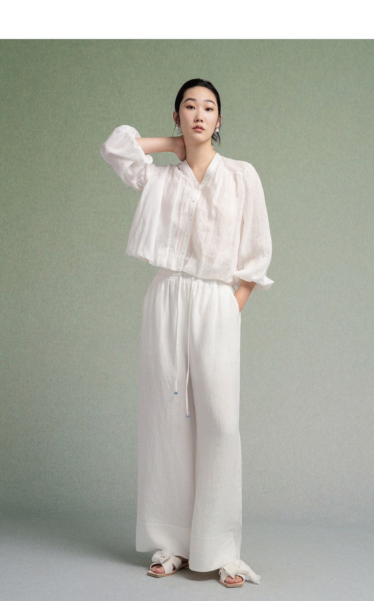 【林栖设计小店】(现货)苎麻衬衣绣花百搭气质宽松显瘦2025秋季新款V领上衣女F1953199