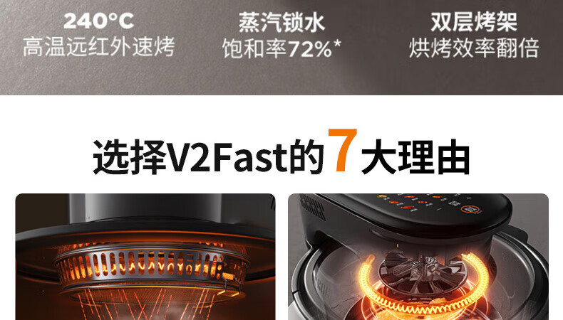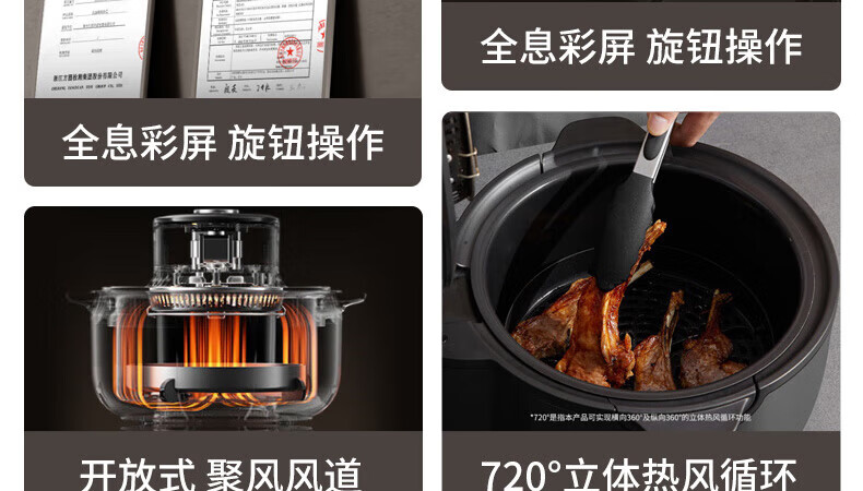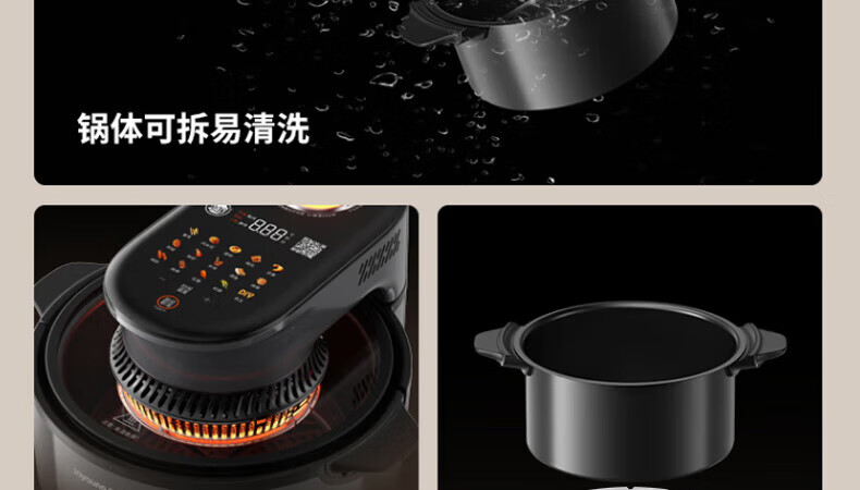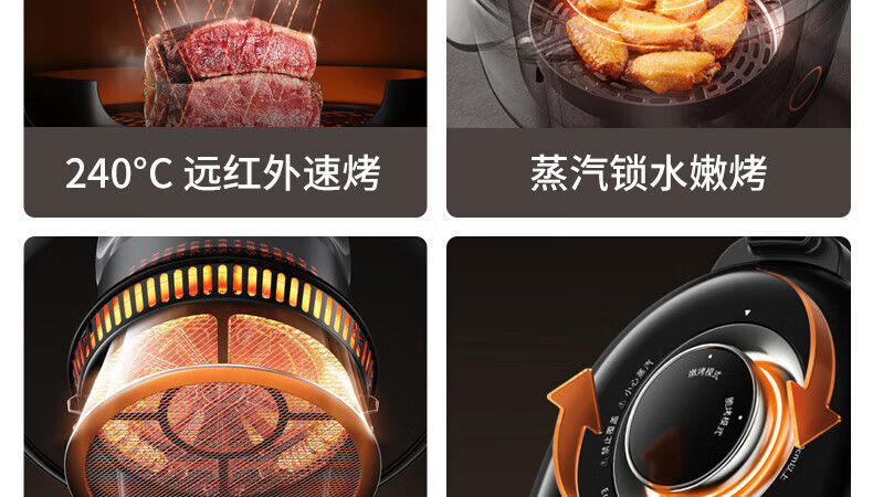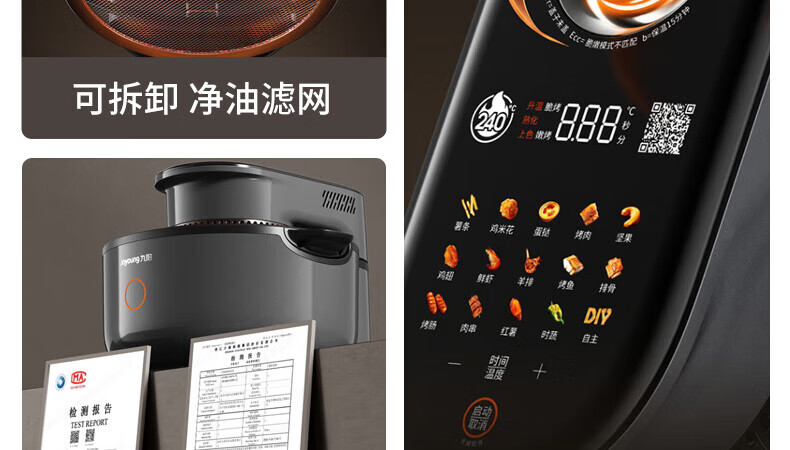 九阳(Joyoung)空气炸锅KL55-V799 不用翻面家用大容量可视窗口多功能菜单 曜石黑5.5L