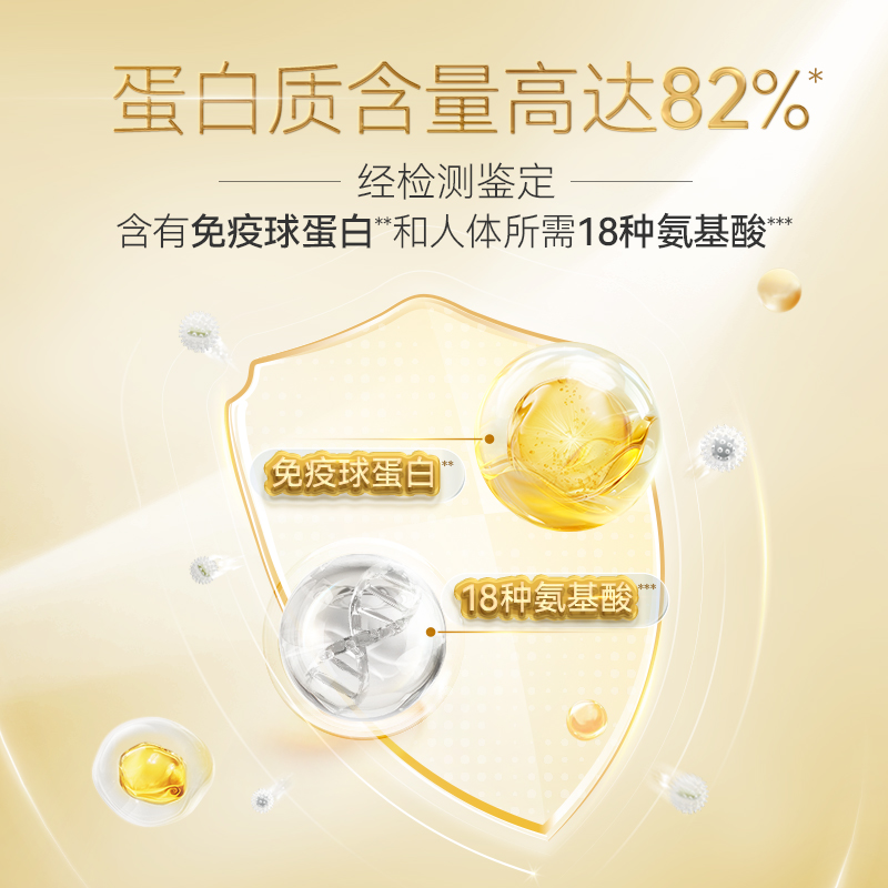 1.0添加蔗糖,0添加防腐剂,0添加人工色素。 2.双专利支撑,中国发明专利/中国实用新型专利。 3.蛋白质含量高达82%,好吸收易消化,消化率>94%. 4.优质动植物双蛋白,乳清蛋白+大豆蛋白,乳清蛋白容易吸收及消化促进肌肉合成,大豆蛋白富含丰富的营养与优质蛋白,可以更好地减少脂肪以及更好地保持健康的肌肉。