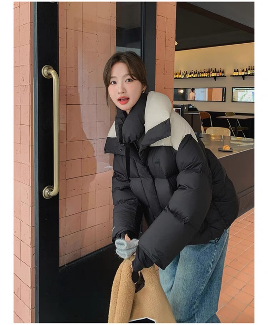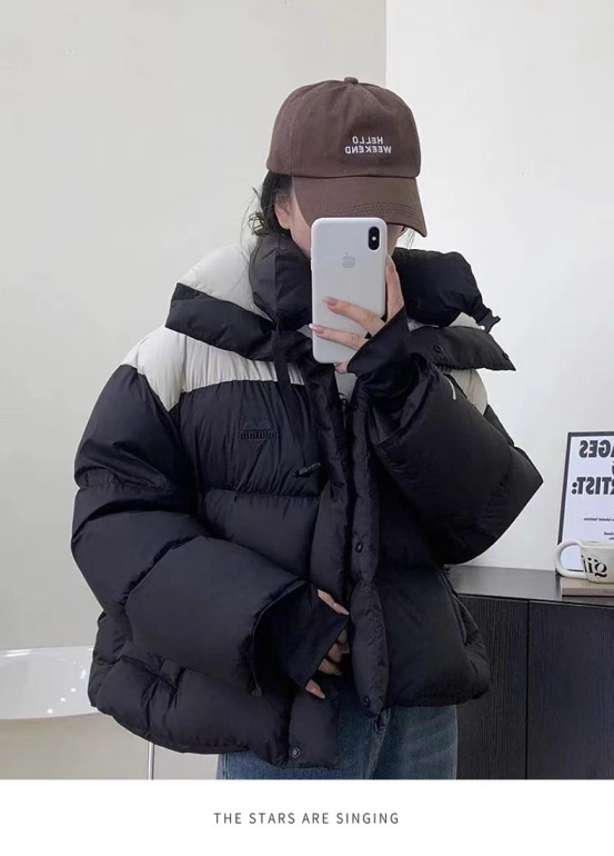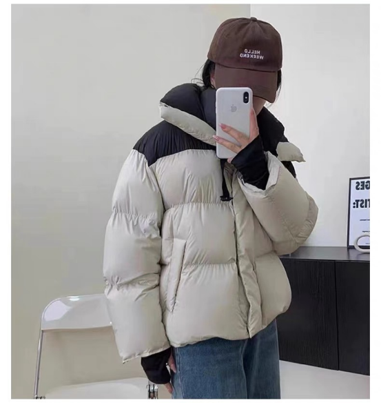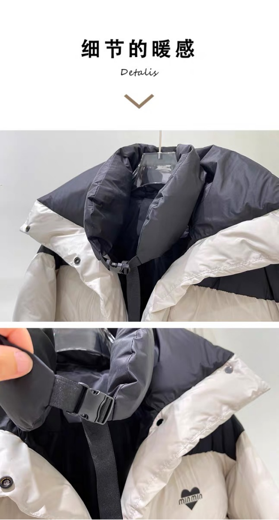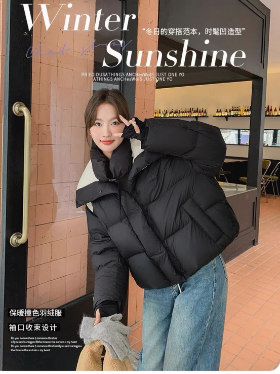 【爱心拼色短款加厚面包服】🌵设计感斜插式口袋造型满满,♦️方便揣手,✌️防风小立领保暖性好;防风内里袖口有弹性,贴合手腕🌸,挡住寒风;衣服整体很宽松,💞会衬的人娇小可爱