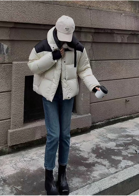 肉眼可见的厚实 这种百搭款多少年都不过时!趁着现在备起来!独道拼色的设计,将时尚调动的淋漓尽致 温度风度都能一件到位❗ 高效御寒不显臃肿,开启沉浸过冬模式 上身后洋气感满满,简单大方怎么搭都好看