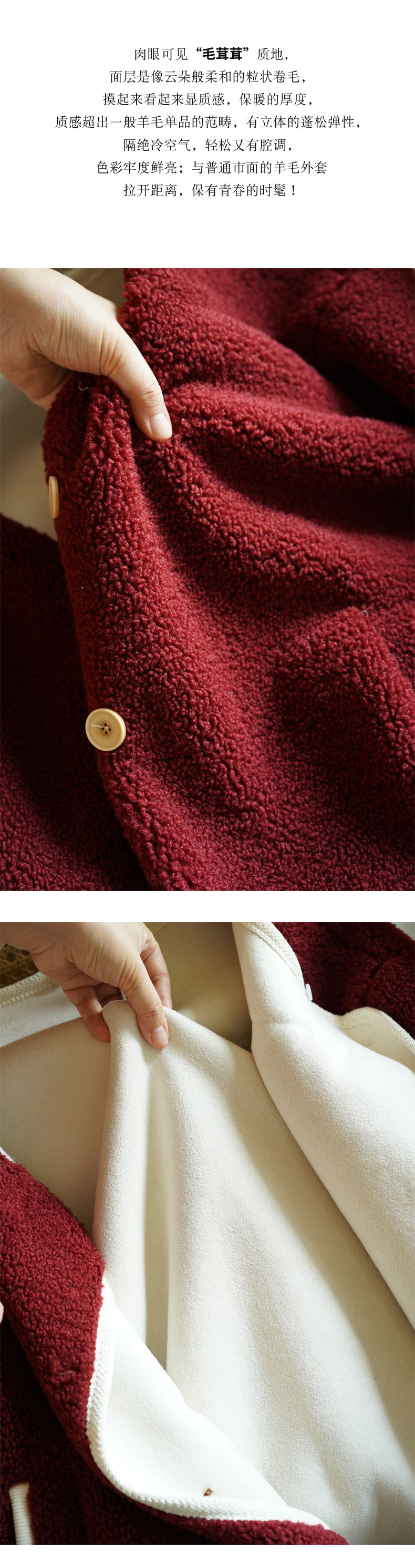 【皮毛一体大衣 车厘子红 3-7天发货】LONGNVFAIR可拆帽车厘子红羊羔绒皮毛一体大衣