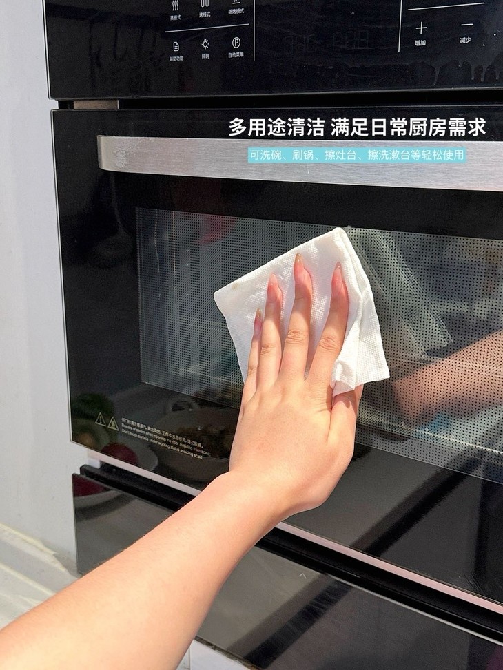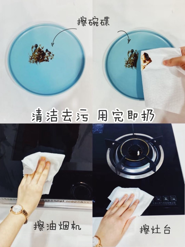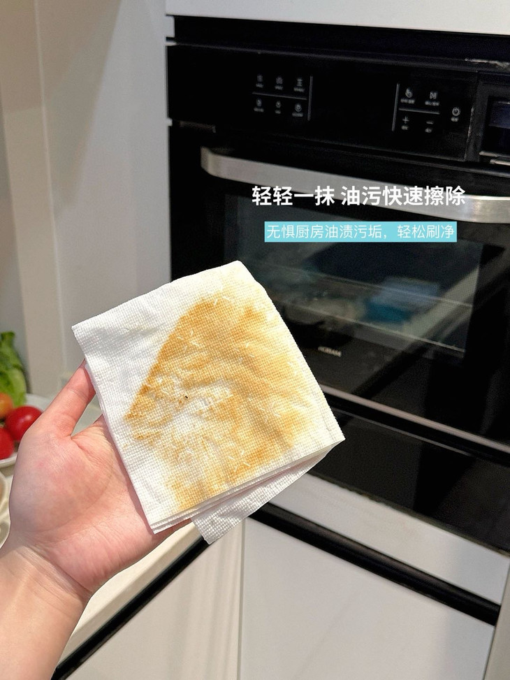 带走油污,扔进垃圾桶,就能杜绝细菌残留 面对油烟机上的陈年油污 轻轻一擦油污消失,看着跟新的一样❗ 灶台上溅落的油点更不在话下 做完饭随手一擦,干净明亮 看着心情都舒畅很多。