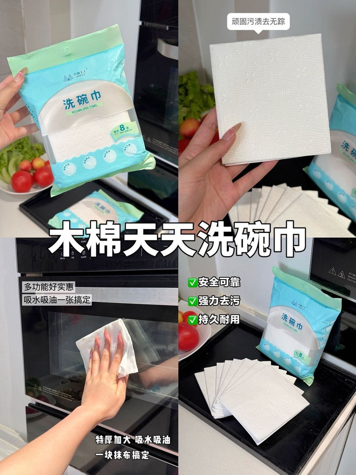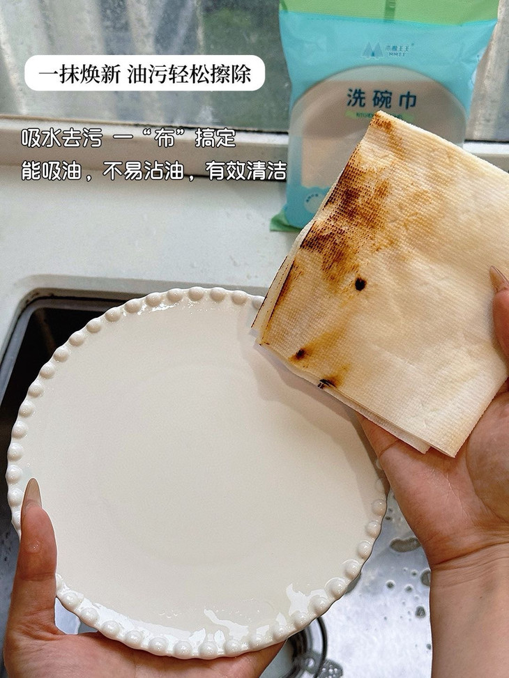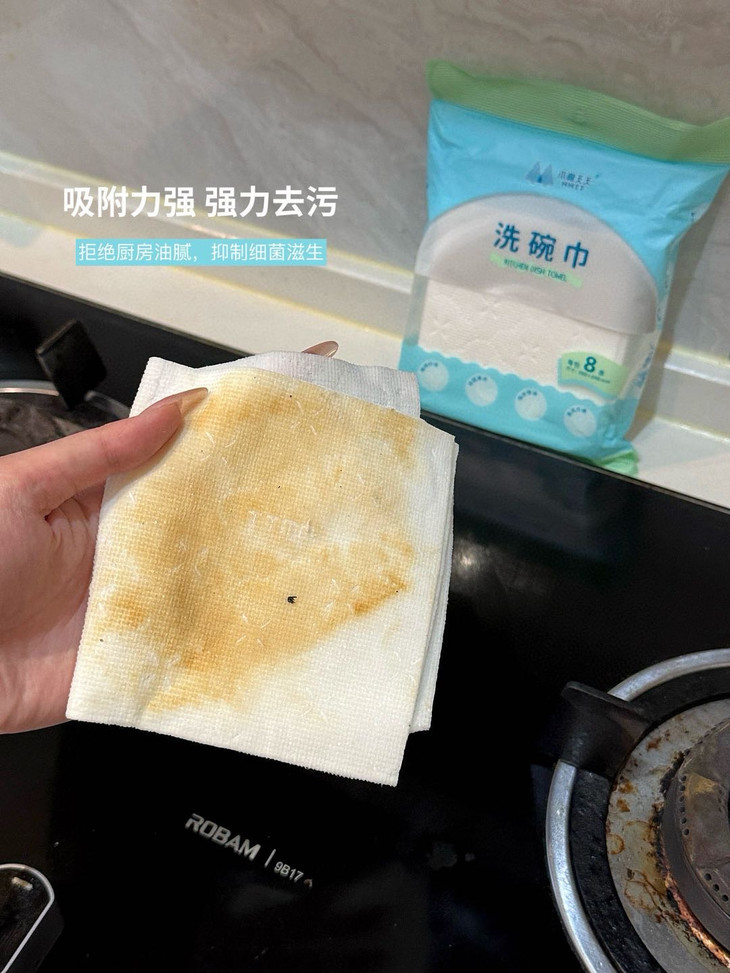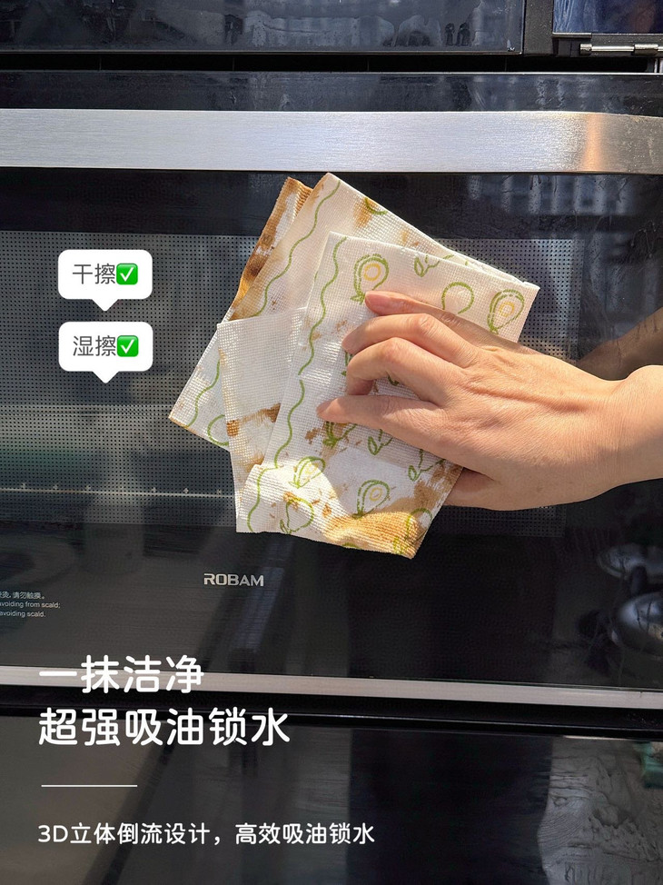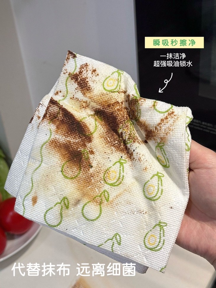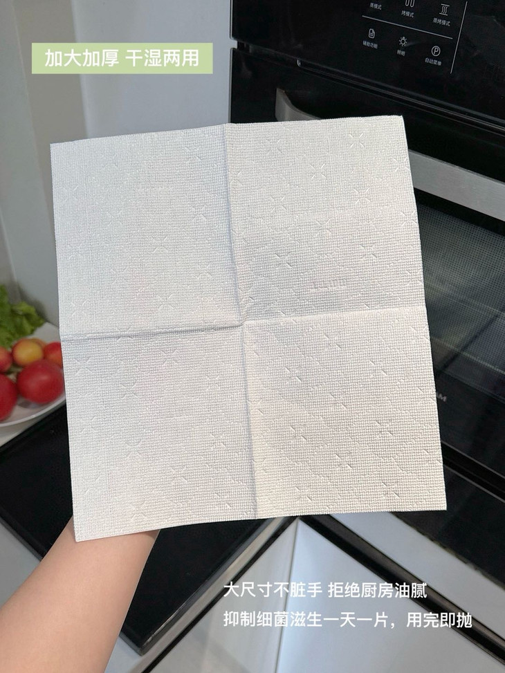 可以吸收常见的水和油污✅吸水吸油力更强,更耐撕扯 它可以擦拭厨房里的排油烟机,灶台微波炉、橱柜等,也可以洗碗、刷锅,所有能够想到的,作为一次性抹布都能做到