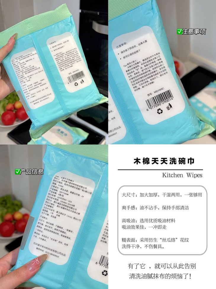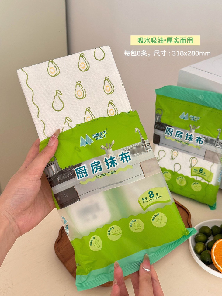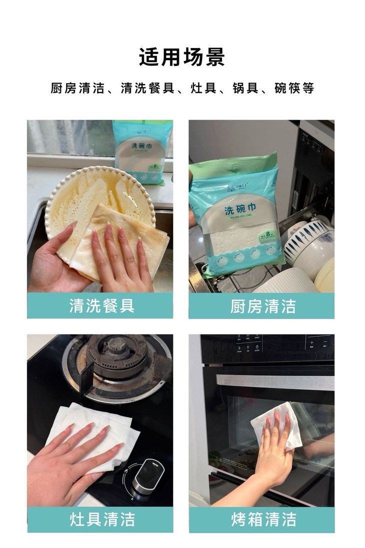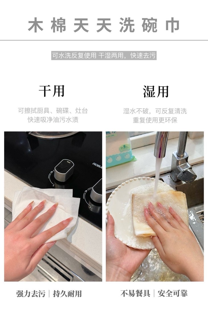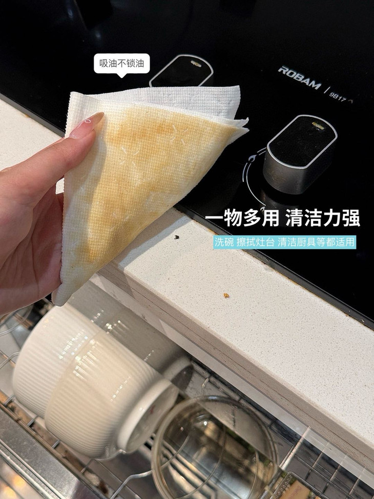 可以吸收常见的水和油污✅吸水吸油力更强,更耐撕扯 它可以擦拭厨房里的排油烟机,灶台微波炉、橱柜等,也可以洗碗、刷锅,所有能够想到的,作为一次性抹布都能做到