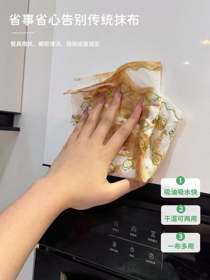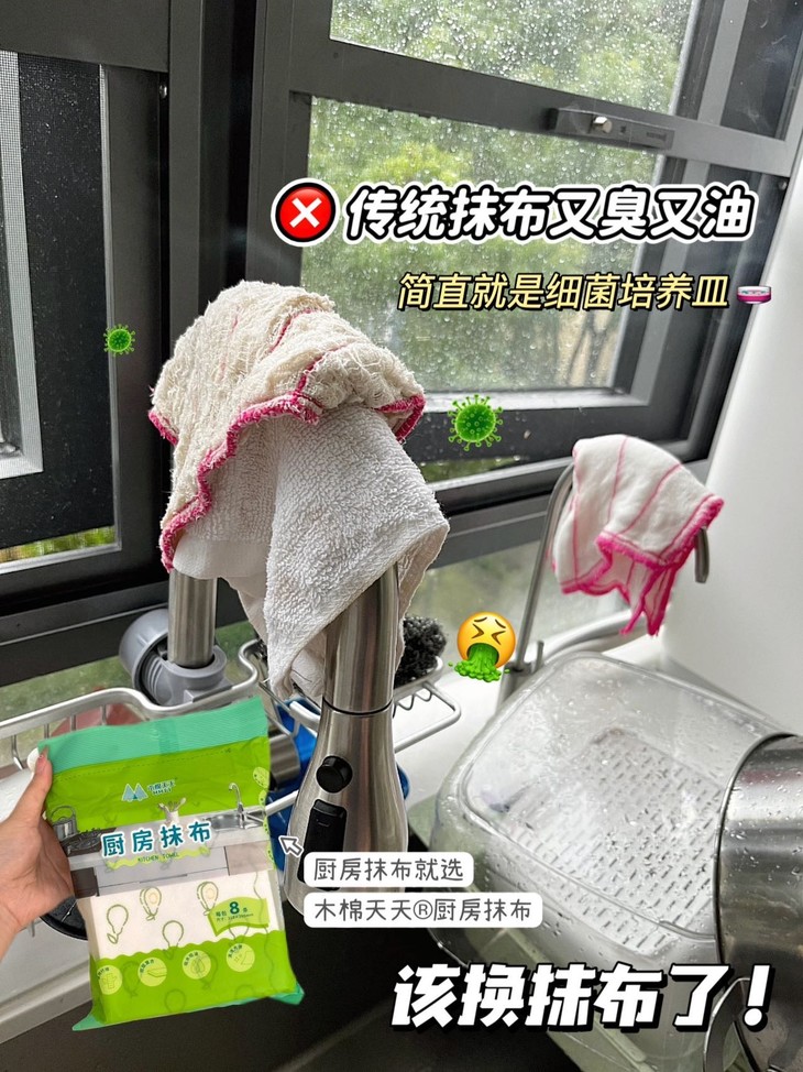 满一周就直接扔掉,不用担心卫生问题,也不用费力清洗抹布,简直是懒人的福音🤩 而且这种抹布不仅厨房能用,客厅擦玻璃、卫生间清洁台面等等,各个场景都能派上用场! 自从用了它,家里的清洁工作都变得轻松愉快多了~
