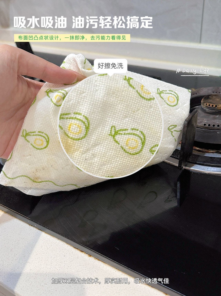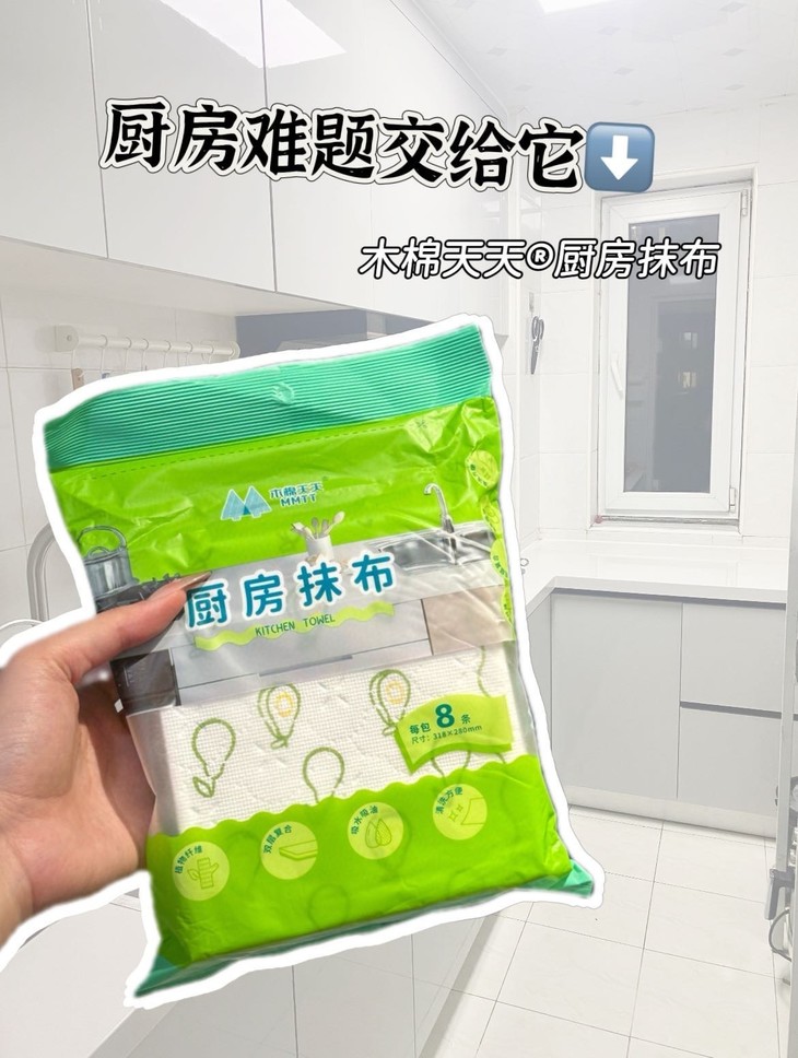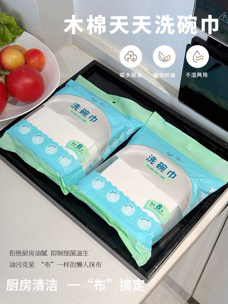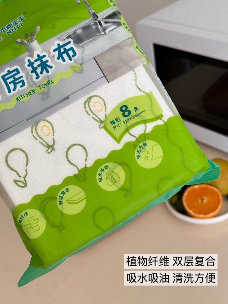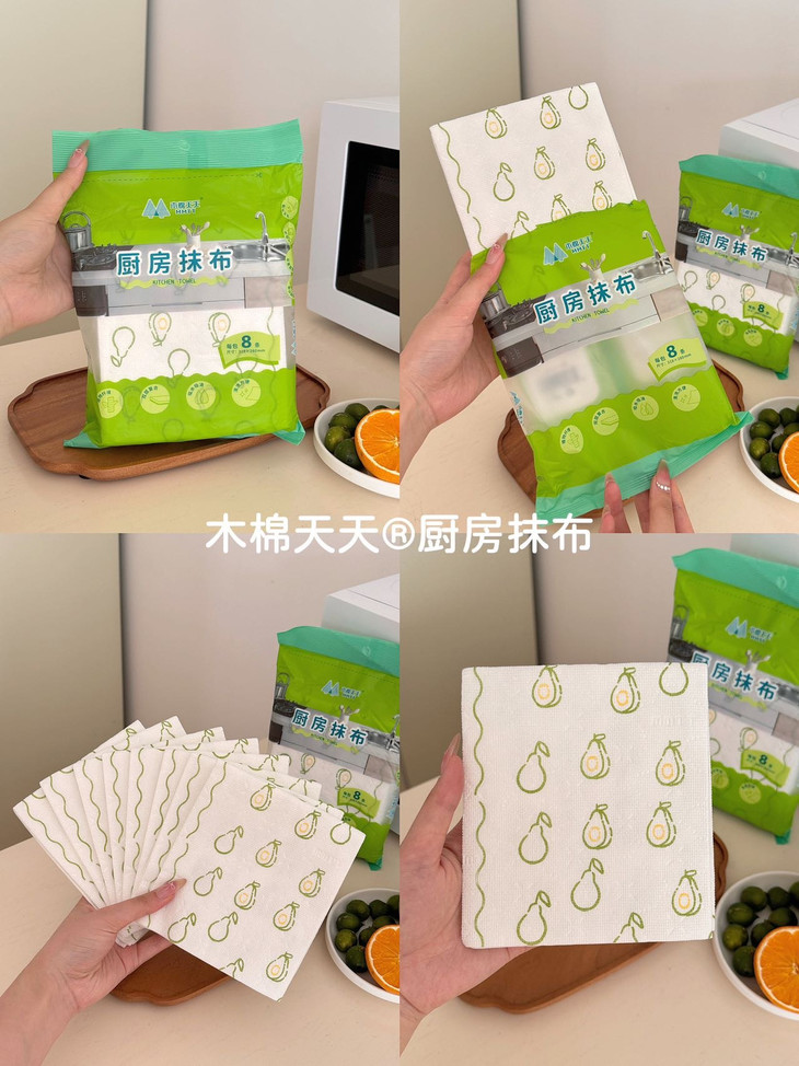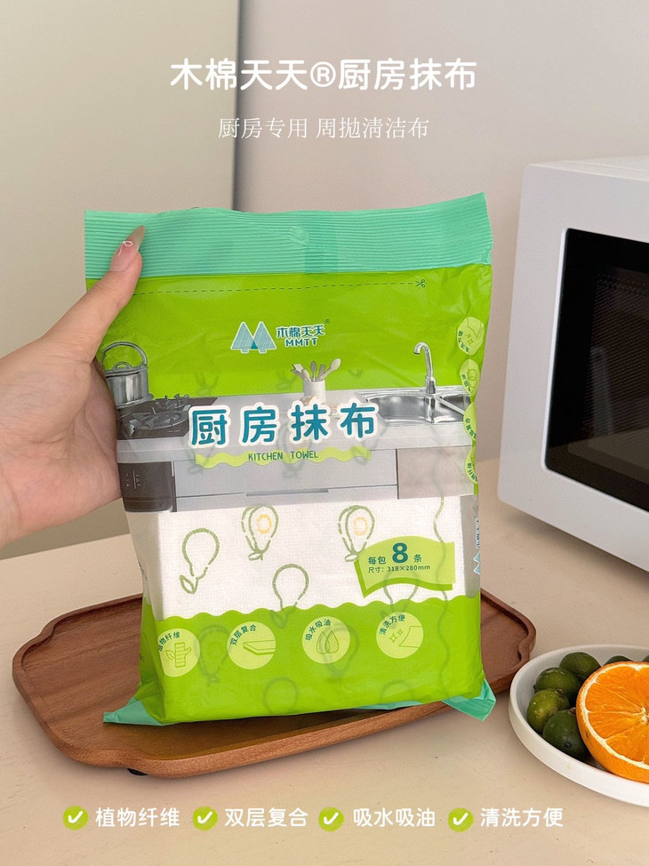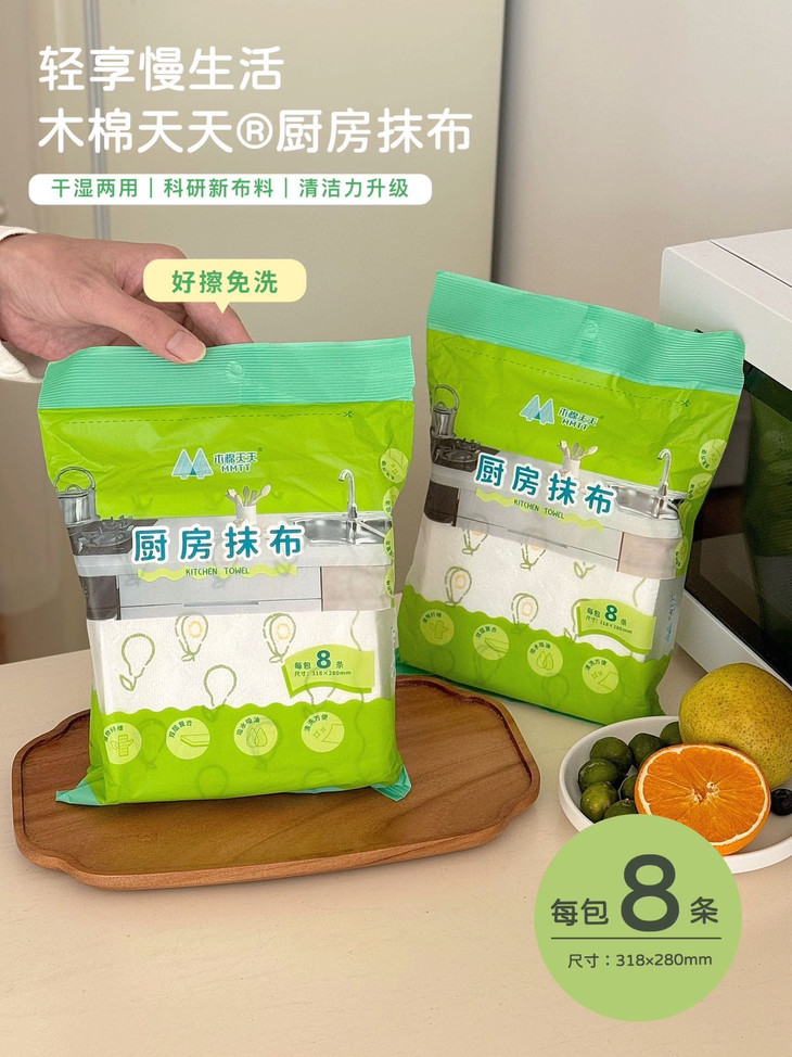 轻轻一擦,油污消失,看着跟新的一样❗ 木棉天天®厨房抹布,巨好用‼每包8条 灶台上溅落的油点更不在话下做完饭随手一擦, 干净明亮看着心情都舒畅很多。 每天抽一张,做饭后擦一擦,油污统统擦干净 用它干净卫生,还省时间 厨房里的餐具、厨具都能用。