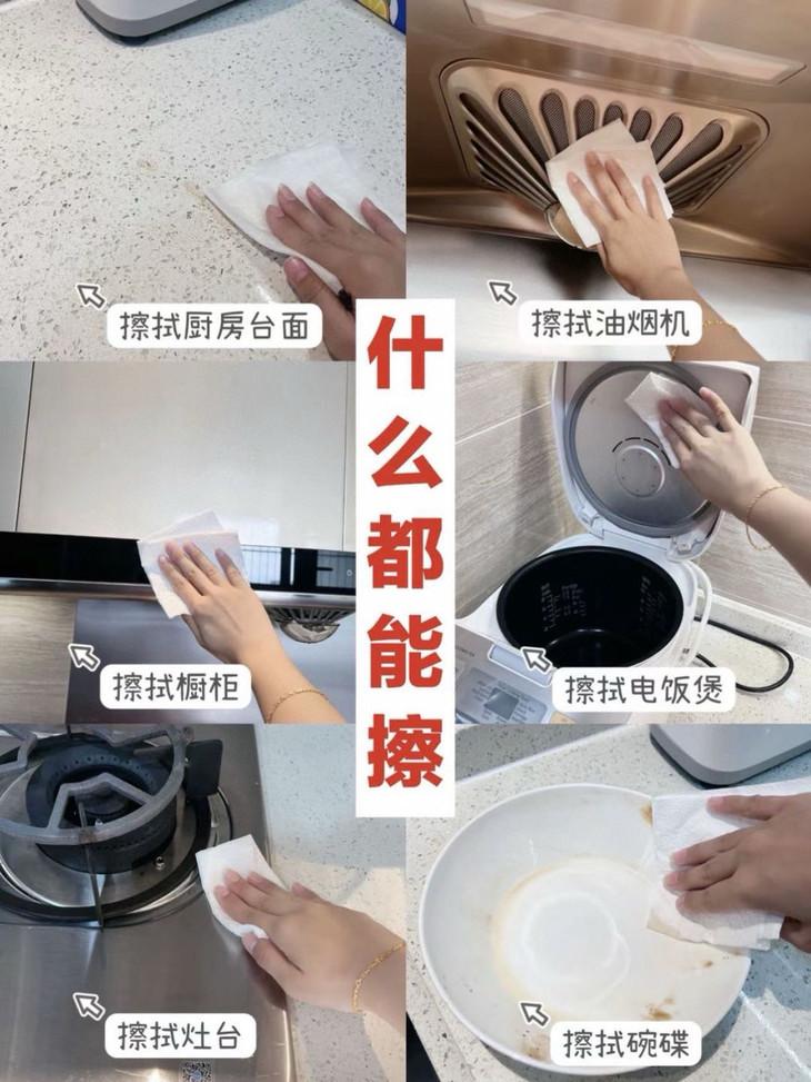 每天抽一张,做饭后擦一擦,🚯油污统统擦干净 用它干净卫生,还省时间❇厨房里的餐具、厨具都能用。 冰箱缝、柜面、电饭锅、空气炸机表面干净发亮🔆